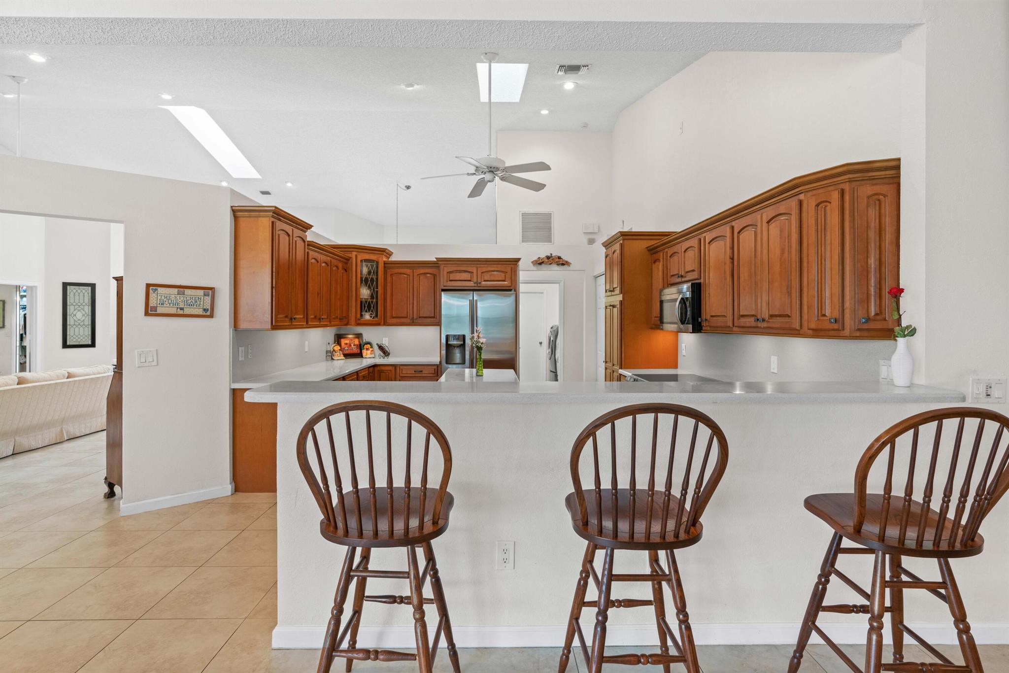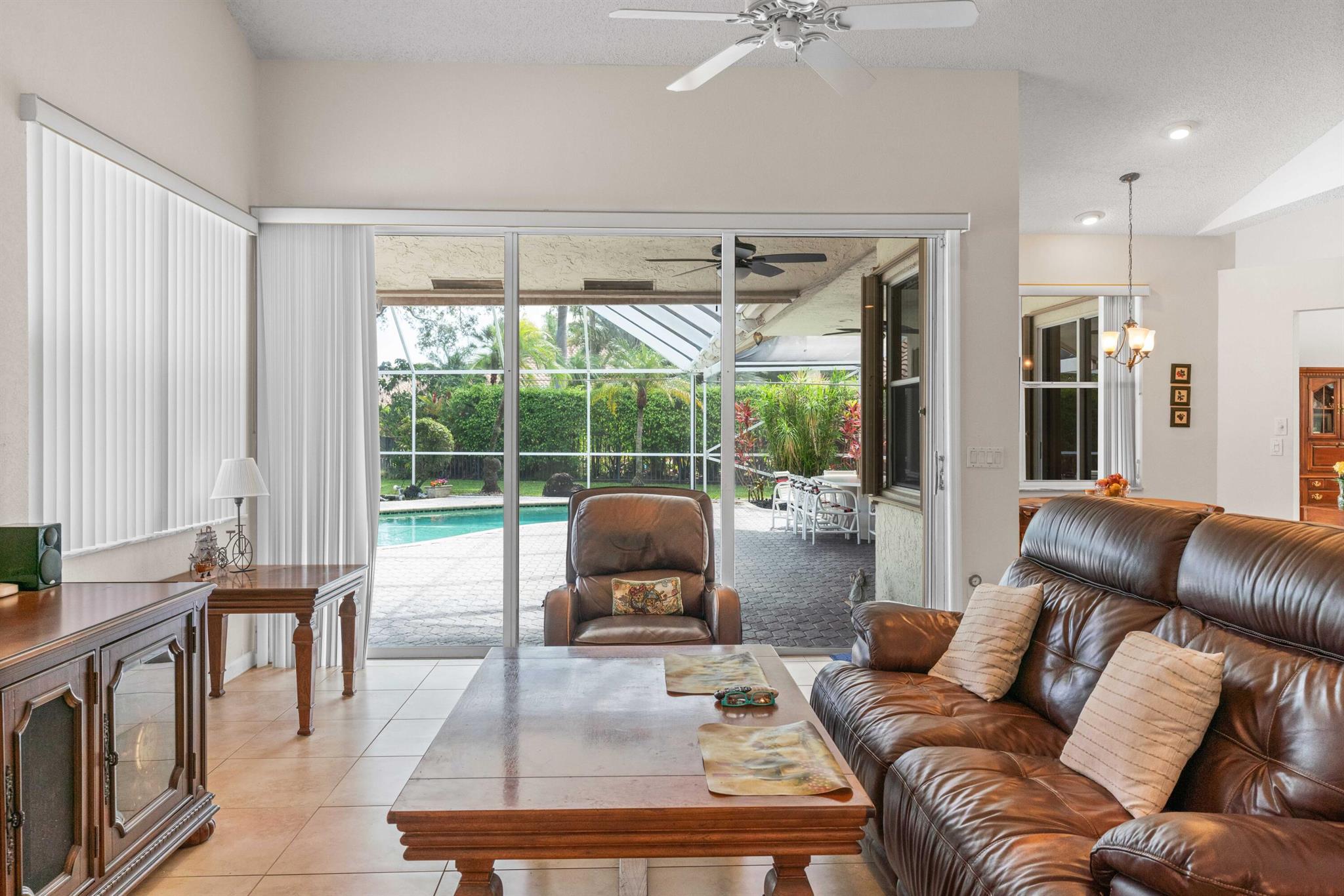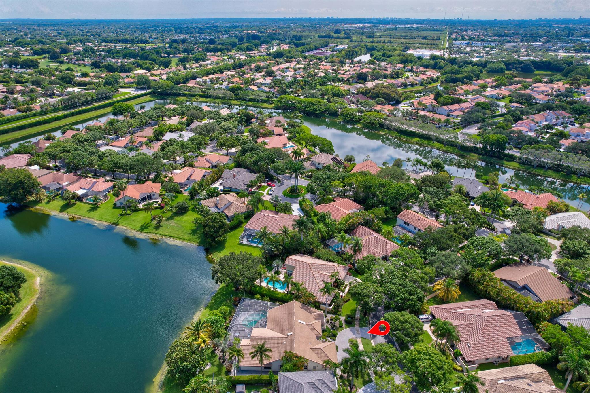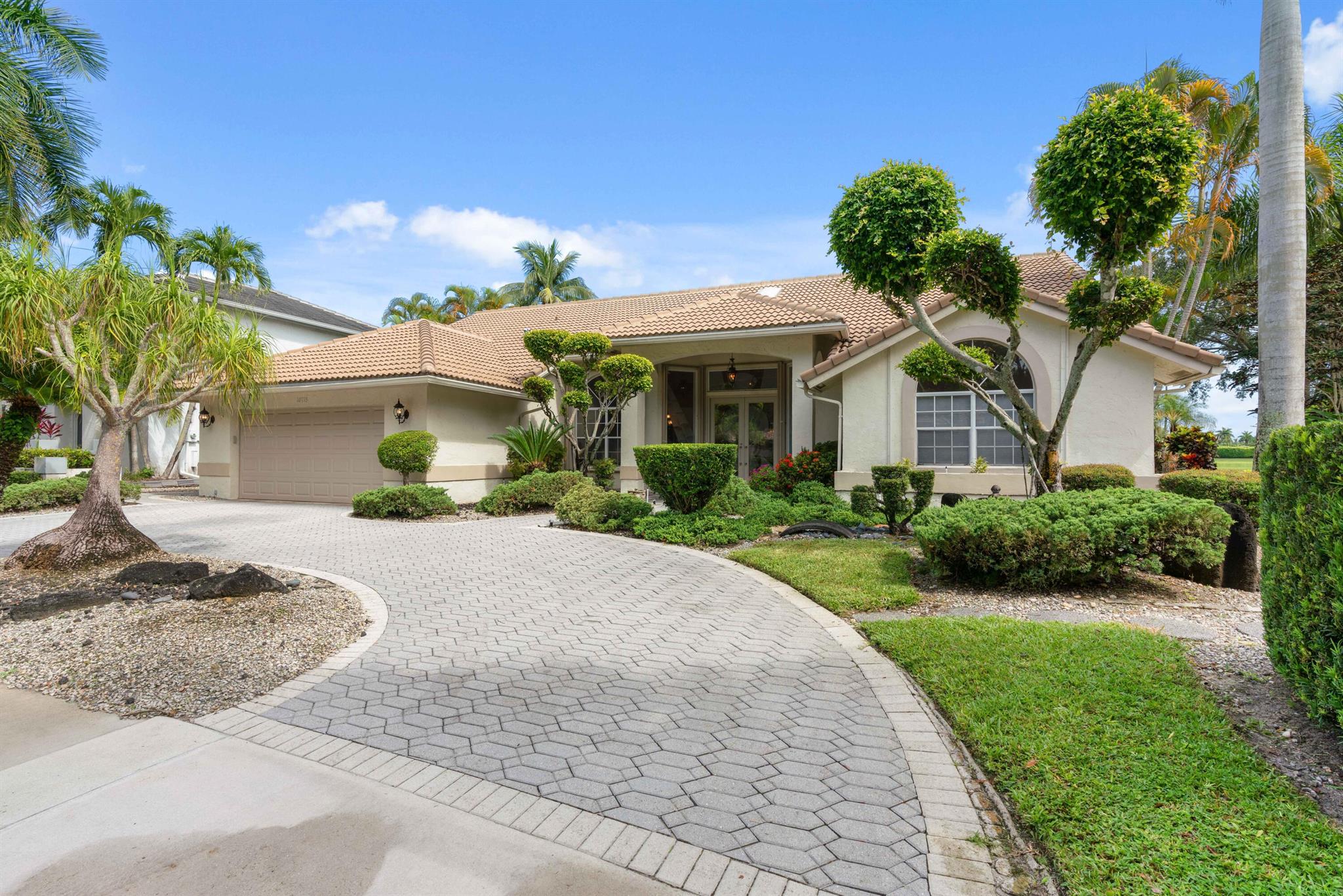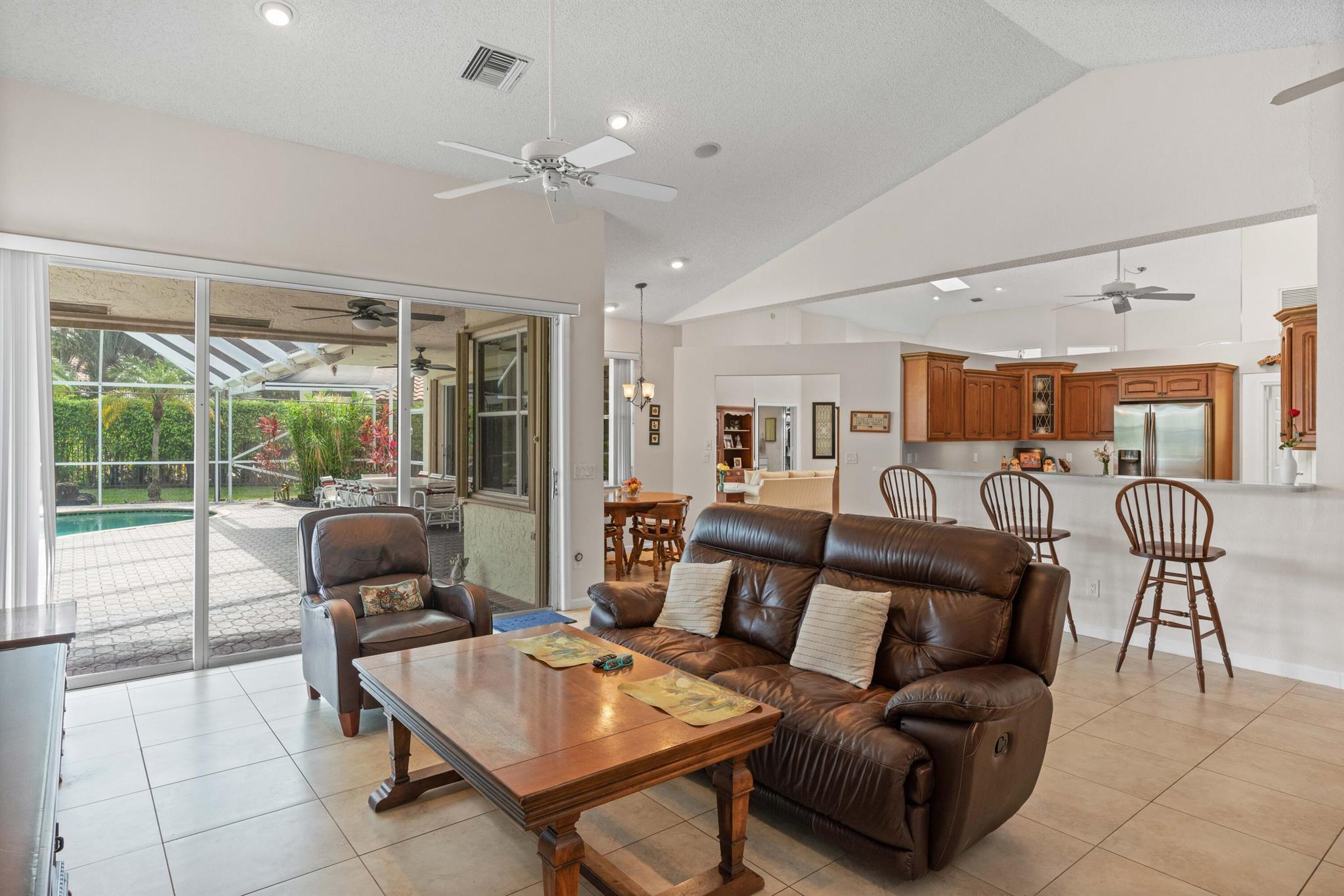 Stunning Waterfront Sunsets, Perfect for entertaining. The Isle at Mission Bay is a gated, family-friendly community with Oak tree-lined streets offering impressive country club resort-style amenities & all A-rated schools. This majestic lakefront pool home has 4 bedrooms, 3 bathrooms, a very large screened patio, swimming pool, Spa Hot Tub, plantings & a custom fish pond, pavered circular driveway, concrete tile roof (2018), Accordion shutters, AC (2021), new water heater (2023), vaulted ceilings, built-in Bar, updated kitchen with center island and pull-outs, updated tile floors, walk-in & custom built-in closets, split floor plan, oversized garage, fenced yard, home water filtration system, & fruit trees producing Coconuts & Mangoes.