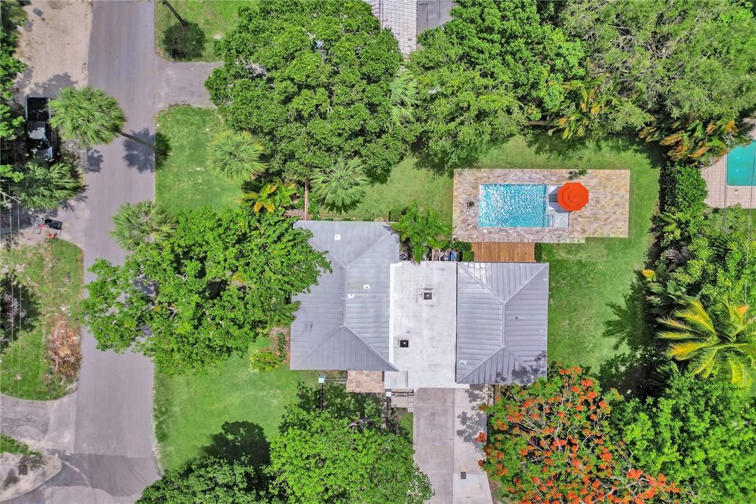 Are you ready for the opportunity to own this renovated home on true old Florida land? 12,358 sq. ft. corner lot in desired location 1.5 blocks from water. Elevated front porch that leads into homes foyer. Living area has a wall of 5 windows Natural light FLOWS. A dining nook/wall panel backdrop. 3 bedroom 3 full bath has a split floor plan. Primary bedroom is an oasis of serenity with more natural light & French doors leading to deck & pool, en-suite bath/soaking tub/separate shower. Pool installed 2022 clean lines & stone trim. Stunning porcelain tile flooring throughout home. Metal Roof-2003 Flat roof 2014 maintained & coated, 2 Ac's 2021-2022.2 skylights trimmed/imported copper.1 car garage/laundry. Storage shed on slab. Fenced. Information on dimensions should be verified by buyer.