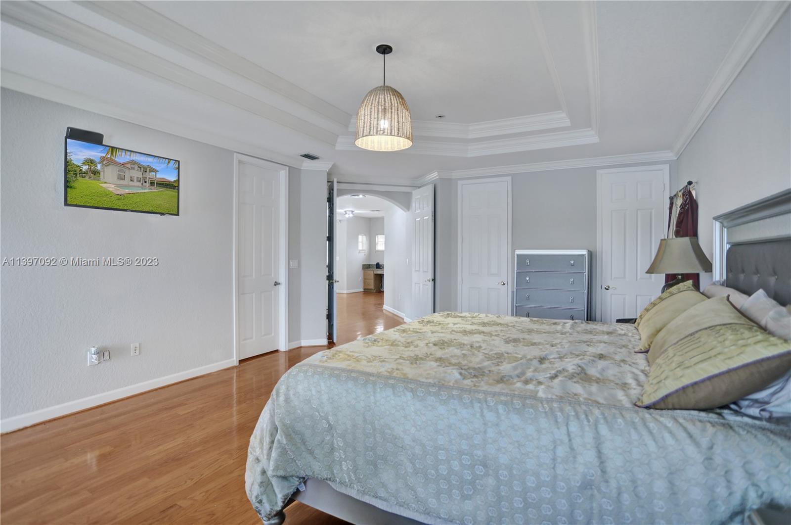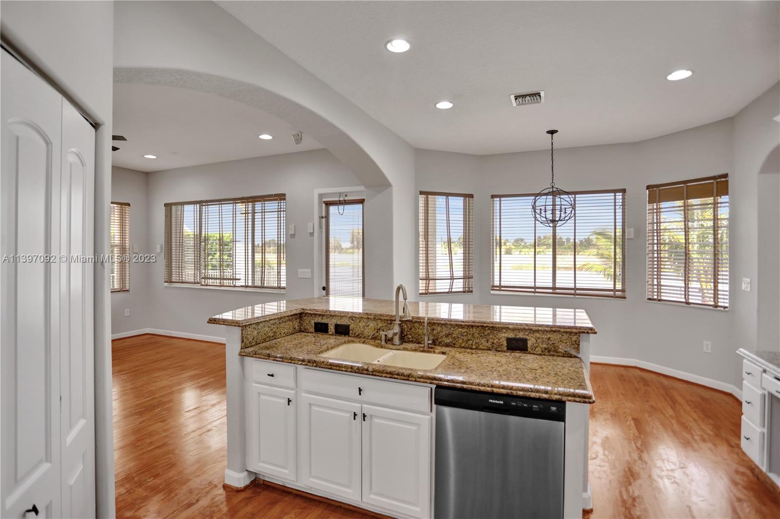 Mediterranean Castle Waterfront Pool Home located in the sought after gated community of Grand Isles. Boasting vaulted ceilings with eng wood floors throughout. Enjoy a bedroom on the first floor with ensuite bathroom. Formal dining room, kitchen and the family room all have the million dollar views, lots of privacy with the Everglades sitting directly across. Fresh exterior and interior paint along with kitchen cabinets and brand new stainless steel appliance. The primary bedroom has sitting area, balcony, 2 walkin closets and huge spa bathroom. Seller willing to give concession for renovations. Sunset Lakes amenities include a clubhouse, pool, gym, tennis and bb courts, Kid’s Club, and more. Come see!