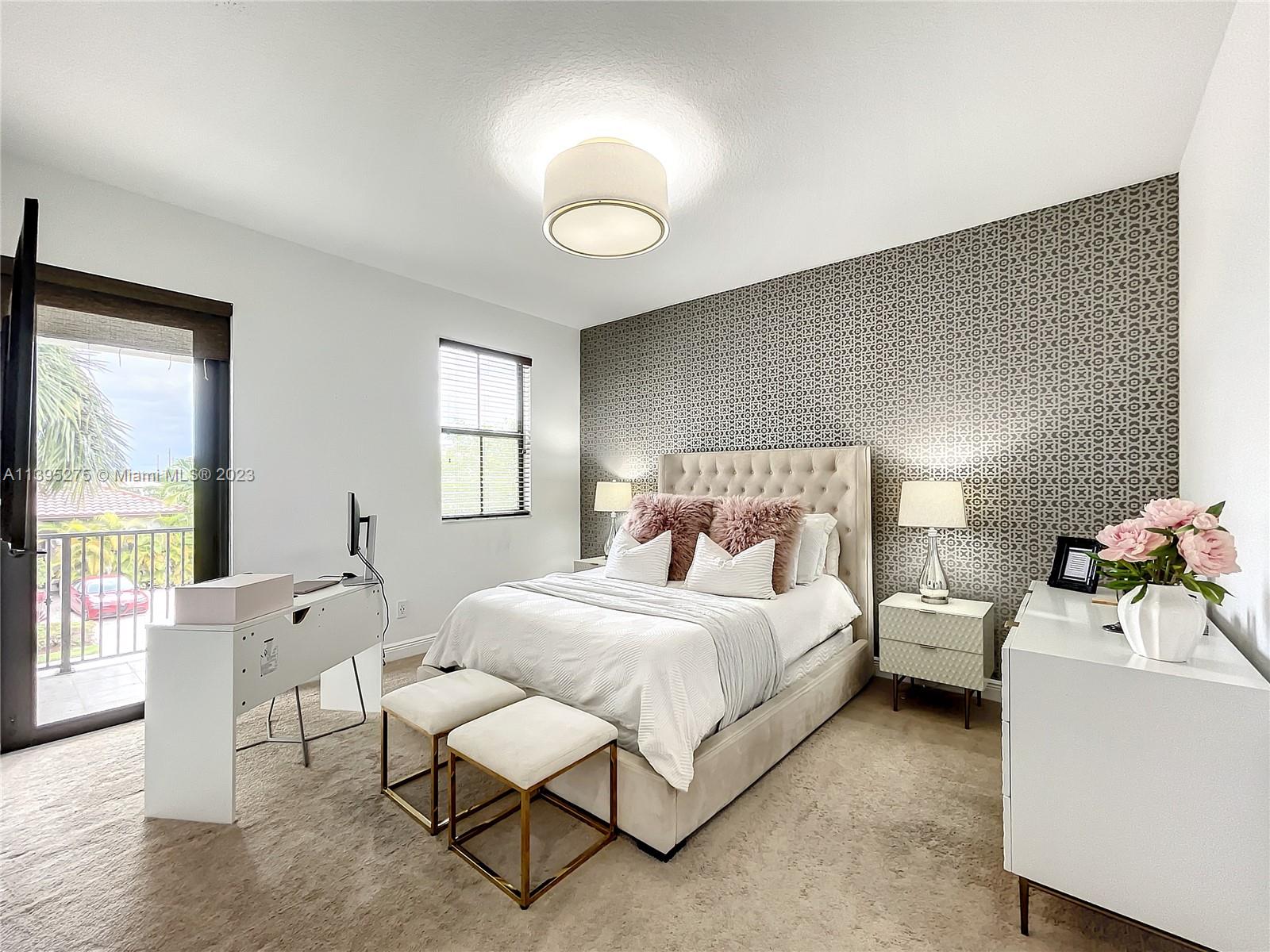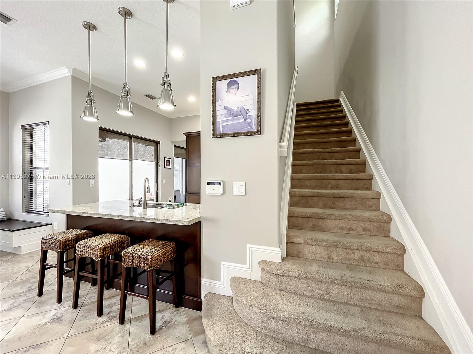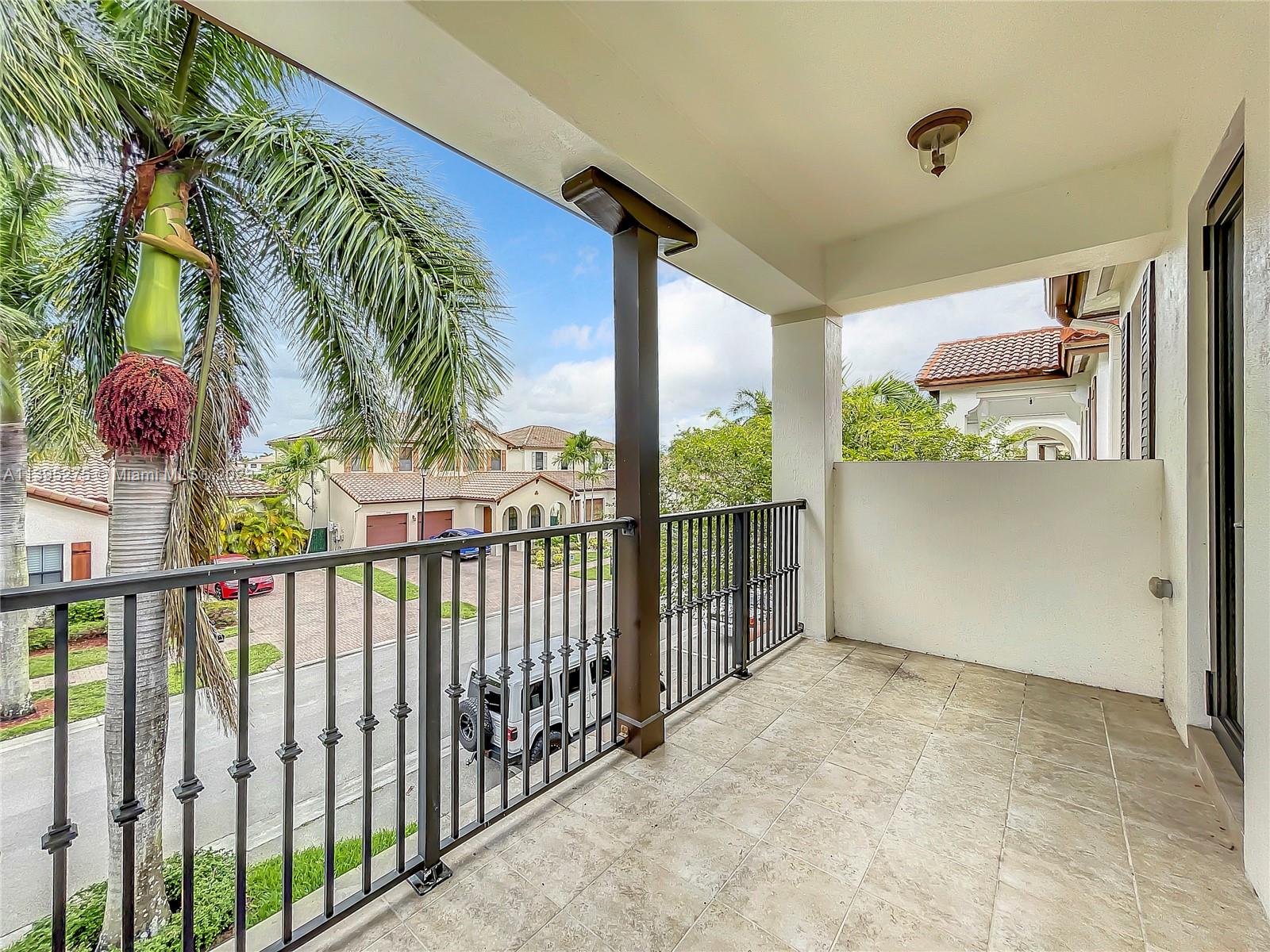Beautiful open and airy 3 Bedroom 2 1/2 Bath Laguna model in the safe, secure and family-friendly Moneterra gated community. This ready to move-in home features impact windows and doors upstairs. Enjoy cool evenings relaxing on your second floor tiled balcony just off the master bedroom. Custom built in breakfast nook with seating and additional storage right off the kitchen is both architecturally beautiful and functional. Gourmet kitchen includes stainless steel appliances, large 42" dark wood cabinets with built-in's galore, beautiful granite counter tops and illuminated by restoration hardware lighting.All bedrooms feature closets with finished built-in closets. Master suite includes walk-in closet with built-ins and the large glass shower enclosure and sunken tub. This is a must see!