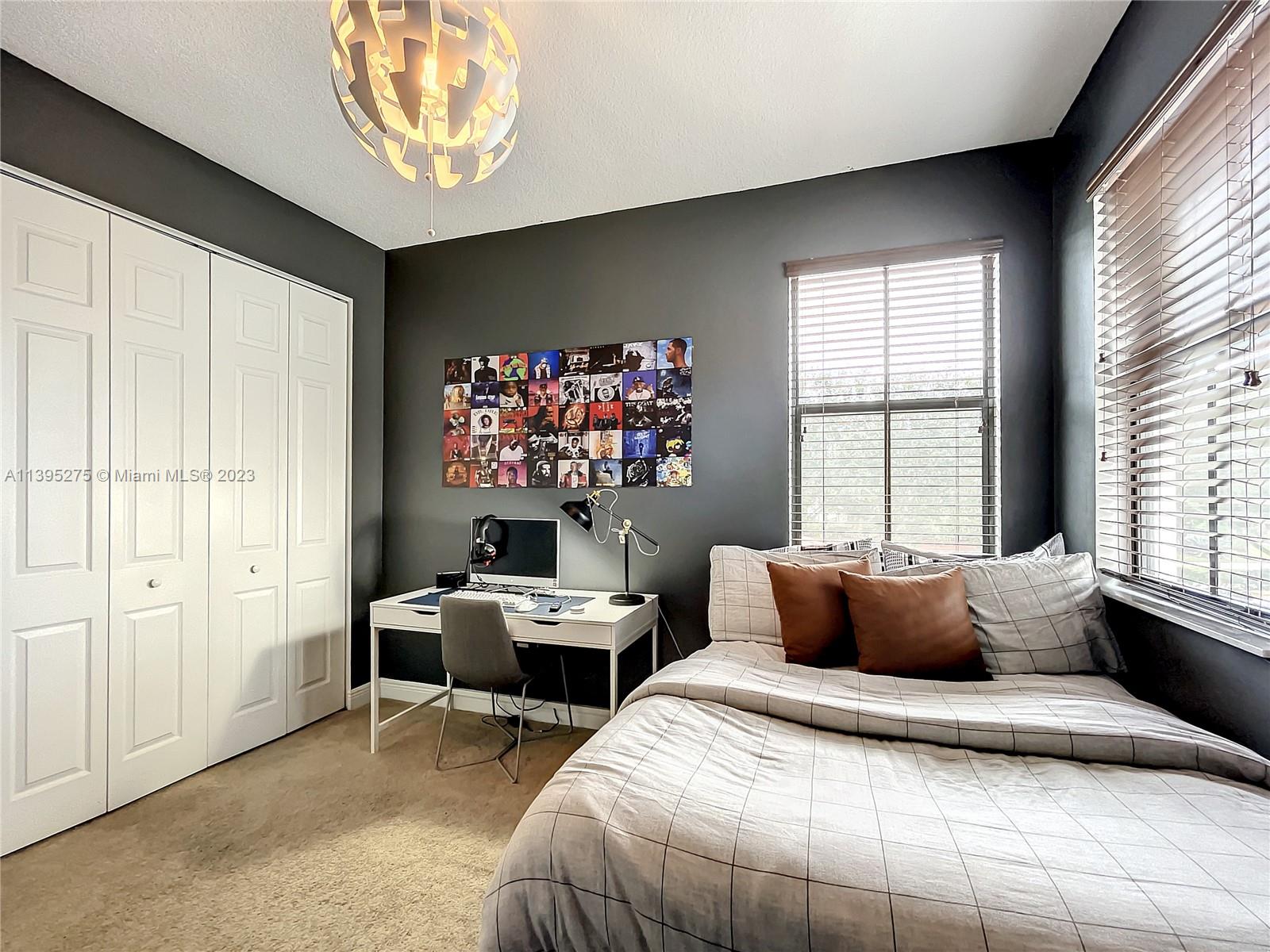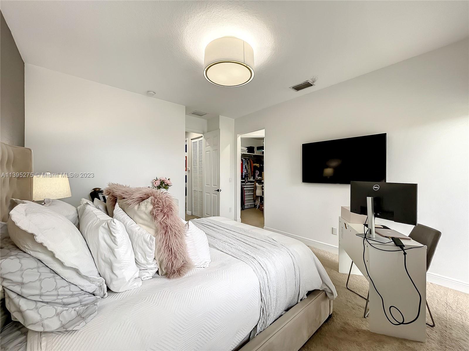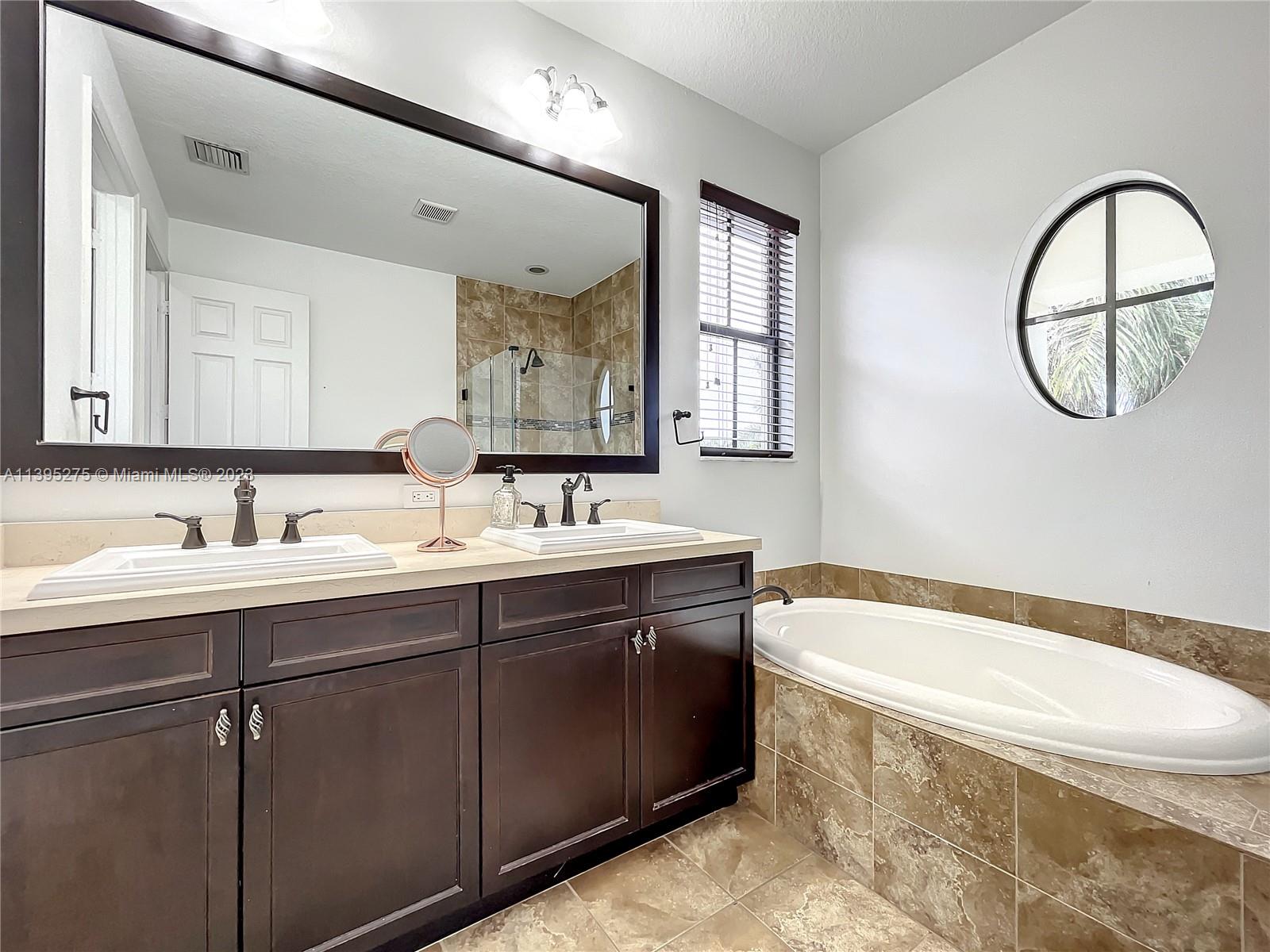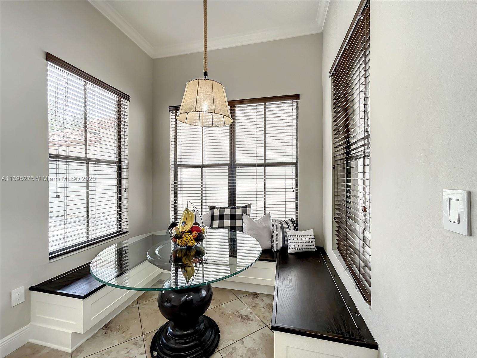 Beautiful open and airy 3 Bedroom 2 1/2 Bath Laguna model in the safe, secure and family-friendly Moneterra gated community. This ready to move-in home features impact windows and doors upstairs. Enjoy cool evenings relaxing on your second floor tiled balcony just off the master bedroom. Custom built in breakfast nook with seating and additional storage right off the kitchen is both architecturally beautiful and functional. Gourmet kitchen includes stainless steel appliances, large 42" dark wood cabinets with built-in's galore, beautiful granite counter tops and illuminated by restoration hardware lighting.All bedrooms feature closets with finished built-in closets. Master suite includes walk-in closet with built-ins and the large glass shower enclosure and sunken tub. This is a must see!