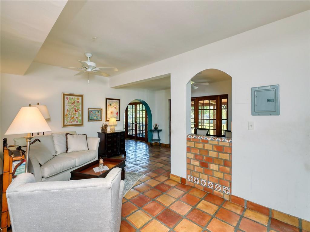 Home has been lived in by one family since 1973. It is in solid, functional condition but kitchen and bathrooms could use updating. Mexican tile floors throughout the home are in very good shape. Two large French doors lead to the oversized back porch, which overlooks the massive yard and canal. Beautiful prolific mango tree in the front yard. Part of the garage has been turned into a storage/laundry room. Home is within walking distance to a riverside park, biking or walking distance to Publix, restaurants and shops. No Home Owners Association but there is a strong neighborhood association.