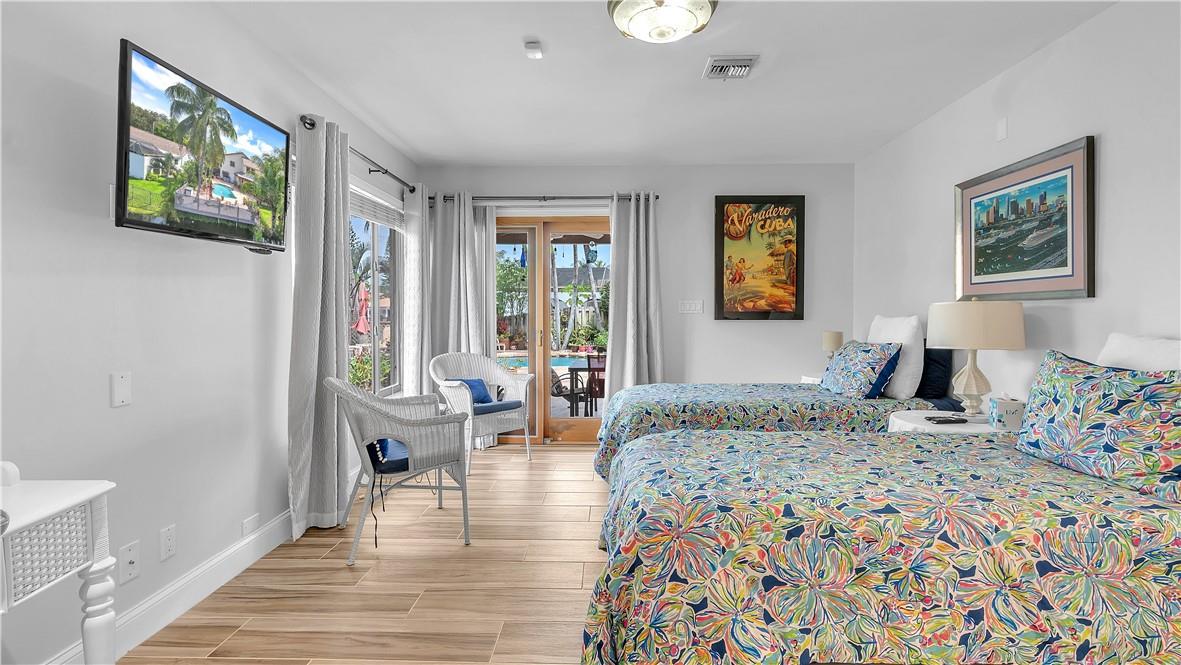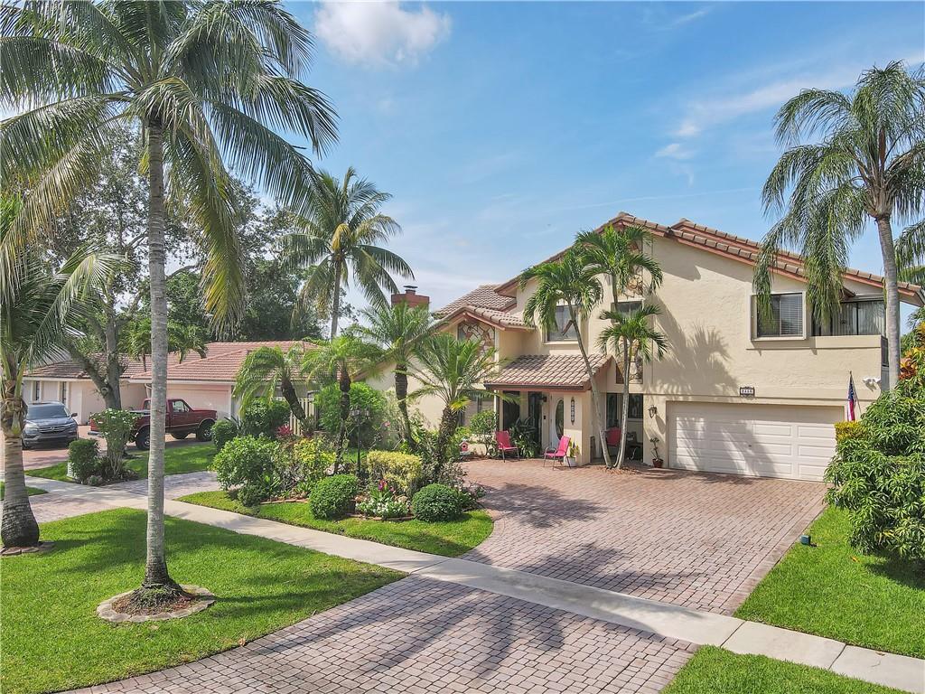Enjoy spectacular sunsets! Freeform heated pool has huge euro tile concrete deck, overlooking magnificent lake - perfect for entertaining. Lush landscaping front & back. Huge circular paver driveway. Home has a private 700 Sq. Ft. addition on the lower level, perfect for guests - two bedrooms with a full bathroom or a second primary suite w/living room. 4 bedrooms upstairs: Primary suite, w/jacuzzi tub, separate stall shower and double shower heads, bidet & huge walk in closet. 2 of the upstairs bedrooms lead out to a balcony. Full service updated kitchen with center island and separate dining area, lead out to pool & lake. Garage was converted by the prior owner to an amazing office w/large closet. Too many great features to list.