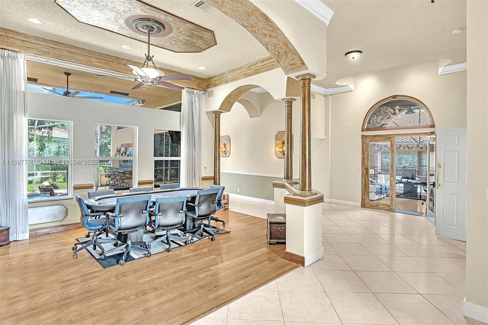 JUST REDUCED FOR A QUICK SALE!!! 4/4.5 single family home with beautiful home office in sought after Eagle Trace! This house has over $300K in upgrades completed within the last year (2022). Just to mention a few: New Roof, New Impact Windows, New Kitchen and Bathroom, New Circular Driveway, New AC, Professional Video Surveillance System and more. House is also equipped with a 15KW Electrical Backup Generator and 250 Propane Gas tank. Gas fireplace and wet bar in family room. Three of the four full bathrooms are en suite. Eagle Trace is a gated community with 5 tennis courts, pickleball, basketball, kids playground and a new, beautiful clubhouse is going to be built with no special assessment.