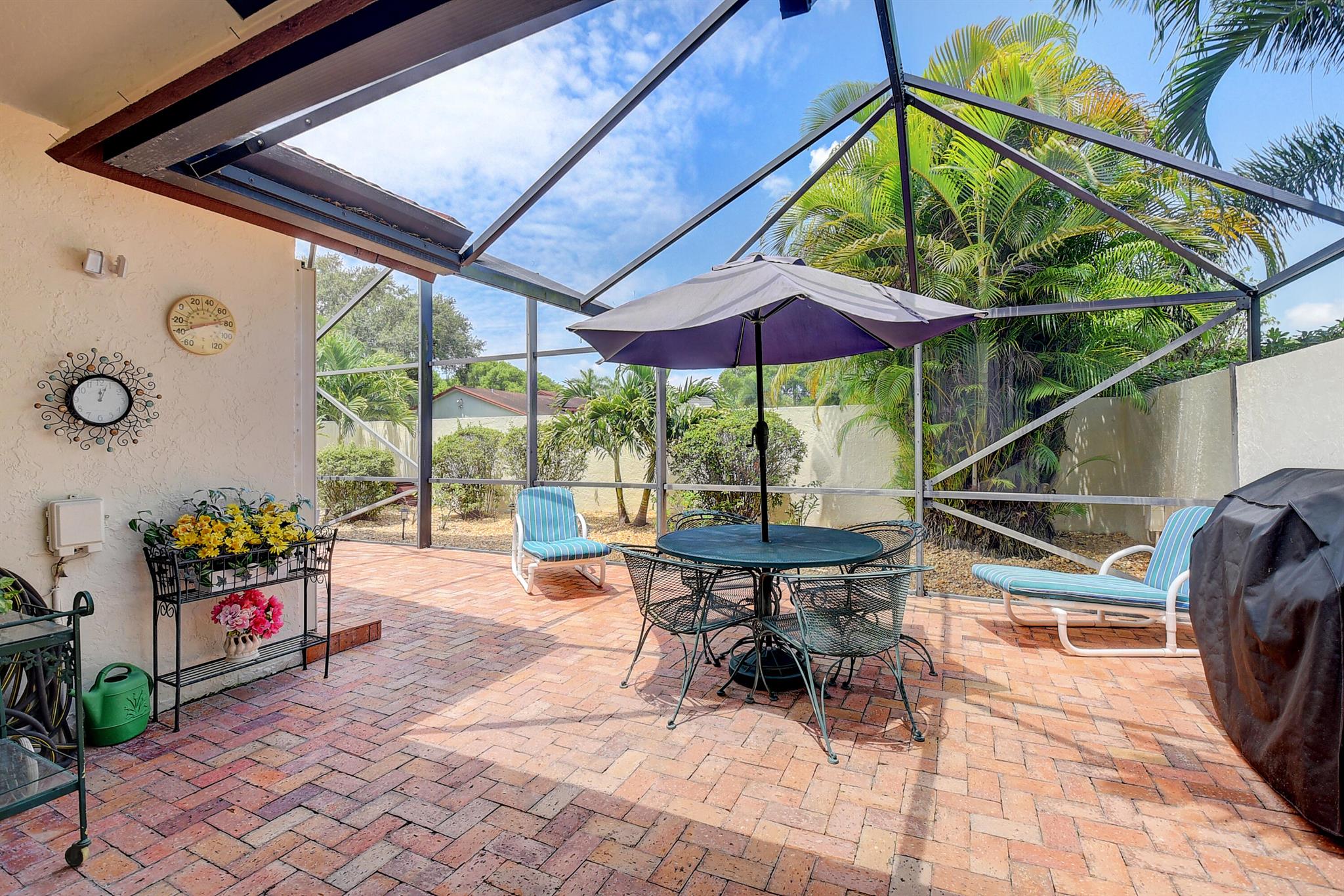 Incredible opportunity to live in Town Place Club Villas. Enter this charming home through the landscaped private garden lush with plumeria & pineapple plants. This 3 bedroom/2 bath home features a desirable split floor plan. Vaulted ceilings with skylights allow in plenty of natural light. Large living room with fireplace and separate dining room. Bright kitchen with adjacent breakfast area. Primary suite boasts vaulted ceilings, walk in closet and updated spacious bath with dual sinks, separate tub and shower. 2 additional bedrooms complete the main floor. 2nd floor loft offers flexible den/office. Plenty of room for outdoor entertaining on your screened in patio. Town Place Club Villas is a centrally located gated community, minutes away from Town Center Mall, parks & restaurants.