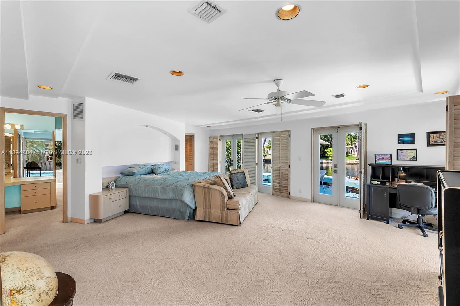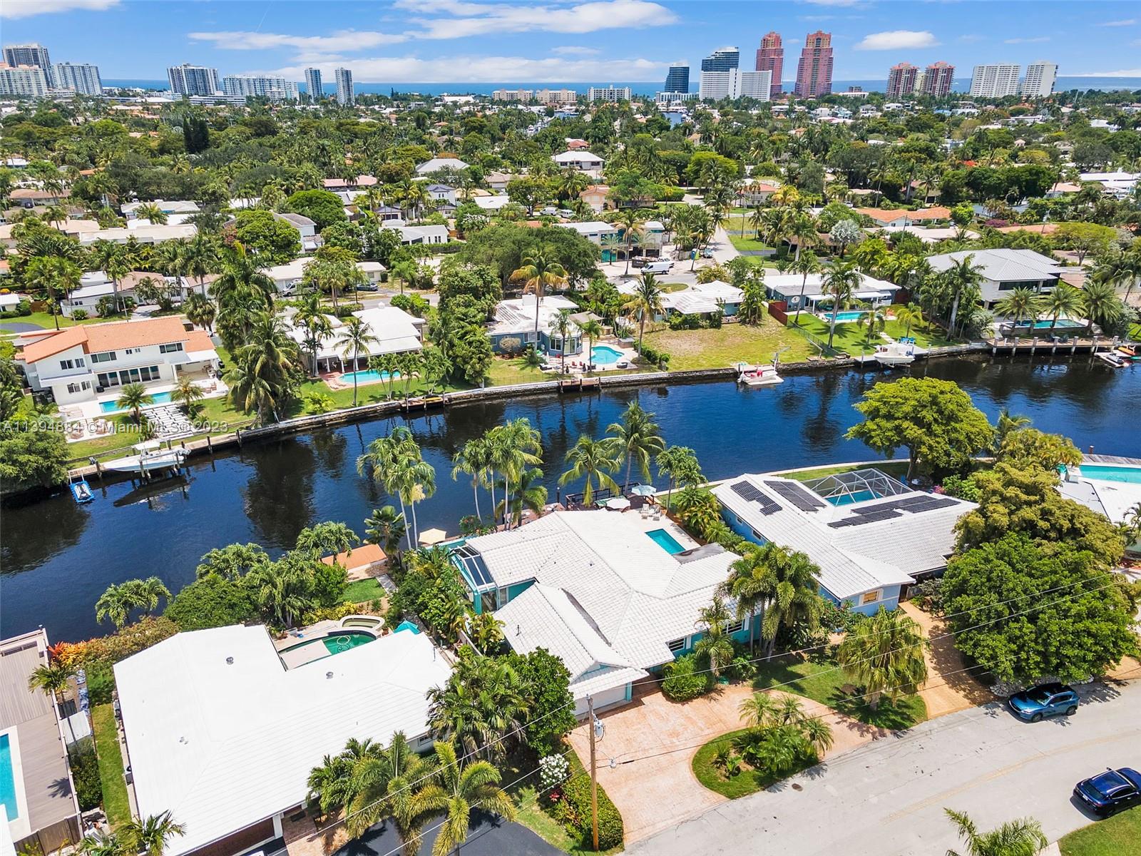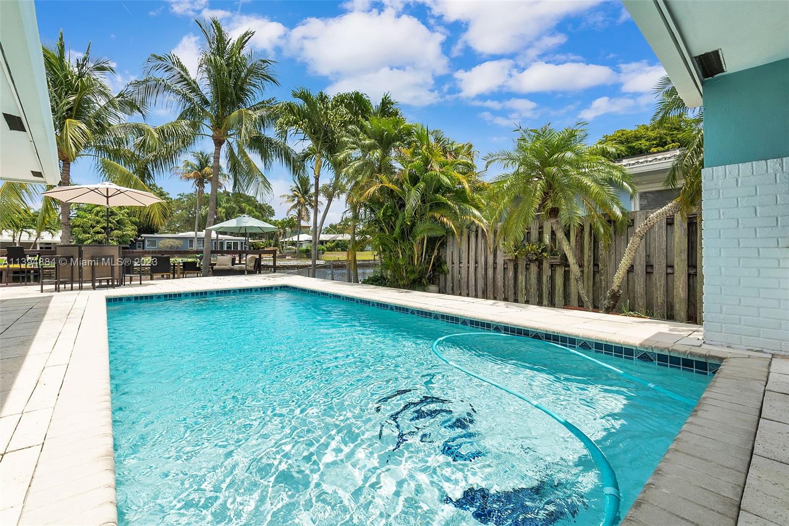 LOCATED IN PRESTIGIOUS BAL HARBOUR ON A PRIVATE CUL-DE-SAC DIRECTLY ON MIDDLE RIVER WITH DOCK AND OCEAN ACCESS! This oversized 2700 SF UNDER AIR, 4 bed/3 bath home with an open kitchen and separate dining/living room was converted into a spacious two-bedroom with a large DEN/wet bar. Can easily be made into 4 bedrooms. HUGE primary bedroom has water views from three sets of French doors and two sets of sliders! Primary has ensuite with a separate jacuzzi tub/shower and solarium! The pool overlooks a large wooden deck and MIDDLE RIVER. 87 feet of seawall - 20-foot dock. TWO-CAR GARAGE. Only one fixed bridge at 10'3". Roof 2012. DUAL AC 2016/2020 & DUAL HOT WATER HEATERS. Minutes to the beaches, Las Olas & downtown. Close to Trader Joe's, Whole Foods, restaurants, and shopping.