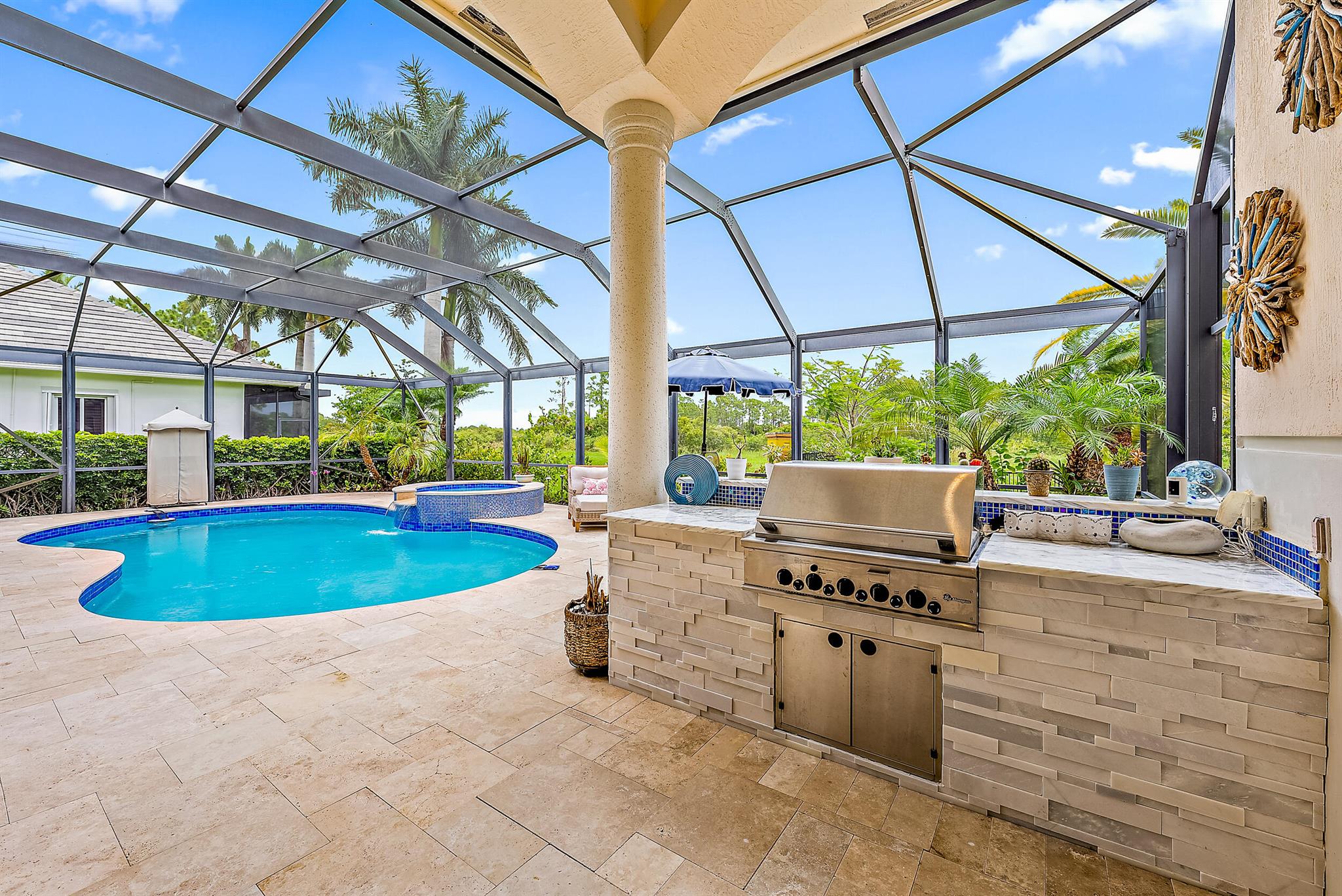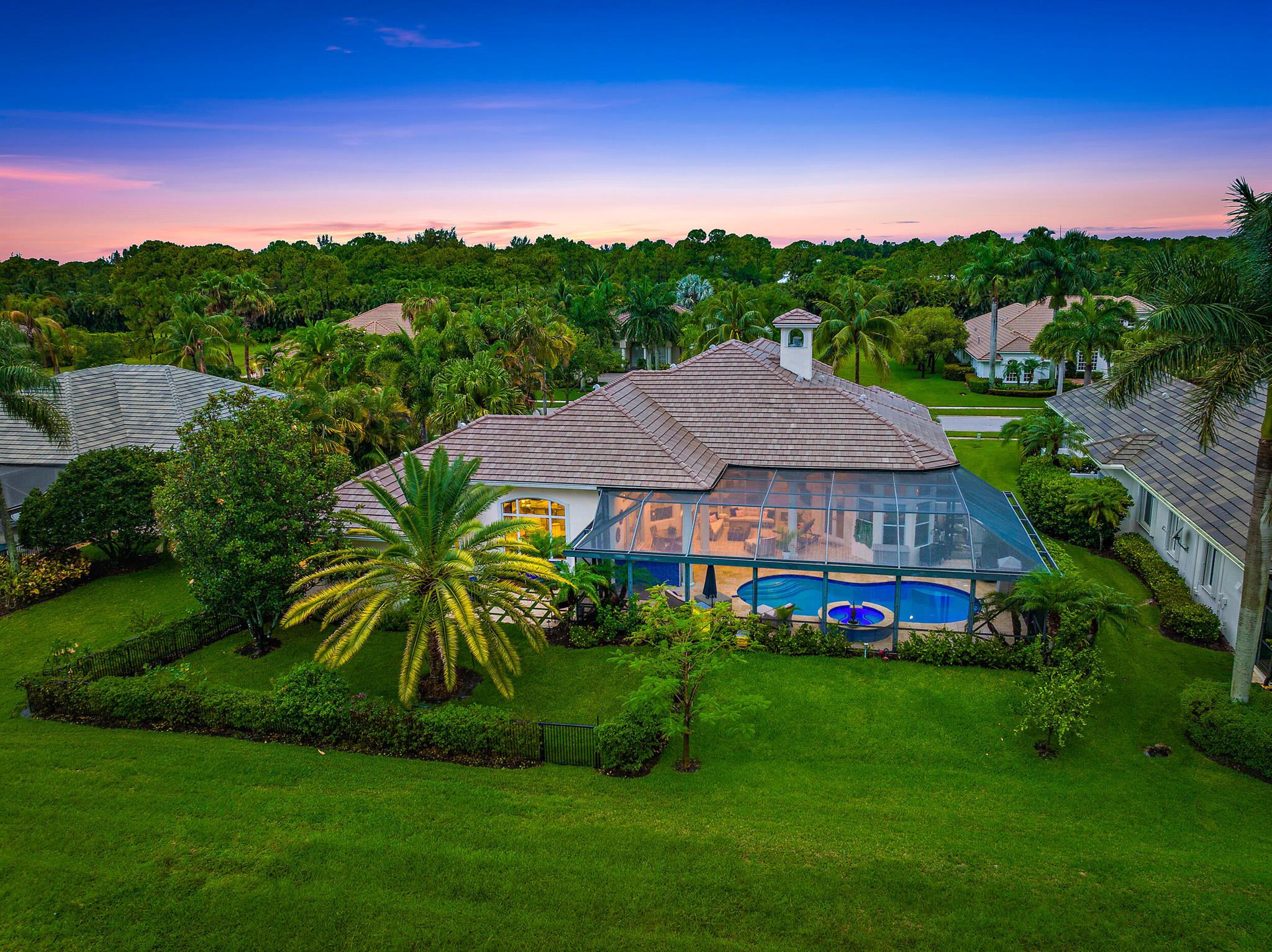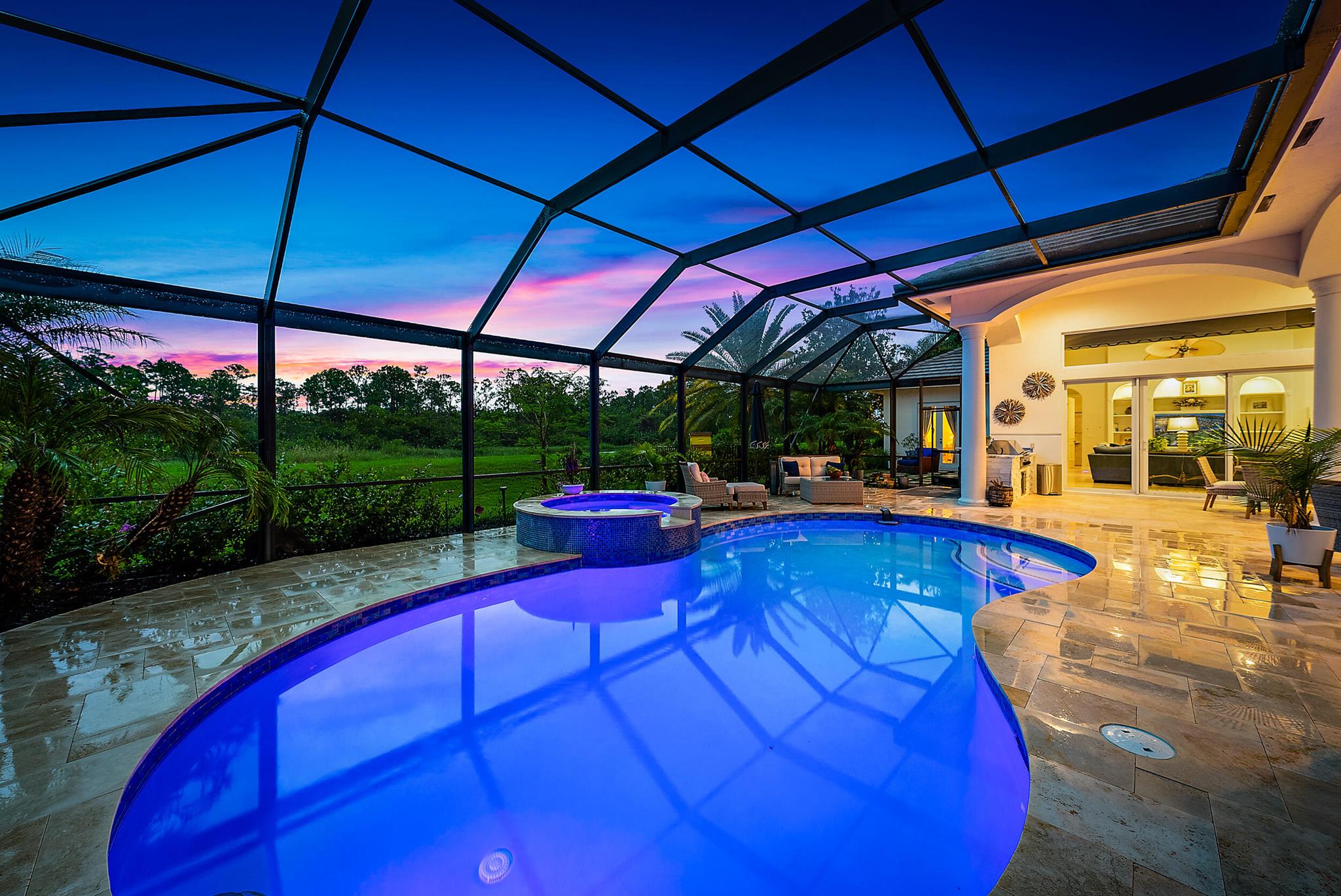 CUSTOM-BUILT Dreamstar estate, boasting 5BR/5.5BA + 3-CAR Garage and recent, major renovations. Located on almost a half-acre lot overlooking pristine nature Preserve, with an eastern exposure in the back, this home graciously expands to nature with incredible covered outdoor space and a beautifully renovated pool. In the past 12 months, the roof and gutters have been replaced, the driveway has been replaced, extensive landscape lighting has been added and the property's landscaping has been completely redesigned. A whole-house generator was added, and the patio, pool and pool tile have been refinished. The pool has been converted to saltwater and new fencing--with frog fencing--has been added. The redesigned interior features elegant marble flooring with extensive custom inlays.