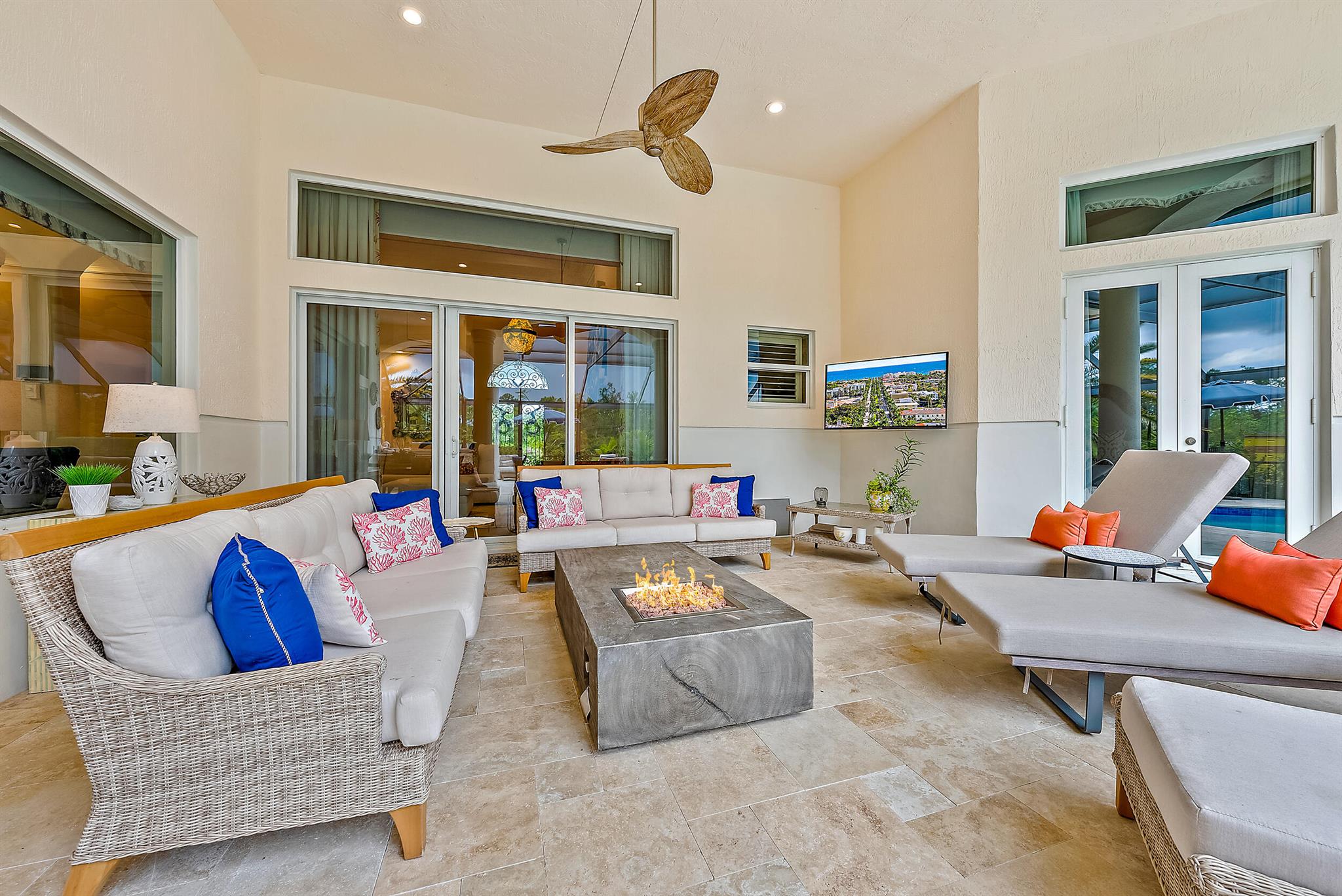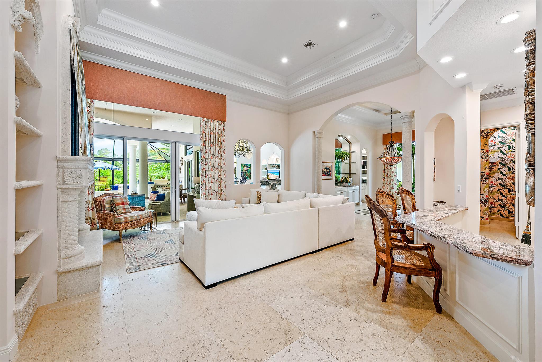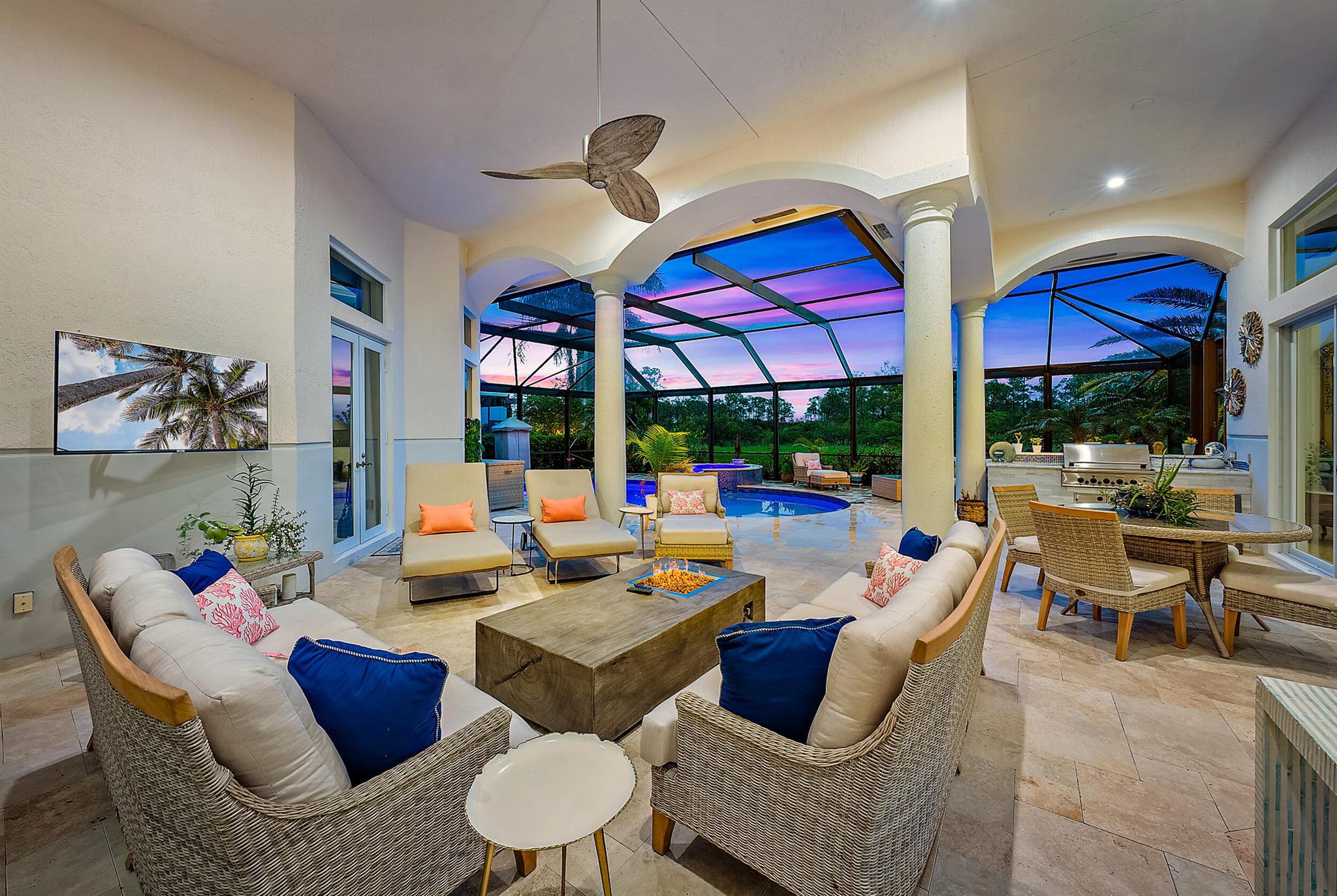 CUSTOM-BUILT Dreamstar estate, boasting 5BR/5.5BA + 3-CAR Garage and recent, major renovations. Located on almost a half-acre lot overlooking pristine nature Preserve, with an eastern exposure in the back, this home graciously expands to nature with incredible covered outdoor space and a beautifully renovated pool. In the past 12 months, the roof and gutters have been replaced, the driveway has been replaced, extensive landscape lighting has been added and the property's landscaping has been completely redesigned. A whole-house generator was added, and the patio, pool and pool tile have been refinished. The pool has been converted to saltwater and new fencing--with frog fencing--has been added. The redesigned interior features elegant marble flooring with extensive custom inlays.