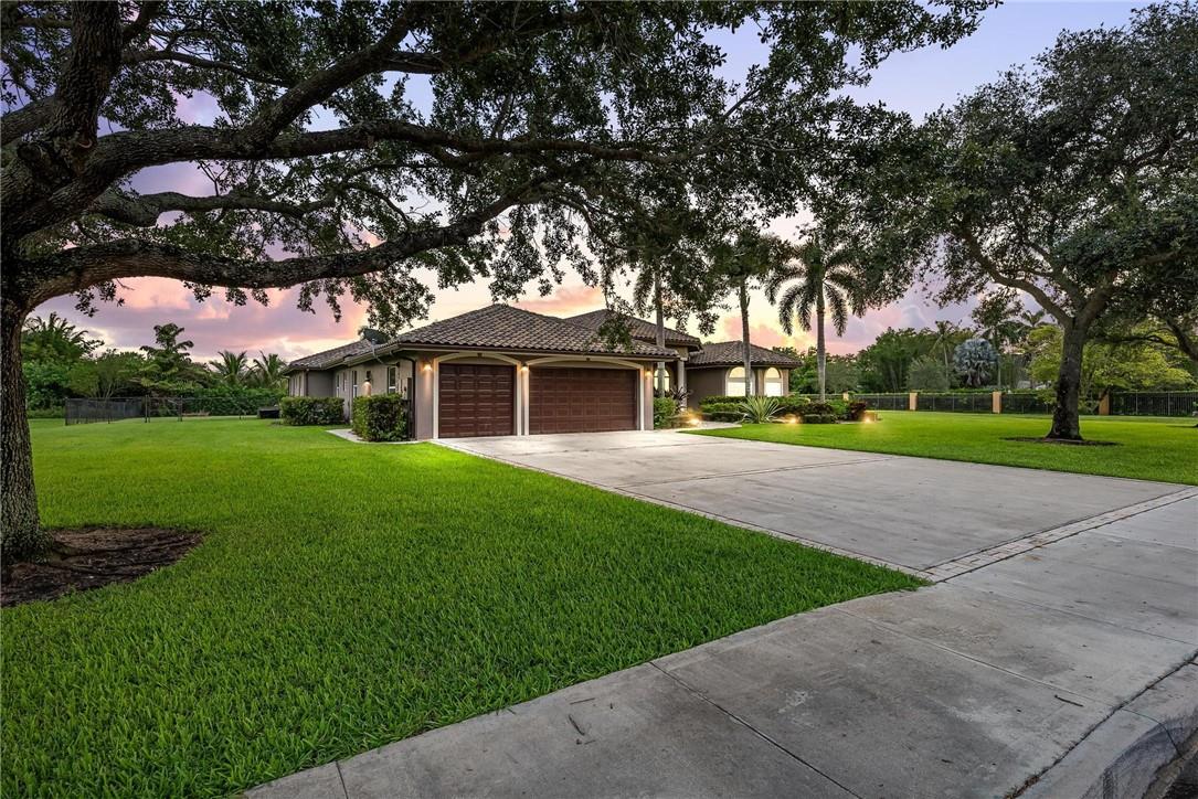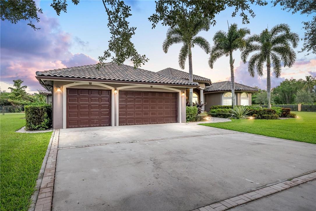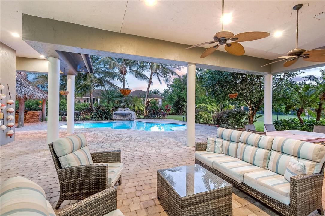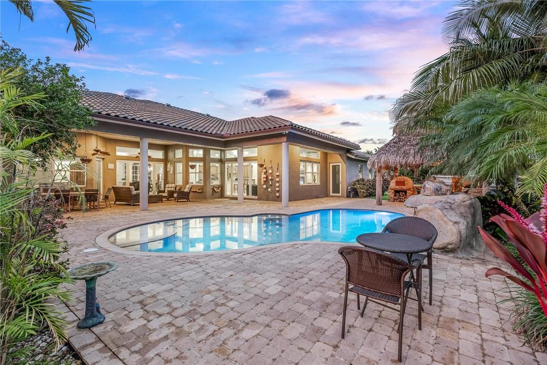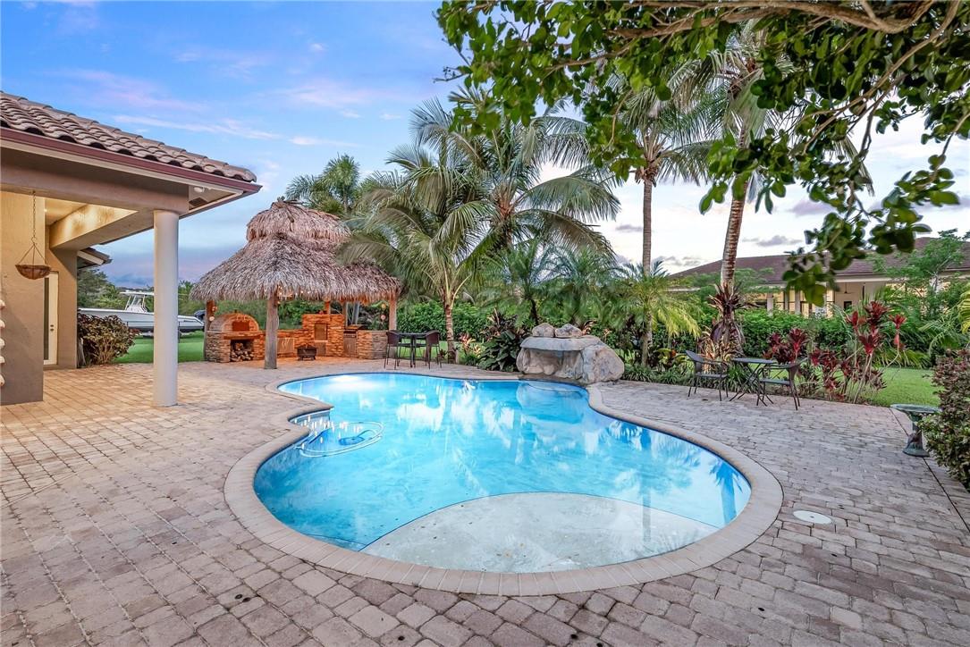 Located in the exclusive gated, boutique community of Hicks Estates, this custom estate features 5 Bed/4.5Bath + office includes a lounge/game room with wet bar. Soaring ceilings over 12 feet give your new home a light, bright and airy feel. The chef's kitchen features hardwood cabinets, granite counters and stainless steel appliances with a walk-in pantry. Huge primary suite with spa like bath and matching closets. Situated on a builder's acre, this home features an entertainer's dream backyard with large patio surrounding a freeform pool, chickee hut outdoor kitchen with built in grill and brick pizza oven, and lush tropical landscaping. Impact windows and doors, a newer tile roof (2016) makes this home safe and secure. Too many features to list, come and see today!