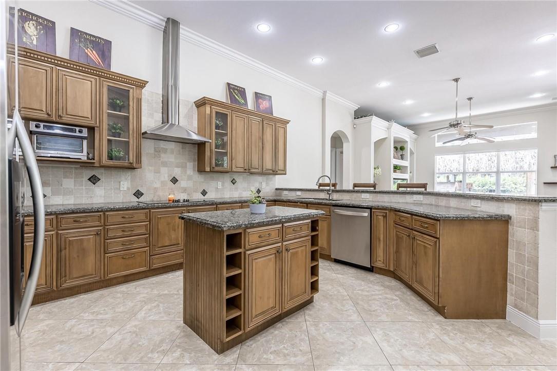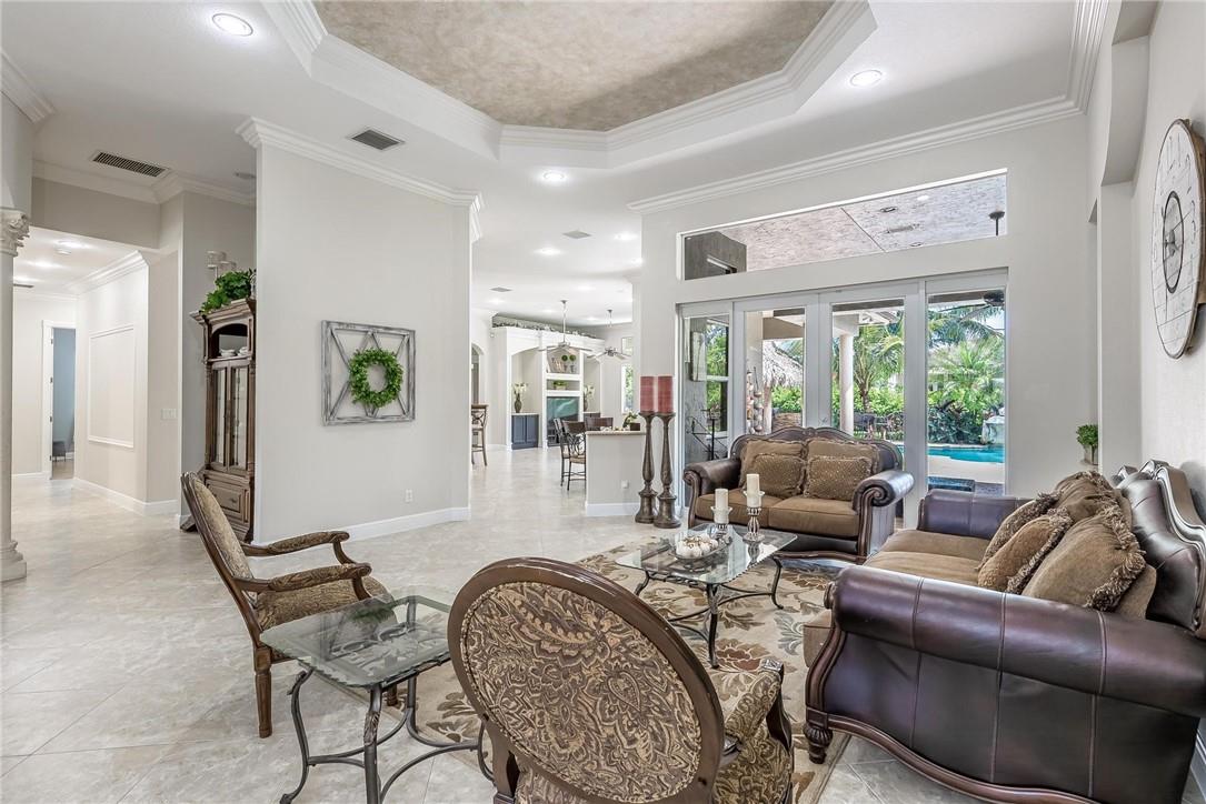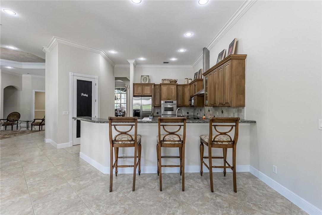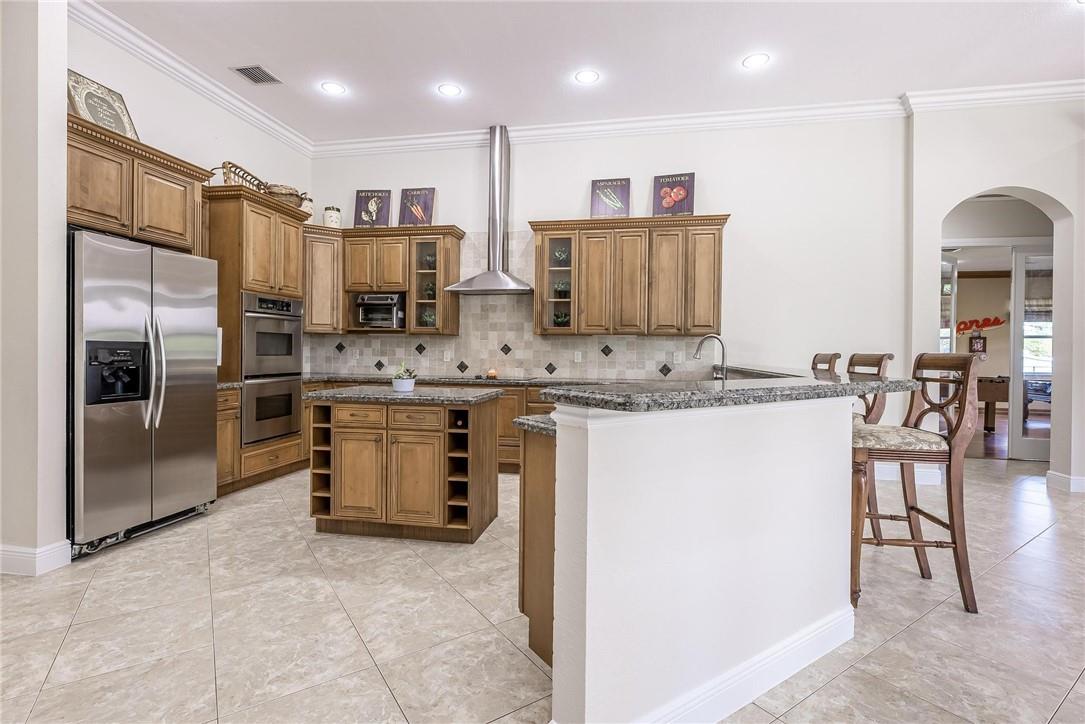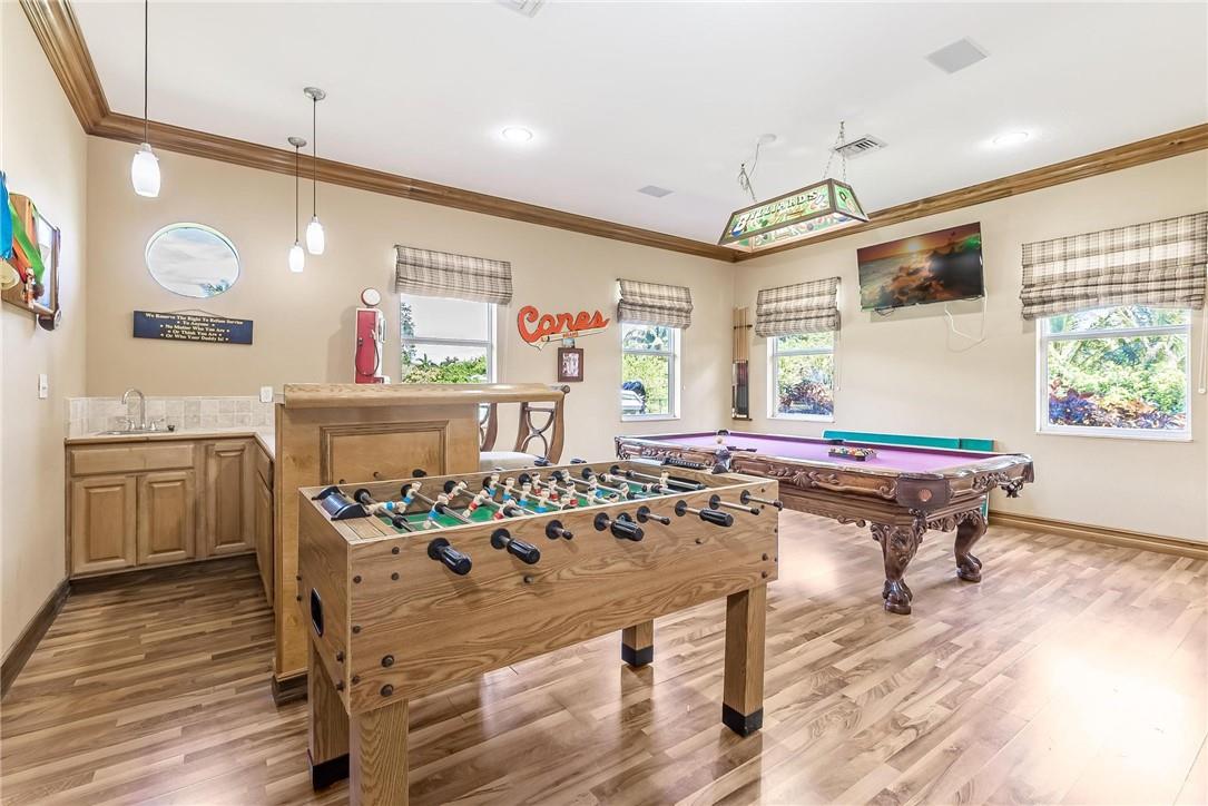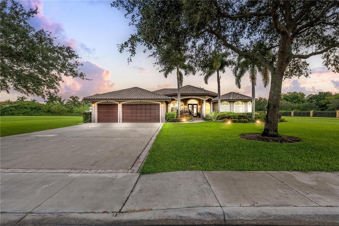 Located in the exclusive gated, boutique community of Hicks Estates, this custom estate features 5 Bed/4.5Bath + office includes a lounge/game room with wet bar. Soaring ceilings over 12 feet give your new home a light, bright and airy feel. The chef's kitchen features hardwood cabinets, granite counters and stainless steel appliances with a walk-in pantry. Huge primary suite with spa like bath and matching closets. Situated on a builder's acre, this home features an entertainer's dream backyard with large patio surrounding a freeform pool, chickee hut outdoor kitchen with built in grill and brick pizza oven, and lush tropical landscaping. Impact windows and doors, a newer tile roof (2016) makes this home safe and secure. Too many features to list, come and see today!