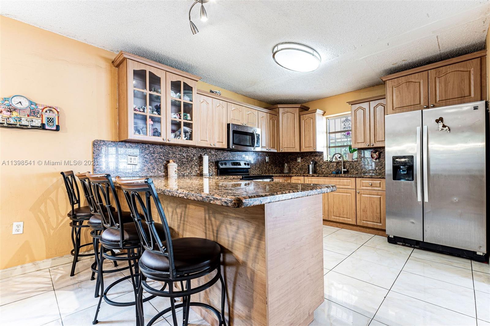 Welcome to your dream home in East Hialeah! 3-bedroom, 2-bathroom residence with large bedrooms, tiled throughout and lots of closet space. As you step inside, you'll be greeted by a charming formal living room. The spacious family and dining room combination provides a versatile space for entertaining. The kitchen boasts beautiful granite countertops and stainless steel appliances. One of the highlights of this property is its large backyard, which includes a covered terrace and detached storage room. Located in East Hialeah, this home offers a desirable location with easy access to amenities, schools, and transportation. Don't miss out on this incredible opportunity to make this house your home!