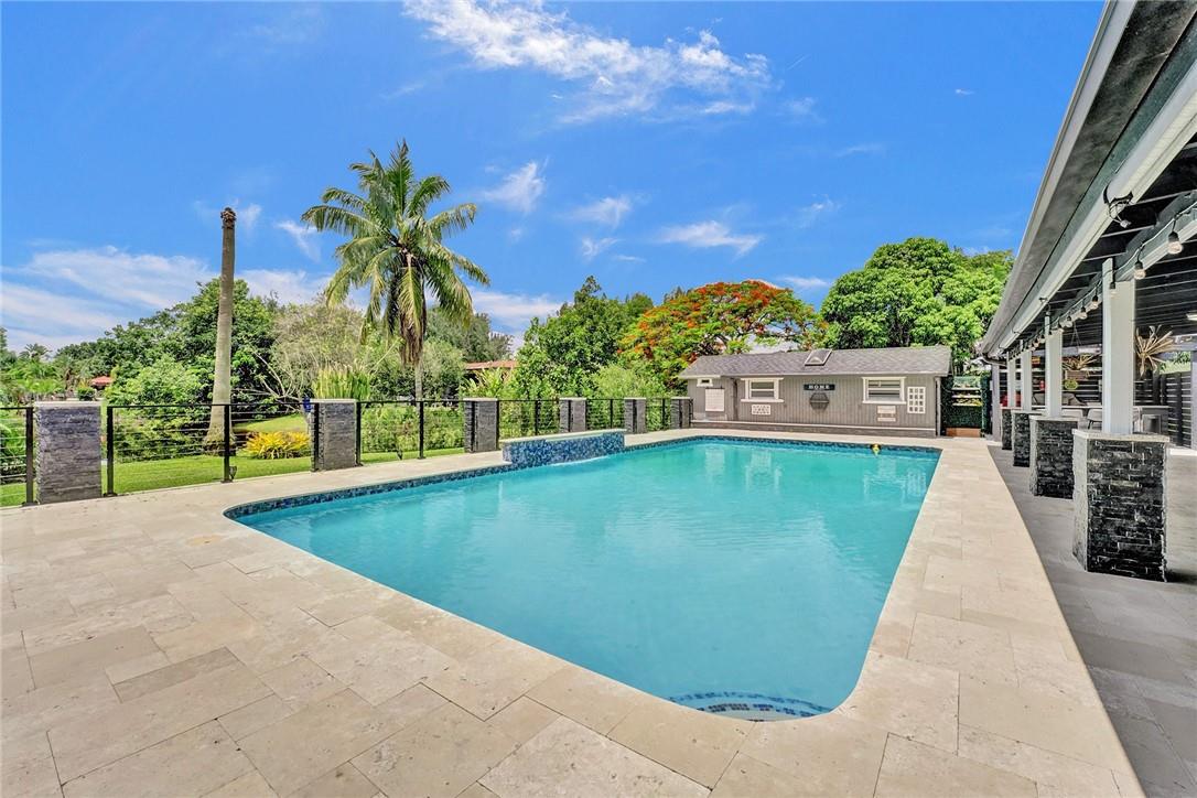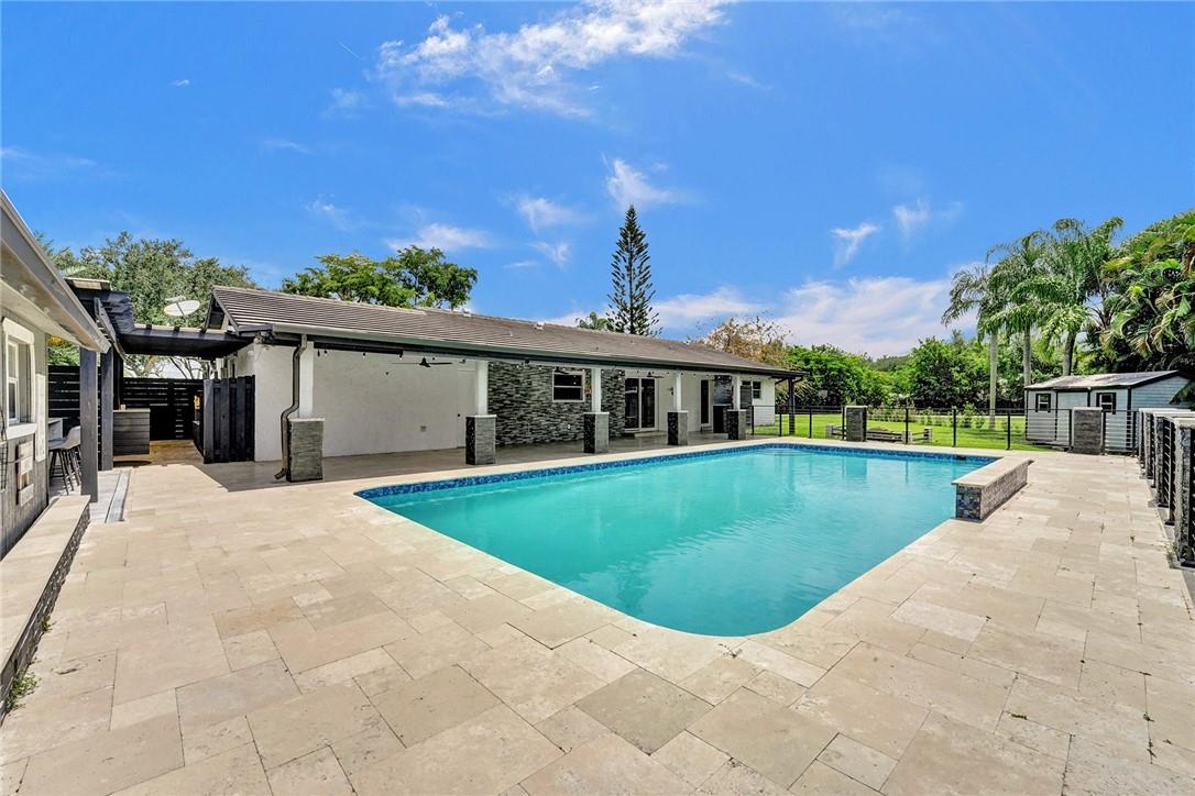 This is THE ONE! A rare find, this tastefully updated home is nestled on a sprawling almost 30,000sf lot in Davie. The modern interior features newer tile floors,recessed LED lighting,accent walls,built-in bar w/ice maker & wine cooler. Newer Roof,A/C,W/H & W/D. The remodeled kitchen is adorned w/Bosch appliances,quartz countertops & dual-toned cabinets. Enjoy safety & efficiency w/full impact windows&doors. Retreat to the travertine pool deck & indulge in a recently remodeled massive 20 x 40 saltwater pool. Prepare meals using your summer kitchen w/granite countertops,built inBBQ & KamadoJoe Ceramic Smoker. Cool off w/OutdoorShower & Enjoy music w/built in exterior Sonos Sound Sys. Have your guests stay in the adorable guest home This one is an all around must see, EASY TO SHOW!