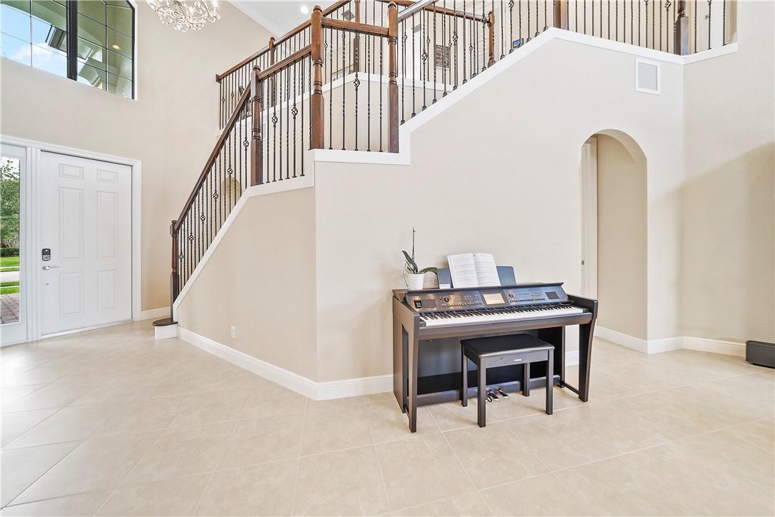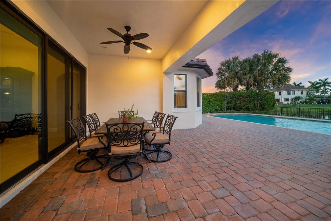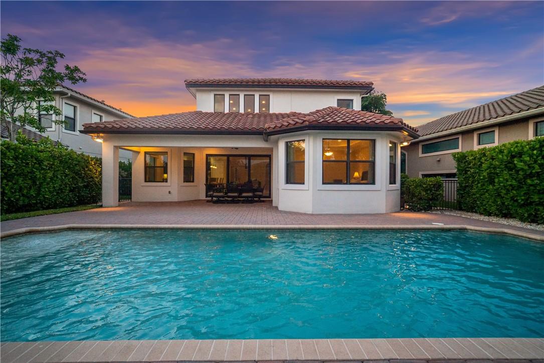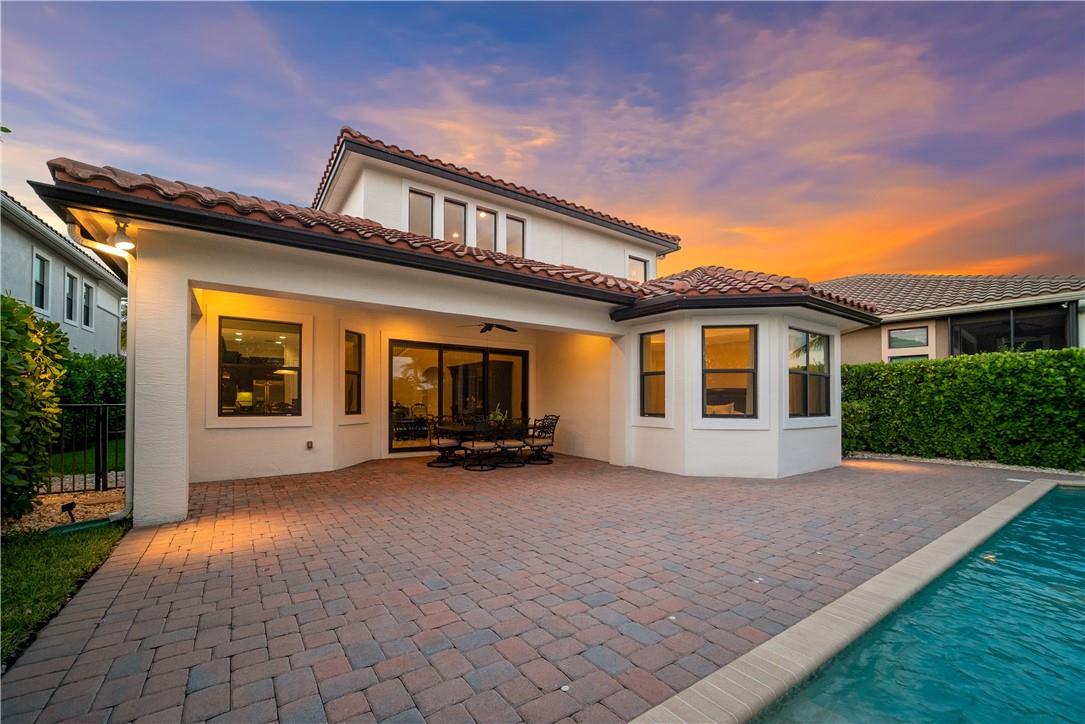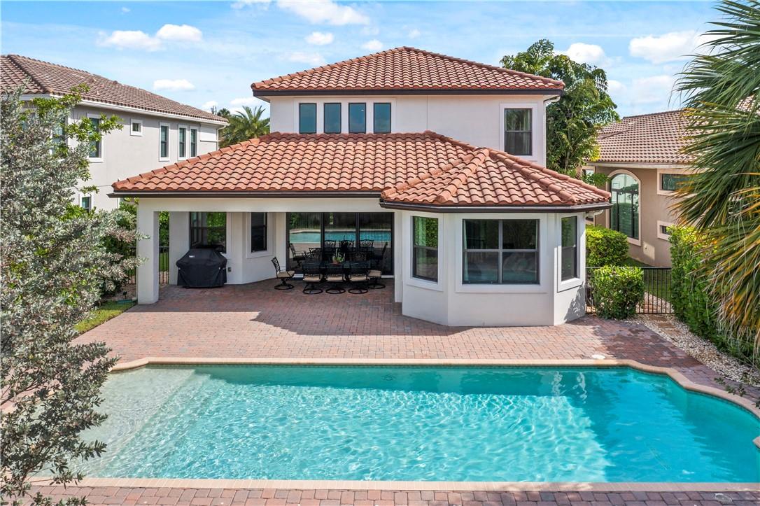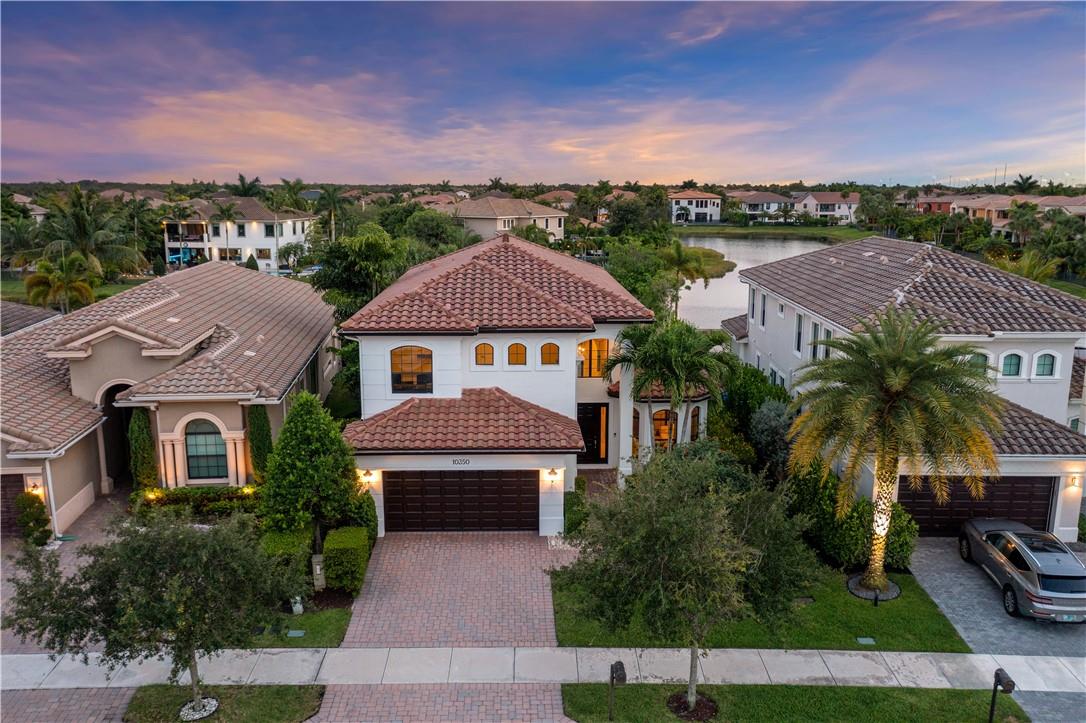 Beautiful Tuscan-style home with 5 beds & 3 baths (5th bed used as office/multi-purpose room). Imagine waking up every morning or sitting on your back patio while taking in a magnificent & serene water view. The home also features a wonderful pool w/built-in sound system in the lanai ideal for entertaining outdoors. 2 brand new A/C units. Indoor security system, crown molding throughout, fenced-in yard, open concept floor plan w/vaulted ceilings perfect for memorable gatherings. Kitchen w/stainless steel appliances & lovely espresso cabinets, granite countertops, breakfast bar, electric range w/hood, diagonal tile floors throughout main living areas. Stunning stairway w/wrought iron & immaculate espresso hardwood floors in loft (upper level). Impact glass windows. Exterior painted in 2019.