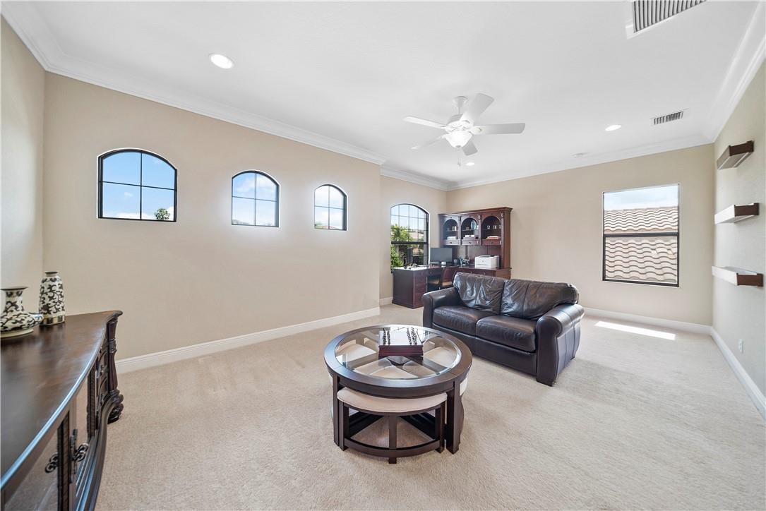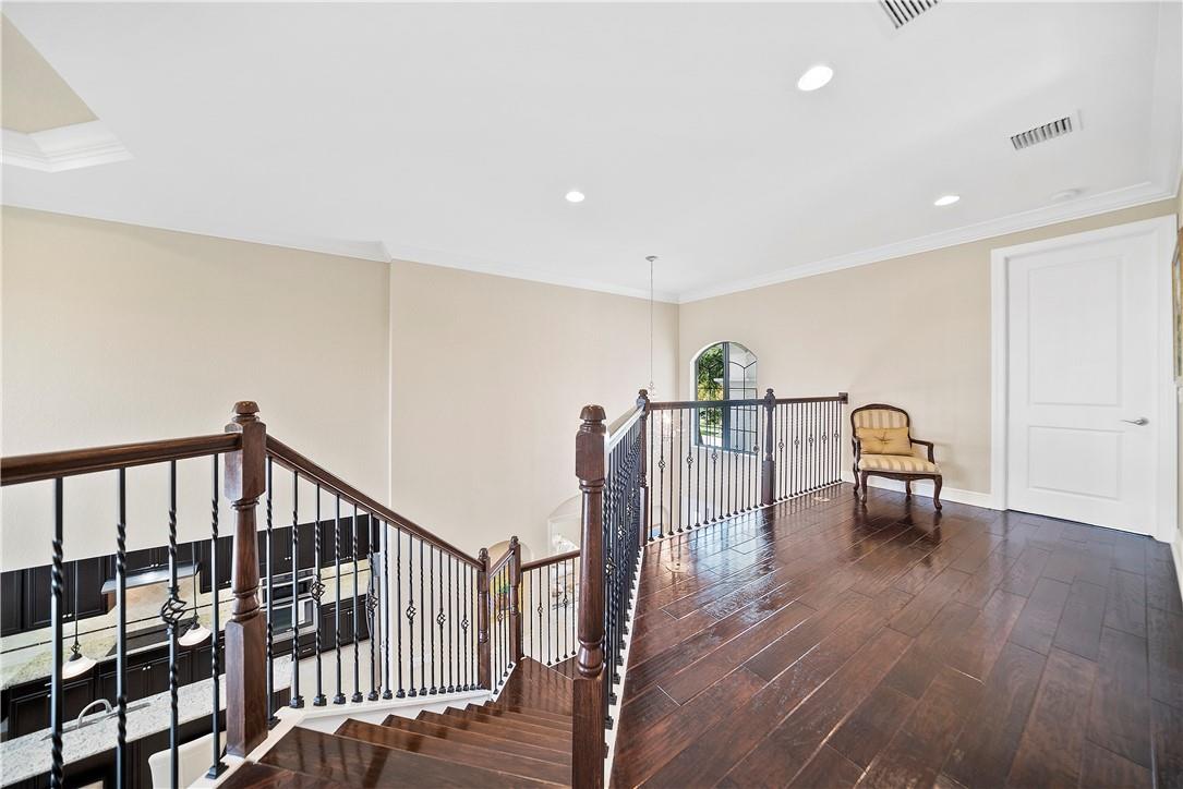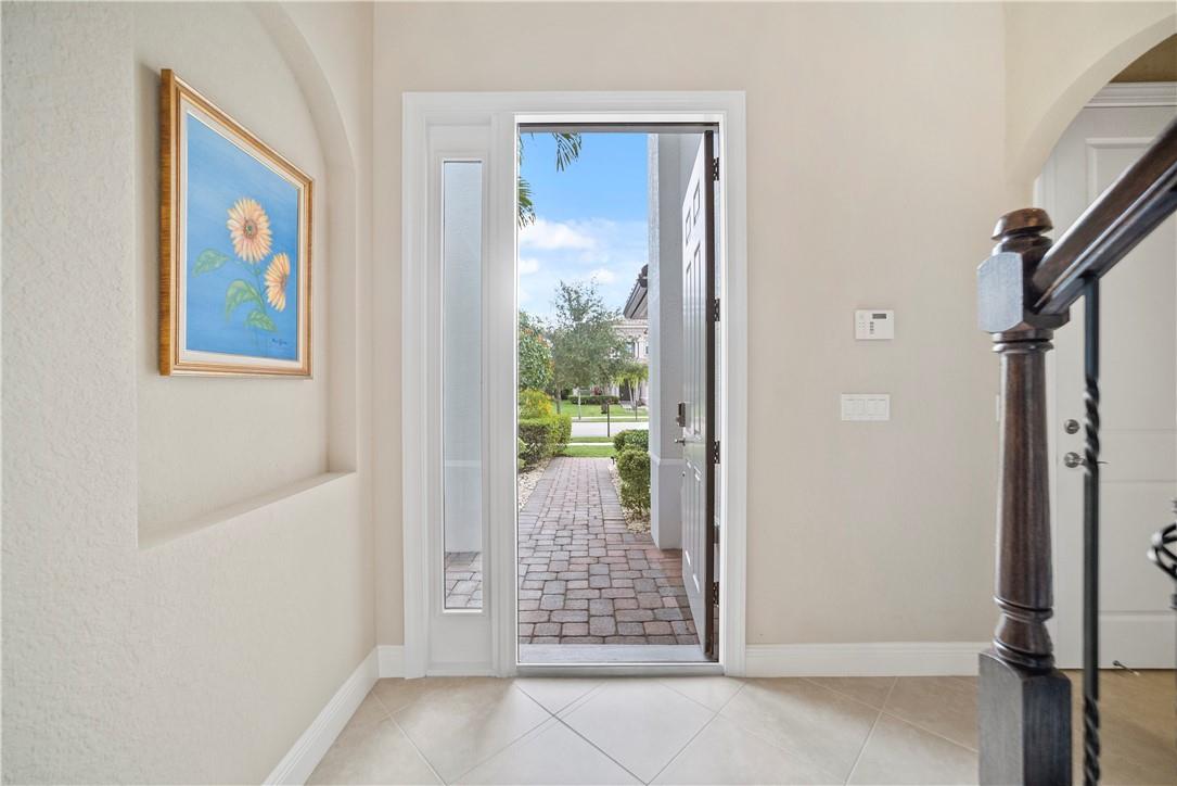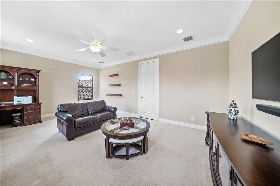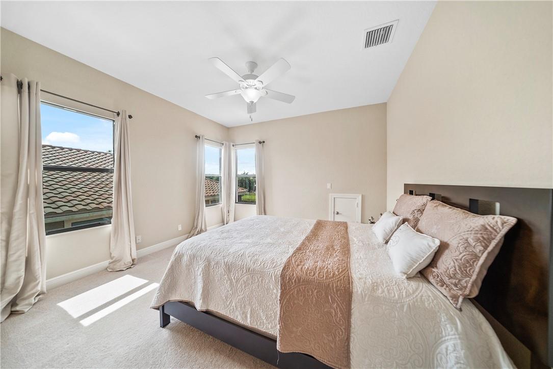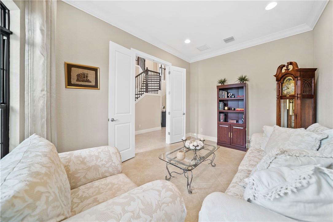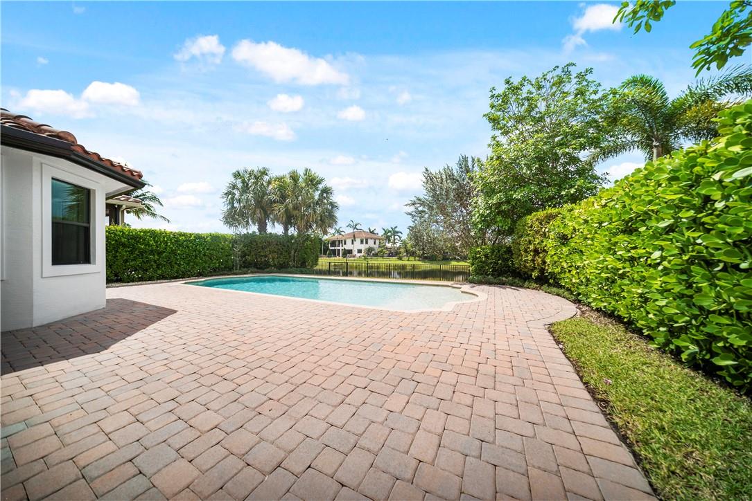 Beautiful Tuscan-style home with 5 beds & 3 baths (5th bed used as office/multi-purpose room). Imagine waking up every morning or sitting on your back patio while taking in a magnificent & serene water view. The home also features a wonderful pool w/built-in sound system in the lanai ideal for entertaining outdoors. 2 brand new A/C units. Indoor security system, crown molding throughout, fenced-in yard, open concept floor plan w/vaulted ceilings perfect for memorable gatherings. Kitchen w/stainless steel appliances & lovely espresso cabinets, granite countertops, breakfast bar, electric range w/hood, diagonal tile floors throughout main living areas. Stunning stairway w/wrought iron & immaculate espresso hardwood floors in loft (upper level). Impact glass windows. Exterior painted in 2019.