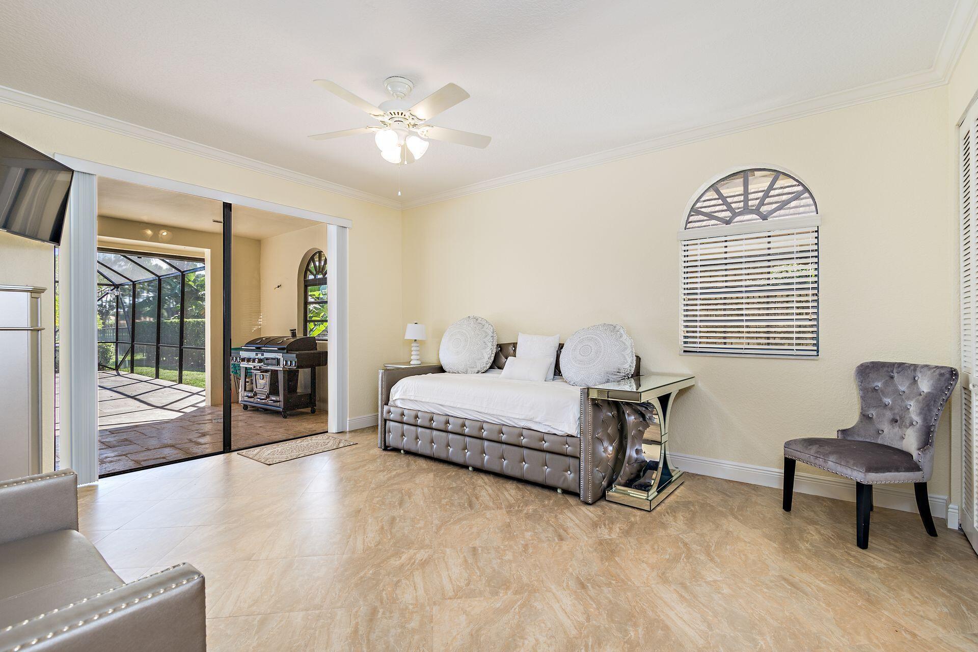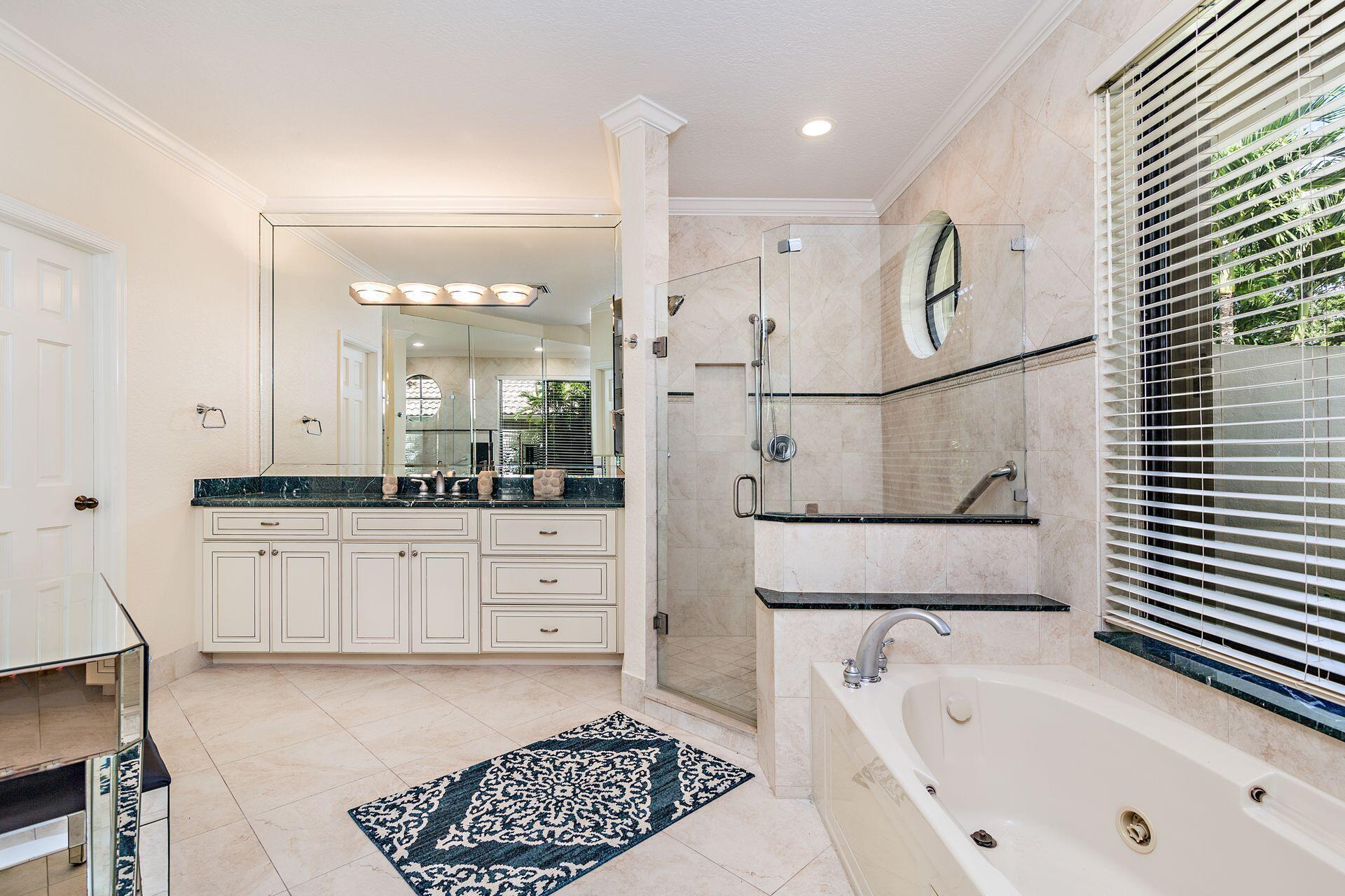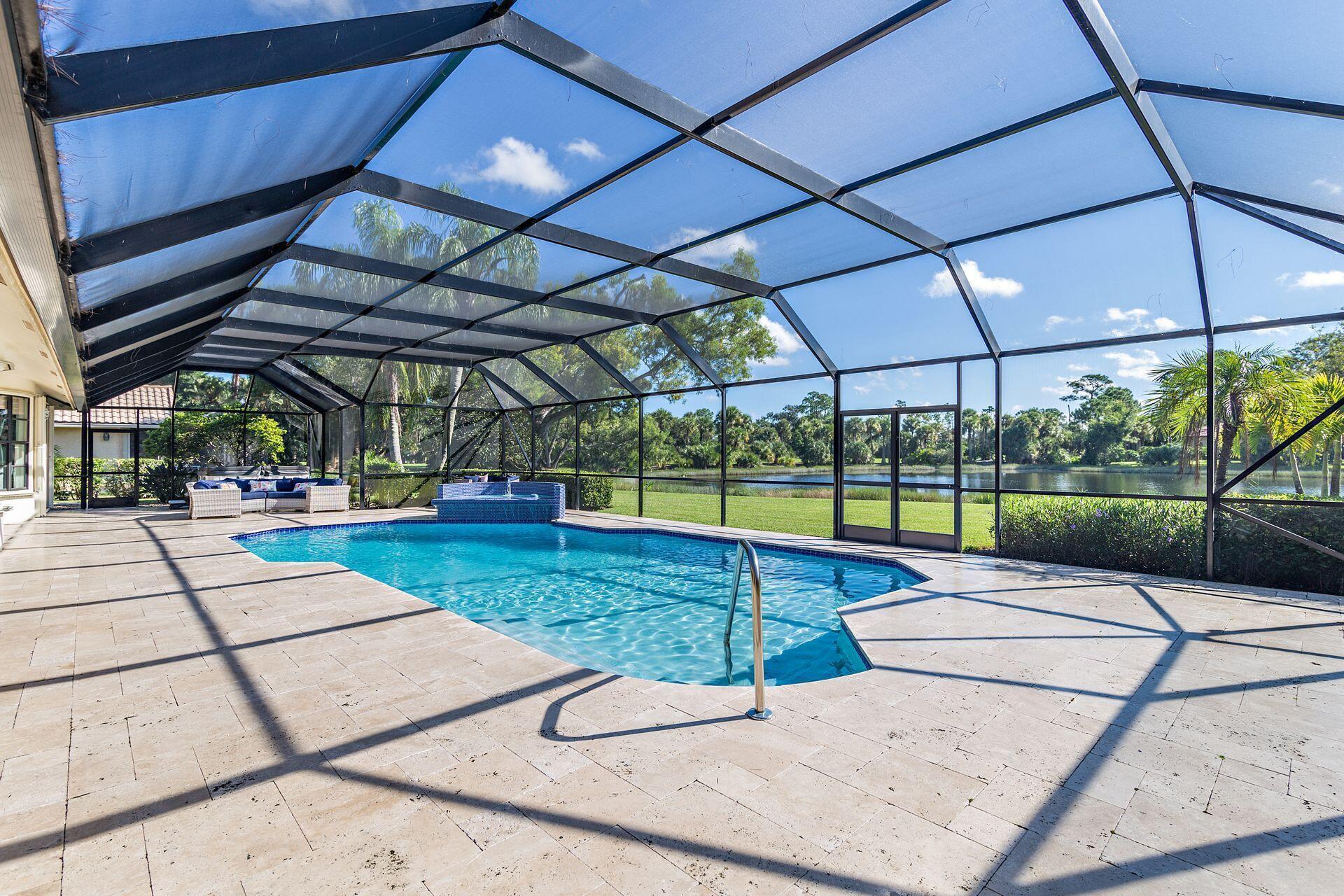 This Breakers West prime lakefront estate home is situated on 0.48 acres of lush scenery with serene and expansive waterfront views from all public rooms. This location overlooks the prestigious Breakers West Enclave community. The moment you enter this exquisite home you will be take in by the natural tranquility. Luxurious and spacious master bedroom with sitting area is the perfect spot to enjoy your morning coffee. Large custom-built master closet and bath with whirlpool tub & separate shower. Travertine flooring surrounds the large, screened in pool, complete with an additional brand-new hot tubRoof replaced 2019.Both ACs replaced 2019 & 2022. Hot water heater replaced 2018.New hot tub.New refrigerator.New washer/dryer.Complete accordion hurricane shutter.