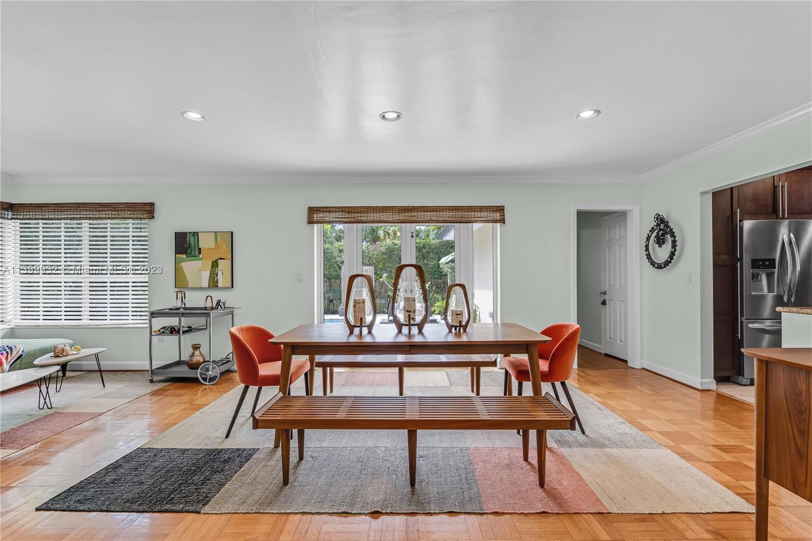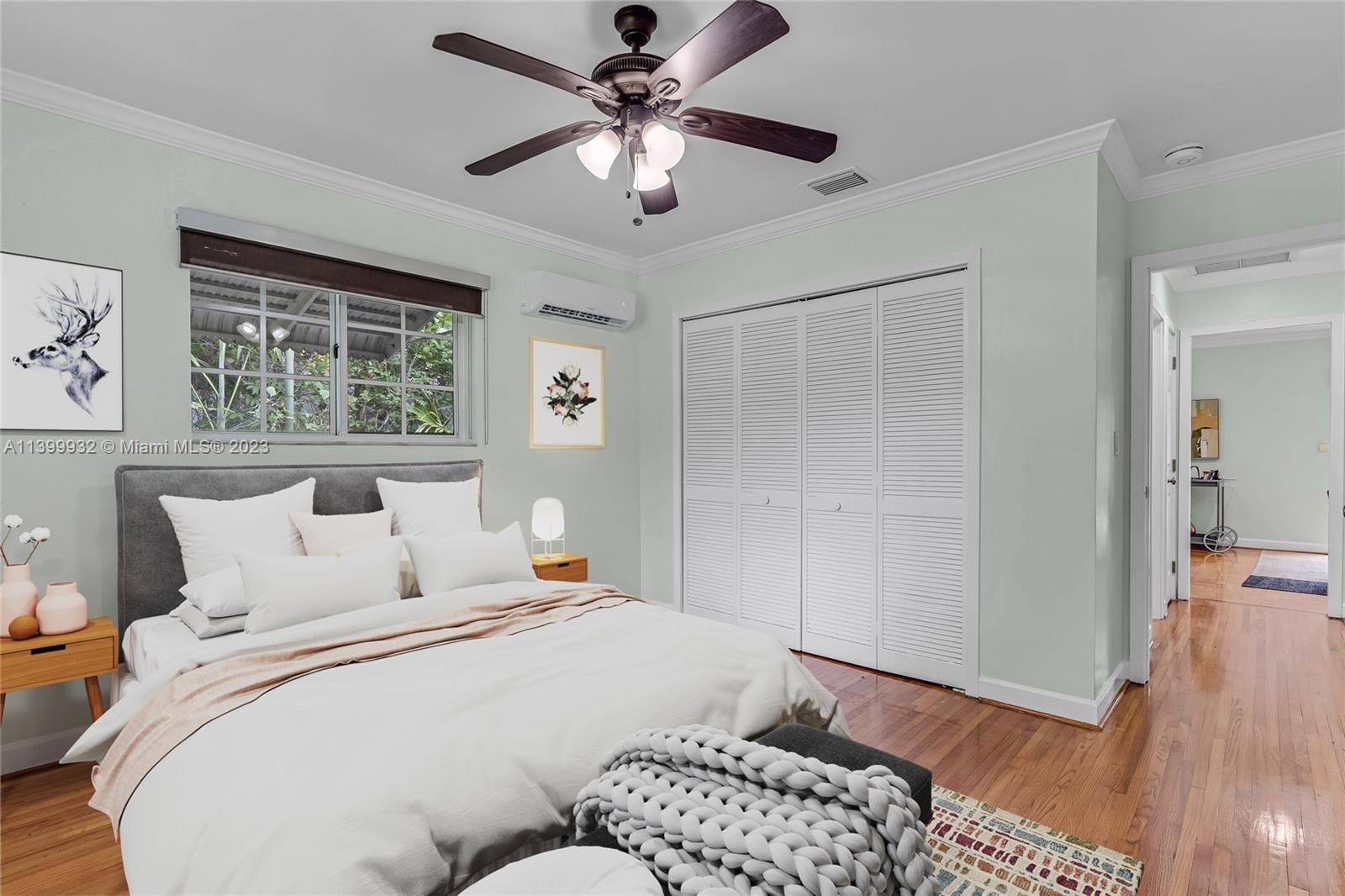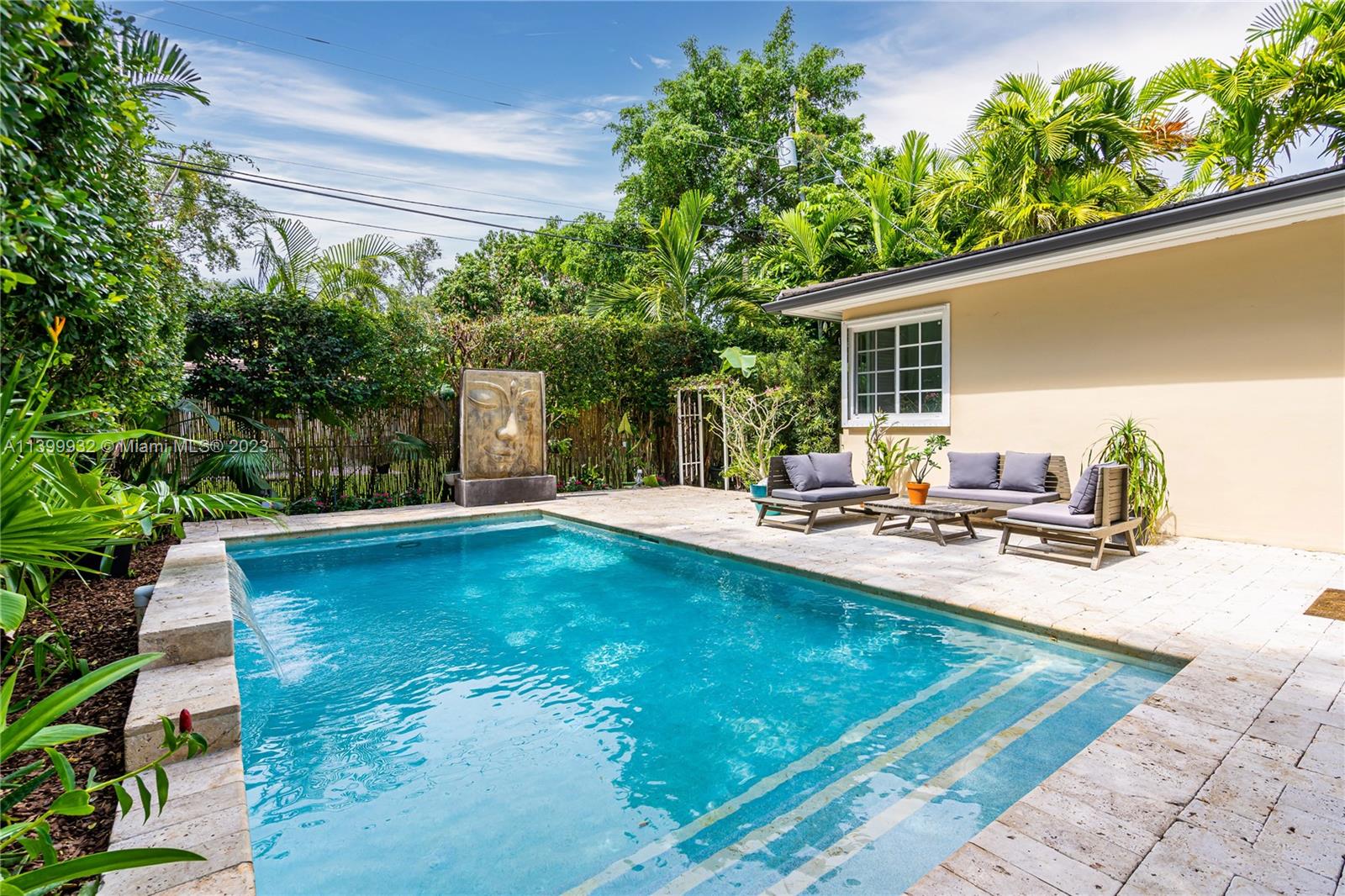 Introducing this move-in ready home in South Coral Gables. This well-maintained property features beautiful wood flooring, a split floor plan with two spacious bedrooms. The primary bedroom has an ensuite bathroom and two large closets. The secondary bedroom has a bathroom adjacent to it. The current owner has done considerable upgrades to the property including a new tile roof, rain gutters, new septic tank, new (2019) plumbing pipes, new pool heater and cooler, new pool pump, full-power generator. They also updated the kitchen with granite / SS appliances, and the bathrooms. Additionally the home was tented in May of 2020. Sparkling pool, mature trees and ample privacy. Beautiful and quiet tree-lined street a short distance to Merrick Park Village, restaurants and specialty markets.