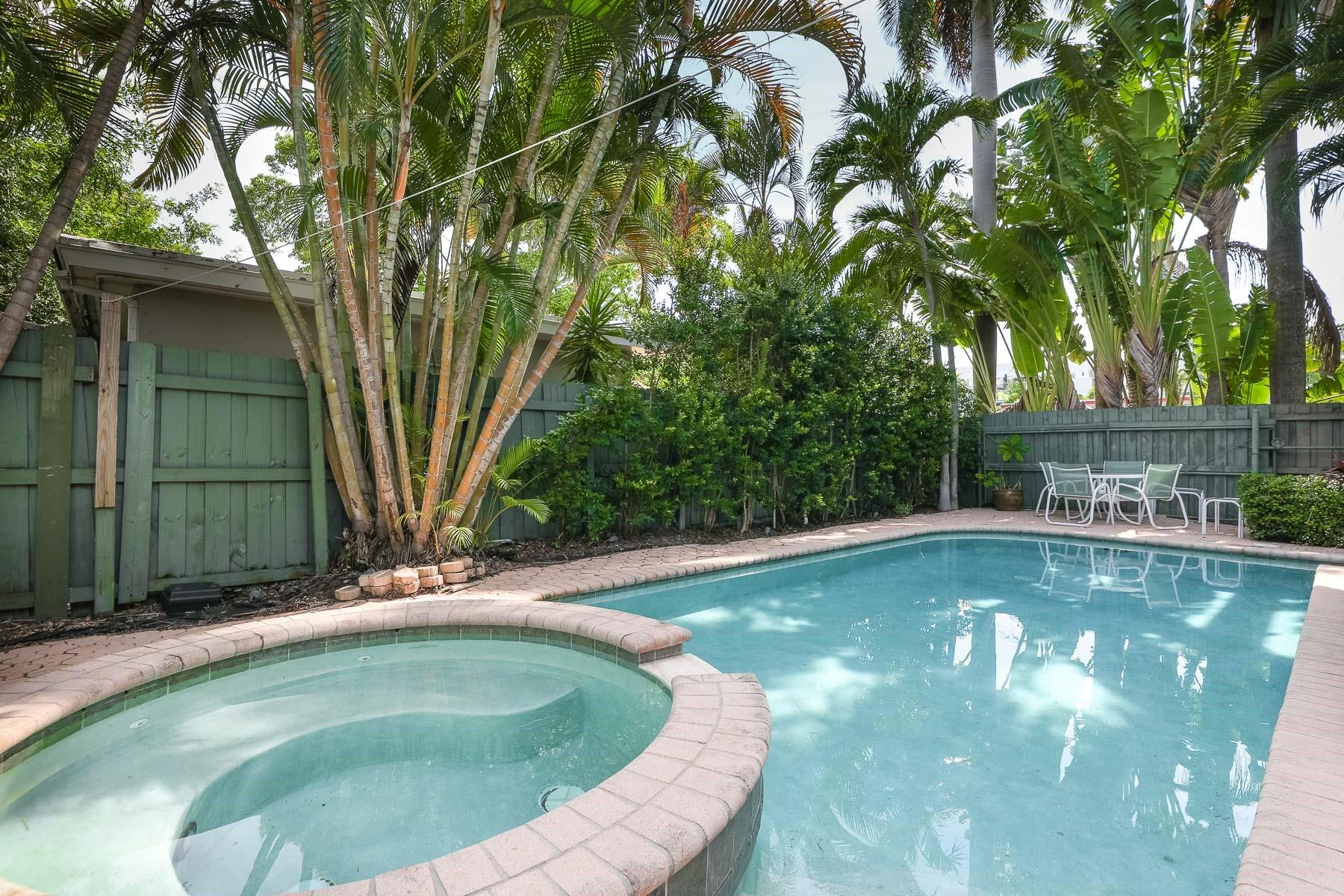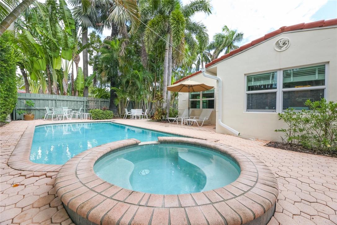 INVESTORS SPECIAL! 3 bed/3 bath Victoria Park pool home (1900 sf) with koi pond (walking distance to beach, restaurants and entertainment) has a decorative fireplace; large master with sitting room; all impact windows and doors; newer AC (3 yr) and water heater (2 yr); all ceramic tile flooring; screened porches; new electric pool heater (1 yr) with waterfall & spa; updated electric; outdoor shower; mature tropical landscaping; interior laundry room; completely fenced for tropical privacy! Great as a rental/Airbnb as two bedrooms have separate entrances. Currently zoned SF but parcel is multi-family with 100' of street frontage - great for development of 4-5 units. GREAT SCHOOLS! HARBORDALE ELEMENTARY!
