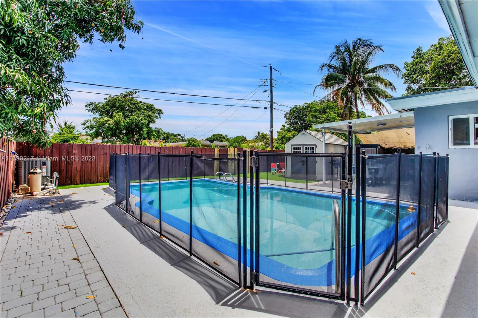 • Exterior Feature:Fence, SecurityHighImpactDoors, OutdoorShower, Porch, Patio, Shed