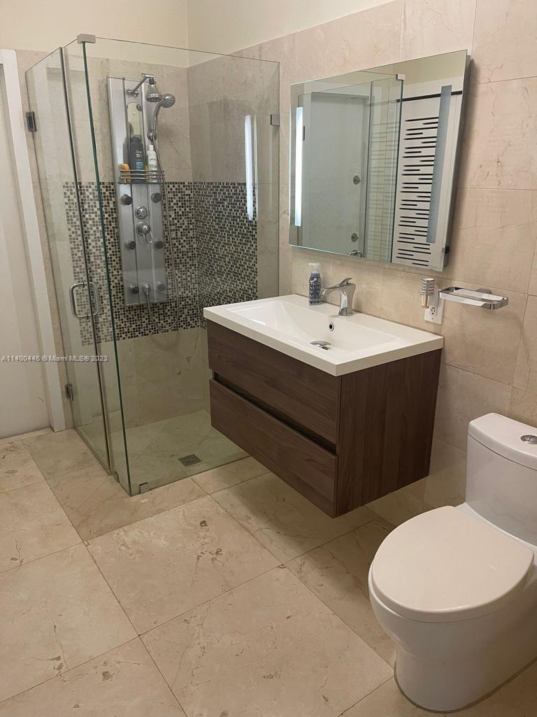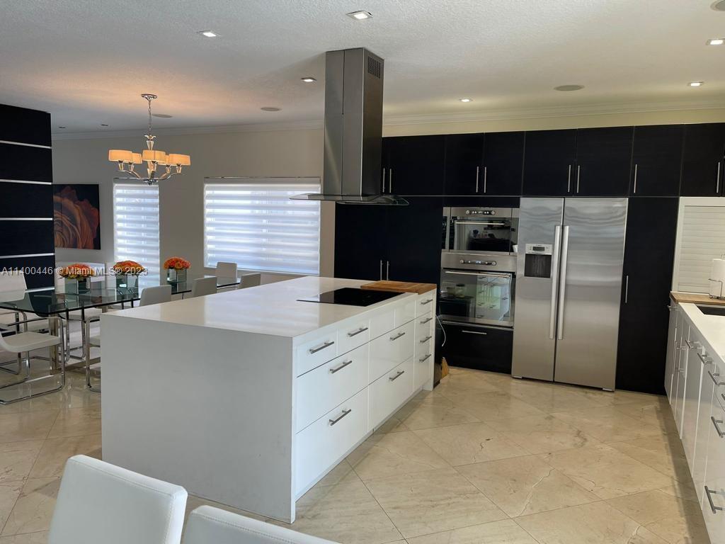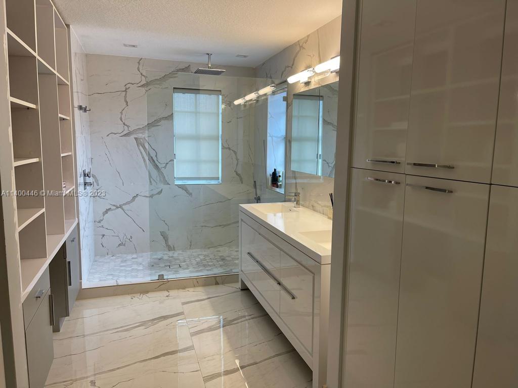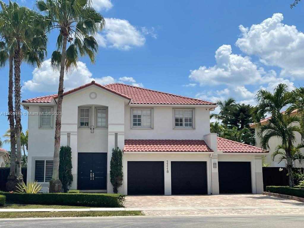Unique single-family home featuring 6 bedrooms / 4 bathrooms. One bedroom downstairs. Huge Master, big closet, ample terrace overlooking the lake. Marble floors, glass and stainless-steel stairs railing. Quartz kitchen tops w/induction glass-cook-top on island. Marble, glass-enclosed, rain shower heads in all bathrooms. California closets style in all bedrooms. Formal dining room for a 10-seat table. 102” TV screen in spacious family room. Fabulous high-end Alfresco brand equipped summer kitchen with bar height Italian white top, covered and overlooking heated pool, 2,900Ft deck (400 floating) with unobstructed lake view. 2-car garage + 6 on driveway. Exterior outlet ready to connect a power generator in case of power outage. Located in the renowned Resort-Style gated community.