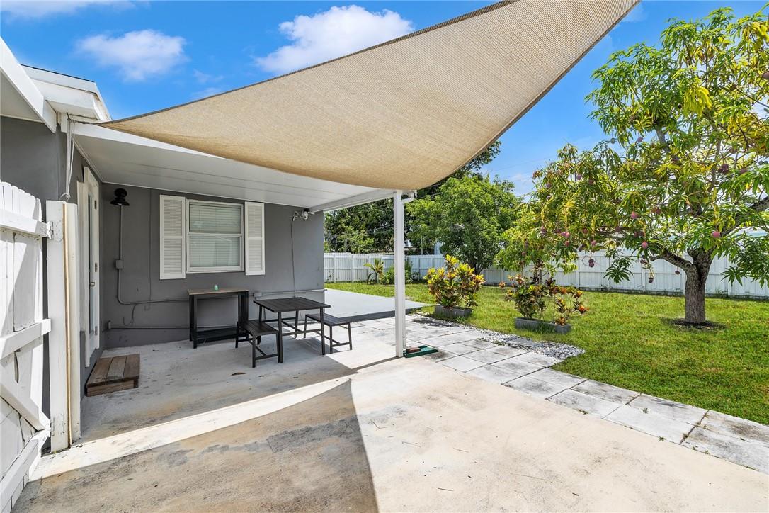 2-bedroom 1-bathroom Single Family Home with porcelain tile floors throughout. updated kitchen, granite counter tops, new roof and HVAC system less than 3 years old, situated on a beautiful, oversized lot in a quiet neighborhood. Conveniently located 2 minutes from US1, Walmart and the beach, 4 car driveway with carport. Slab already poured behind structure to add an efficiency with full bathroom. Nice patio area, fenced in backyard with a lot of space for a pool and use for RV storage. Landscaping and paver work create a private backyard oasis with fantastic mango and avocado trees.