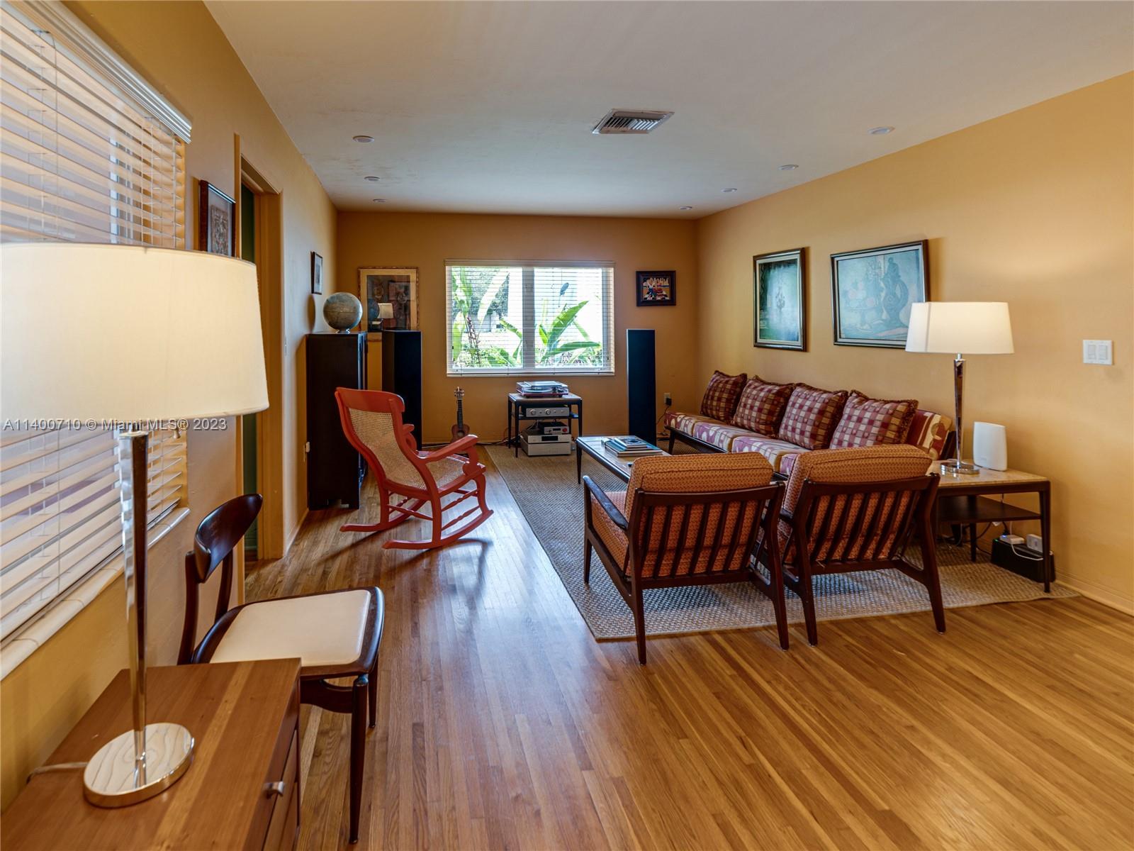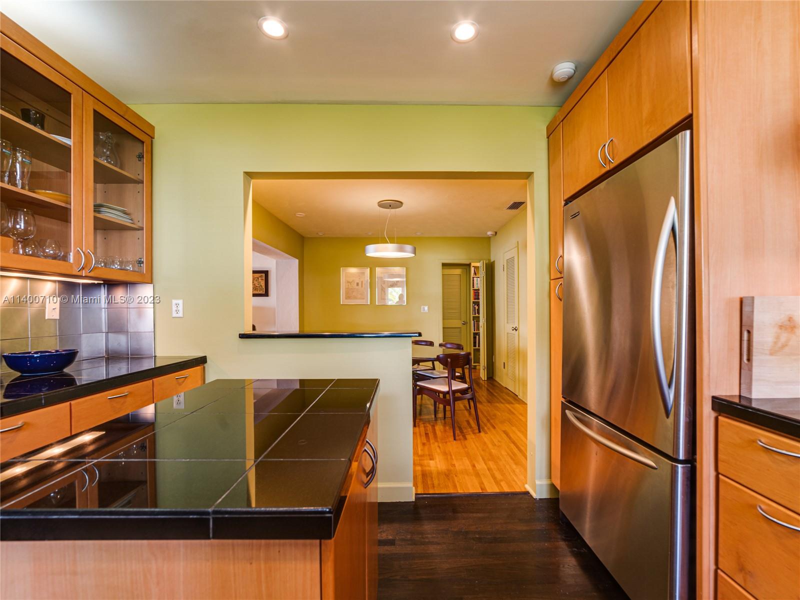 New Listing. Adorable 3 bedroom 2 bath home west of Le Jeune on a tree-lined street within walking distance to the Mile. Located in the Coral Gables Prep school district. Enter the courtyard to the covered porch then into a foyer with the living room. Master bedroom in front. The kitchen opens to the dining room. Two bedrooms and a hall bath beyond. Hardwood floors throughout. Spacious family room with wrap-around porch in the rear and fenced-in yard. Oversized garage. Impact windows and doors. 50 solar panels on the roof provide significant savings on electricity bills. 1,861 adj. sq. ft on a 6,000 ft. lot. The seller would like to close later or lease back through September. Full price or higher expected.