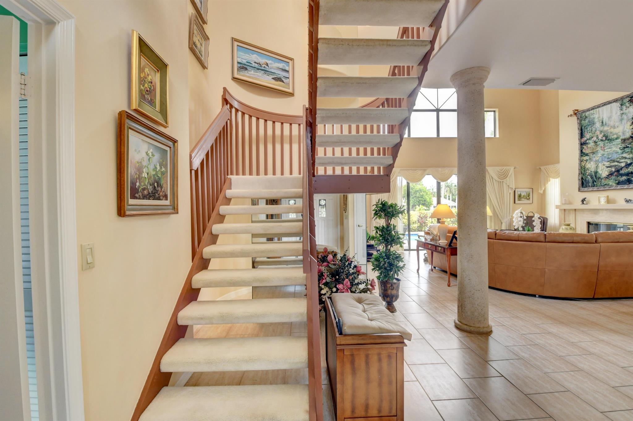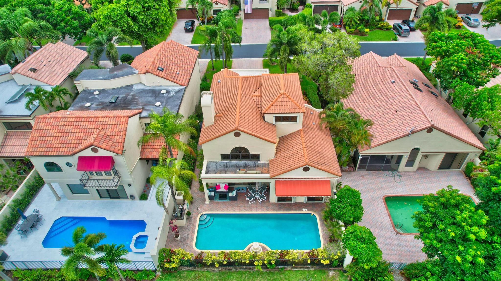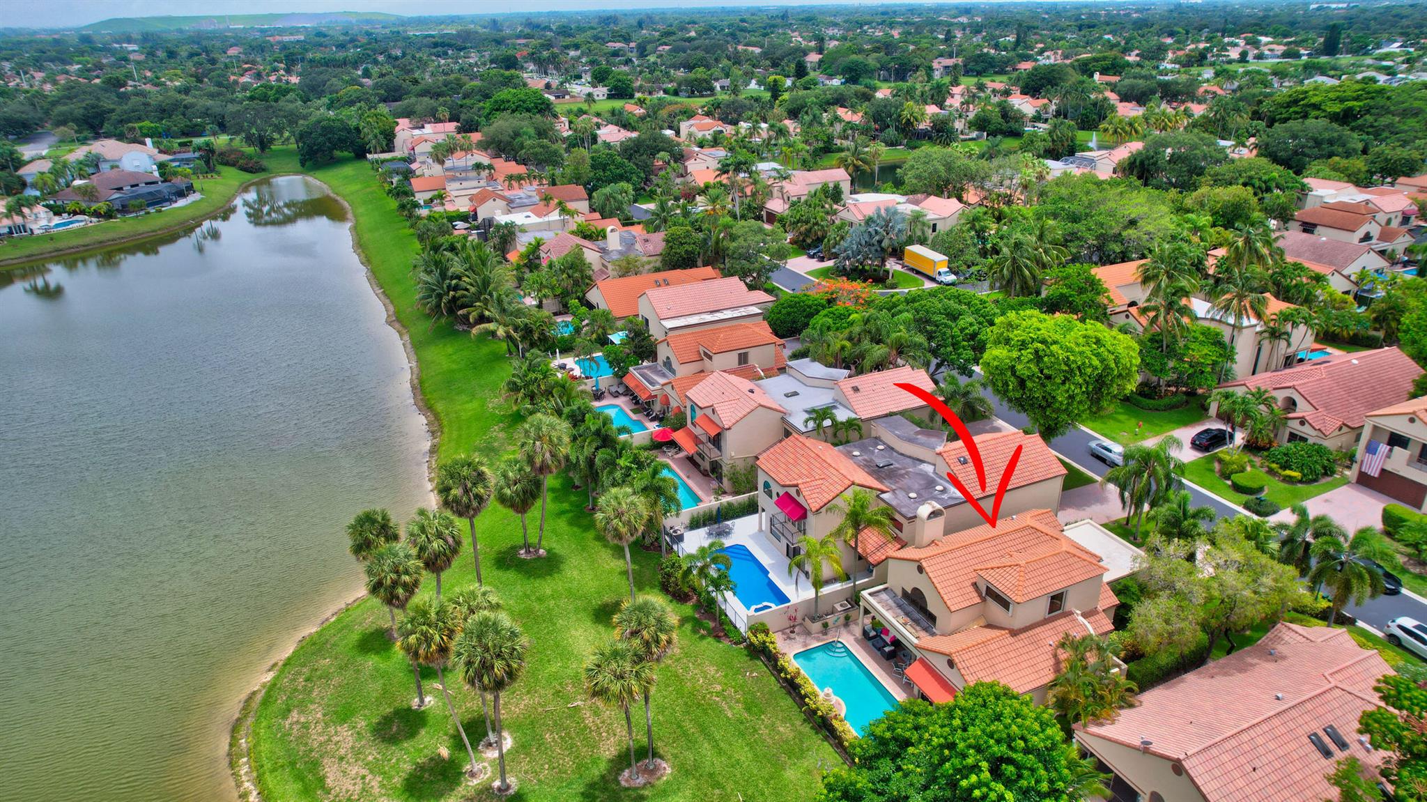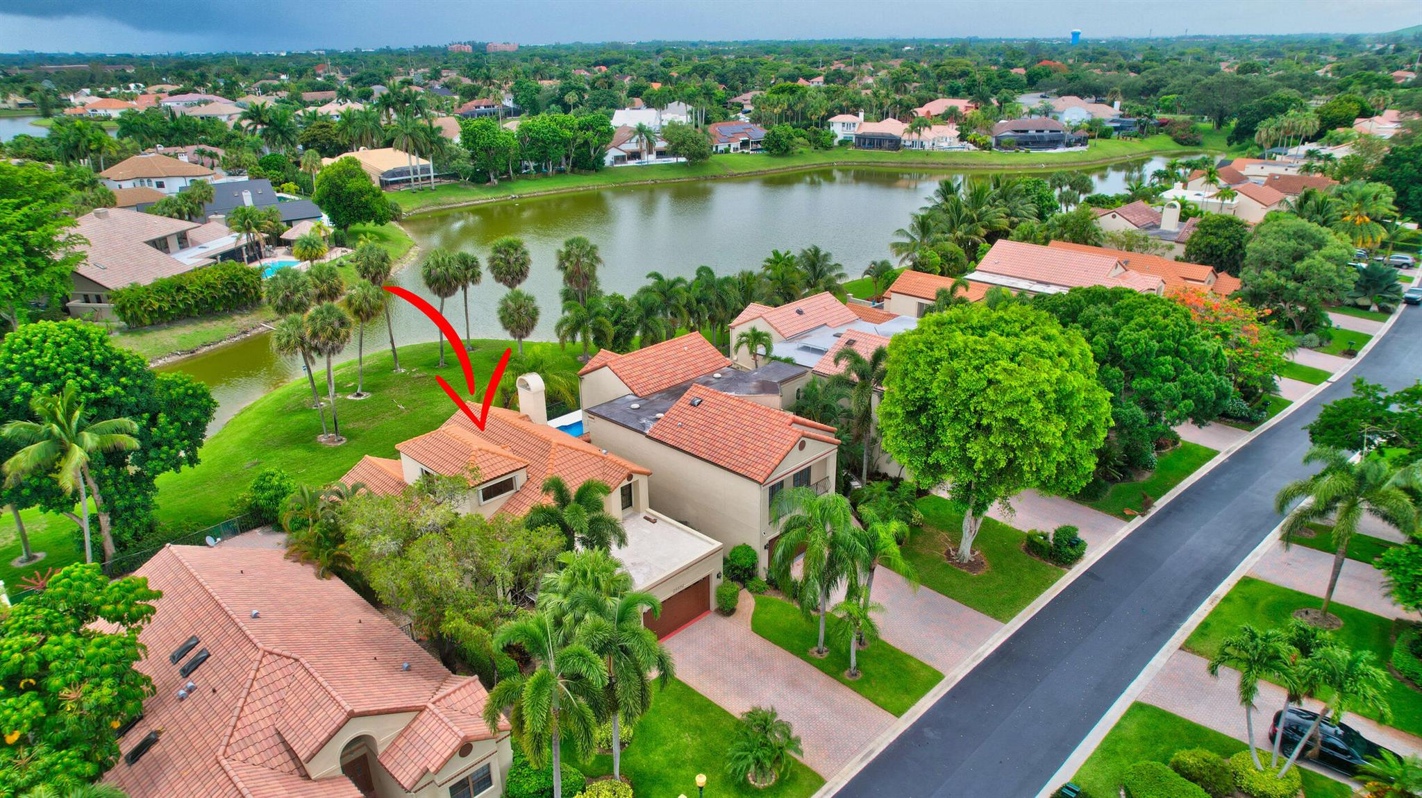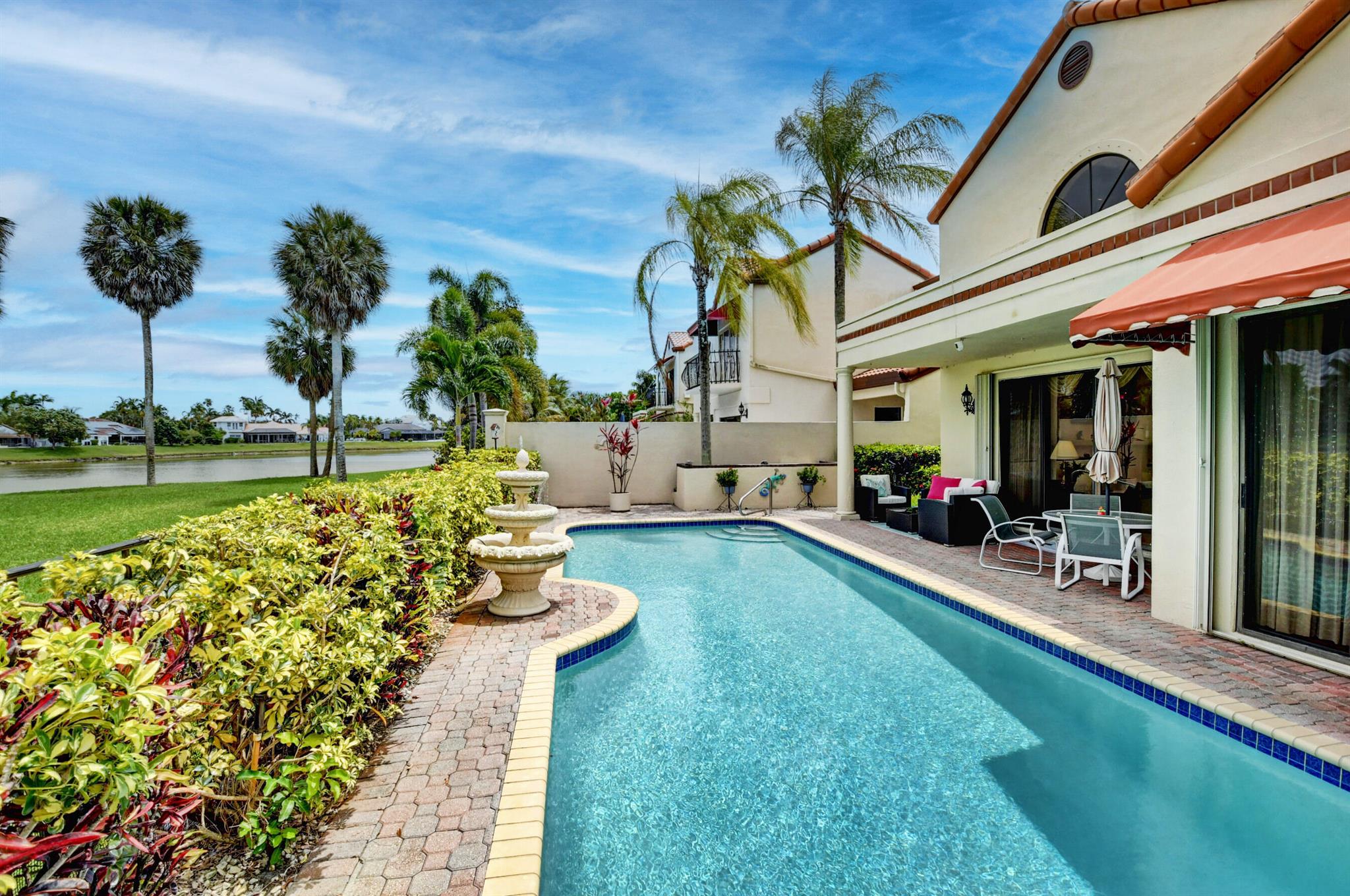 Picture perfect lakefront location for this 2 story home in Valencia at Boca Pointe. Enjoy the beautiful pool and patio area. Spacious living room with high ceilings and fireplace plus formal dining room. Kitchen and baths updated! Master bedroom downstairs with engineered wood floors and large walk in closet. Updated master bath. Upstairs has small loft and two bedrooms that share a bath. Full hurricane protection with both accordion shutters downstairs and impact glass upstairs. Inside A/C replaced in 2017. Pool refinished a year ago. Kitchen has custom wood cabinets, soft close drawers, pull out shelves and stainless steel appliances with granite counters plus breakfast area. Portable A/C in garage included. Tankless water heater 3 years old. Furniture negotiable.