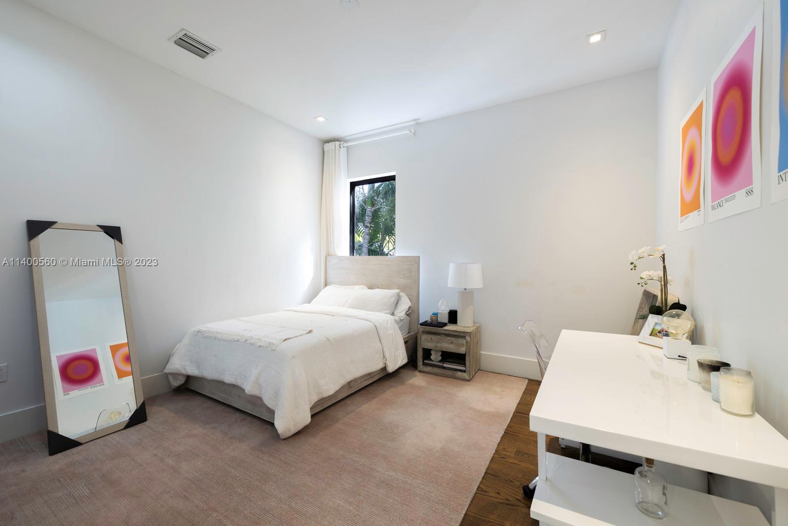 Stunning, Tropical modern home in prestigious North Coconut Grove. Totally gated and located on a quiet tree- canopied street, just a short walk or bike ride to bayfront parks & marinas. Designer finishes throughout including stone & wood flooring, volume ceilings, custom built-ins + chef's kitchen with Italian cabinetry & Subzero/Wolf appliances. Expansive primary suite offers spa-like bath w/soaking tub & frameless glass rain shower. Additional notable features: elevator, impact glass throughout, 48kw whole house generator, floating staircase and large family overlooking tropical pool & covered terrace. Lush landscaping surrounds the home and the rooftop terrace offers panoramic views of the Grove & beyond. Minutes to downtown, MIA, Coral Gables, Key Biscayne & the Beaches.