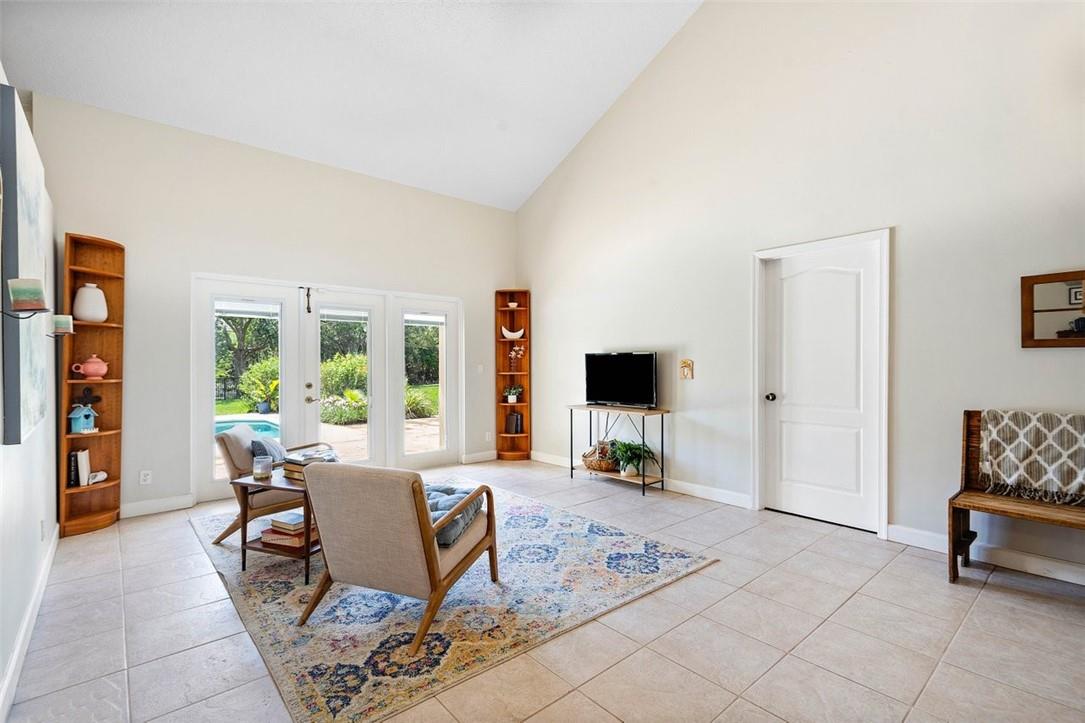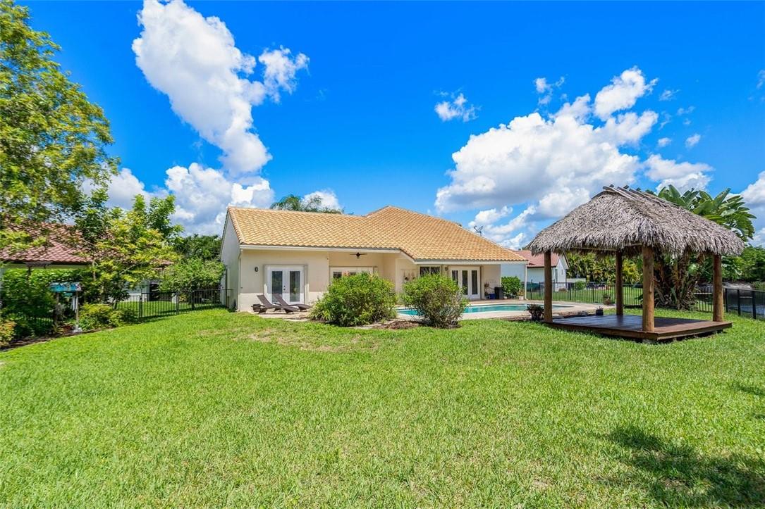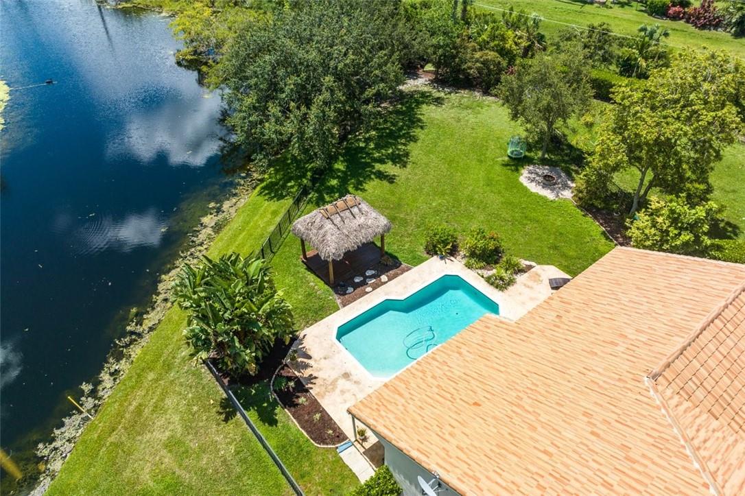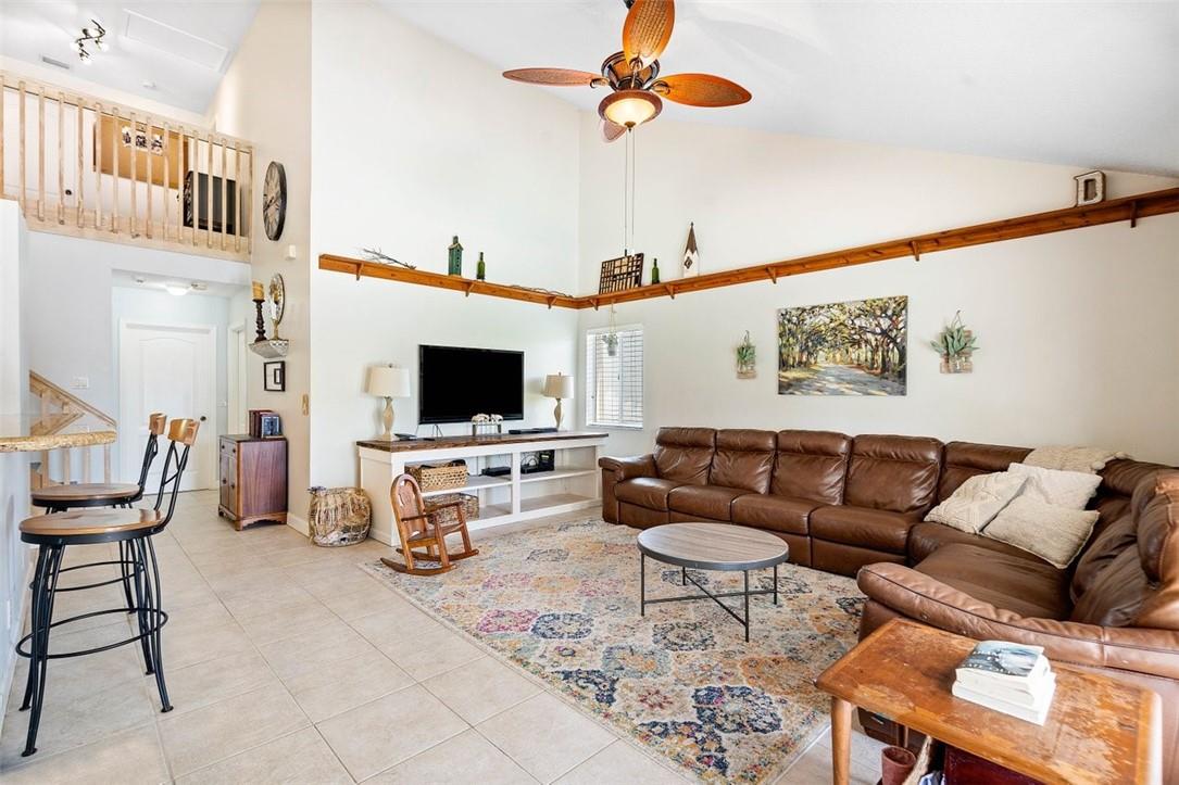 From the paver drive and walkway enter this charming two story, 4 bedroom, 3 bath home located in the desirable BROOKSIDE neighborhood. This home boasts a 1/3 acre site featuring an open pool and patio, tiki hut and firepit in a large fenced backyard with long water views facing east. Access the rear from french doors installed across the back of the home. The interior has volume ceilings, ceramic tile and wood floors, updated kitchen with granite counters and backsplash and updated main bathroom. The open stairwell takes you to a loft and two bedrooms with an adjoining bath. Walk to Betti Stradling sports park that includes a playground and water feature. The neighborhood has excellent schools and easy access to major thoroughfares.