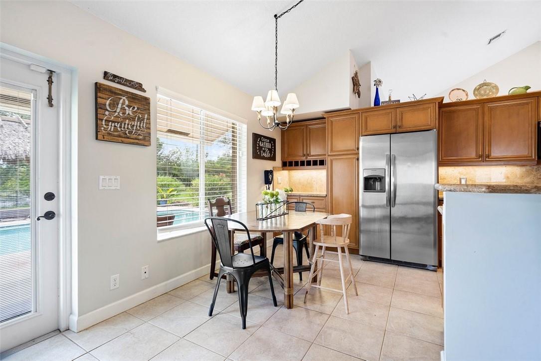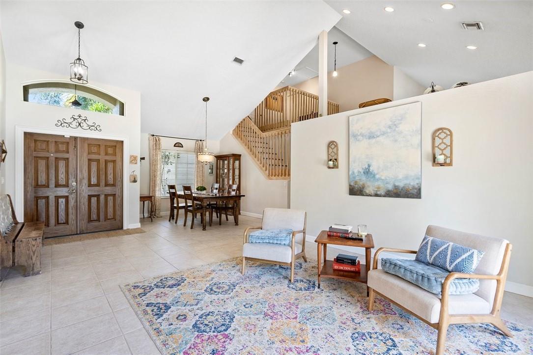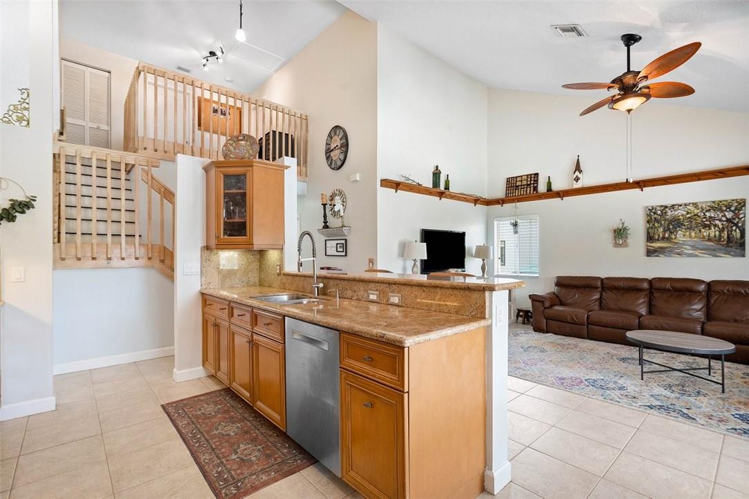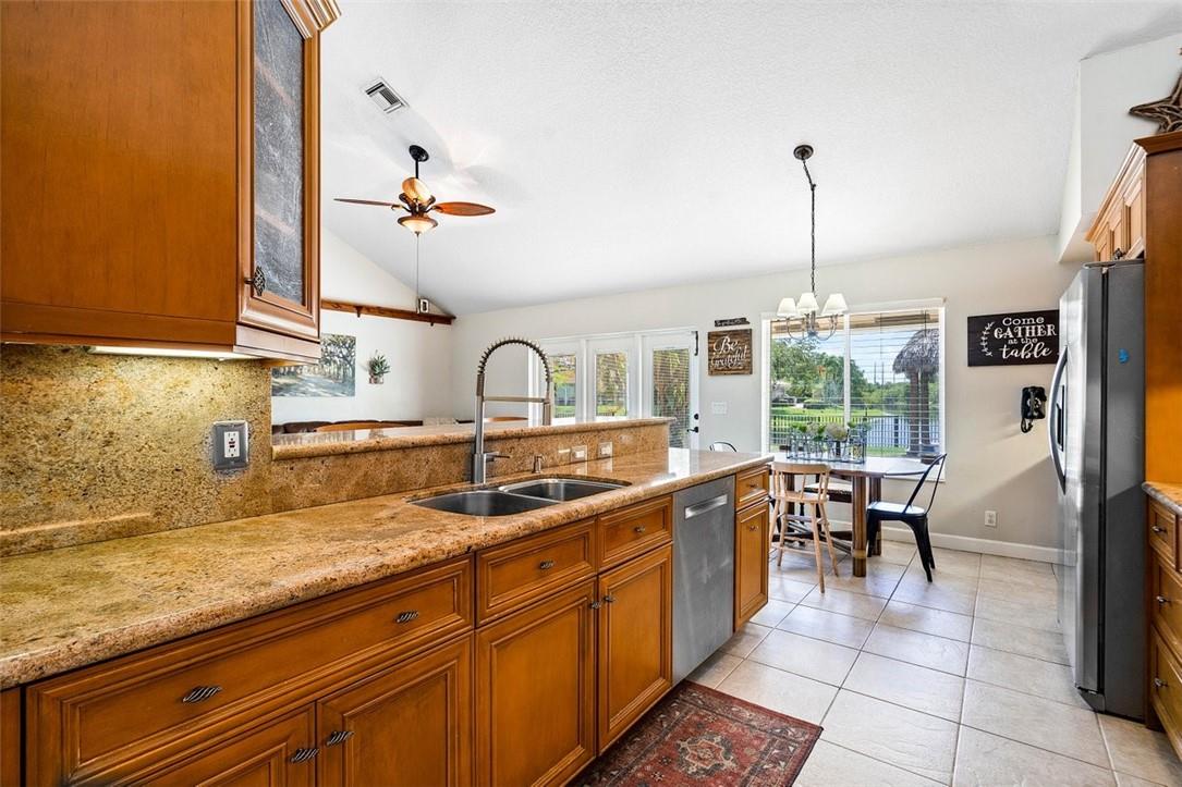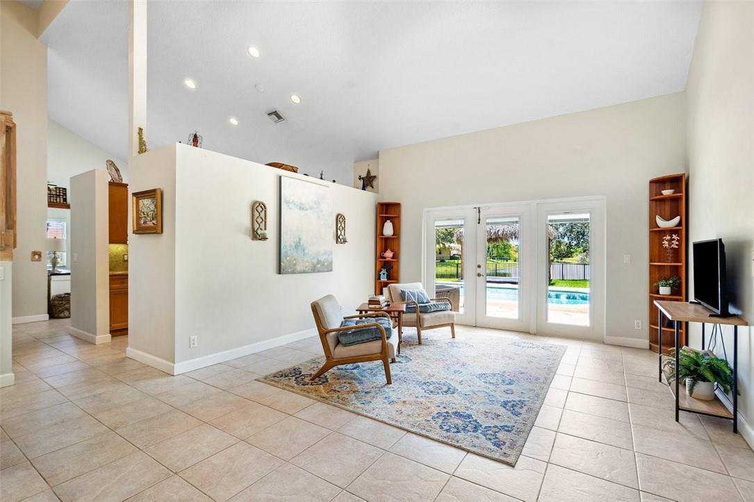 From the paver drive and walkway enter this charming two story, 4 bedroom, 3 bath home located in the desirable BROOKSIDE neighborhood. This home boasts a 1/3 acre site featuring an open pool and patio, tiki hut and firepit in a large fenced backyard with long water views facing east. Access the rear from french doors installed across the back of the home. The interior has volume ceilings, ceramic tile and wood floors, updated kitchen with granite counters and backsplash and updated main bathroom. The open stairwell takes you to a loft and two bedrooms with an adjoining bath. Walk to Betti Stradling sports park that includes a playground and water feature. The neighborhood has excellent schools and easy access to major thoroughfares.