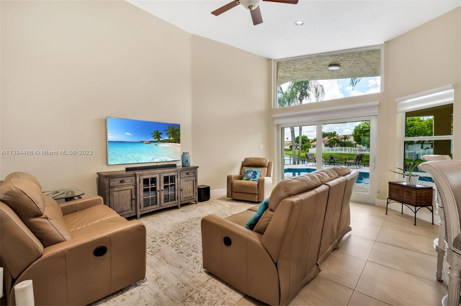 BEAUTIFUL & SPACIOUS WATERFRONT HOME. 4 BEDROOM W/ OFFICE/DEN & 3 FULL BATHS. TOTALLY & IMPRESSIVELY UPDATED. FEATURES ALL HURRICANE IMPACT GLASS AND DOORS EXCEPT FOR FRONT DOOR WHICH HAS HURRICANE PROTECTION, HURRICANE IMPACT GARAGE DOOR, GORGEOUS KITCHEN W ISLAND & LARGE PANTRY, 3 BATHROOMS NEWLY UPDATED, NEUTRAL TILE FLOORING, VOLUME CEILINGS & PLANTATION SHUTTERS THROUGHOUT. LARGE MASTER SUITE WITH SITTING & EXERCISE AREA & TWO LARGE BUILT OUT WALK IN CLOSETS. NEWER WASHER & DRYER. ENJOY SOUTH FLORIDA LIVING WITH FABULOUS & UPDATED POOL WITH NEWLY EXTENDED TRAVERTINE MARBLE PATIO OVERLOOKING LAKE. SPRINKLER WATER FROM LAKE. ROOF REPLACED IN 2008. LOW HOA. LOCATED ON A PICTURESQUE TREE LINED STREET IN DESIRABLE JACARANDA LAKES.