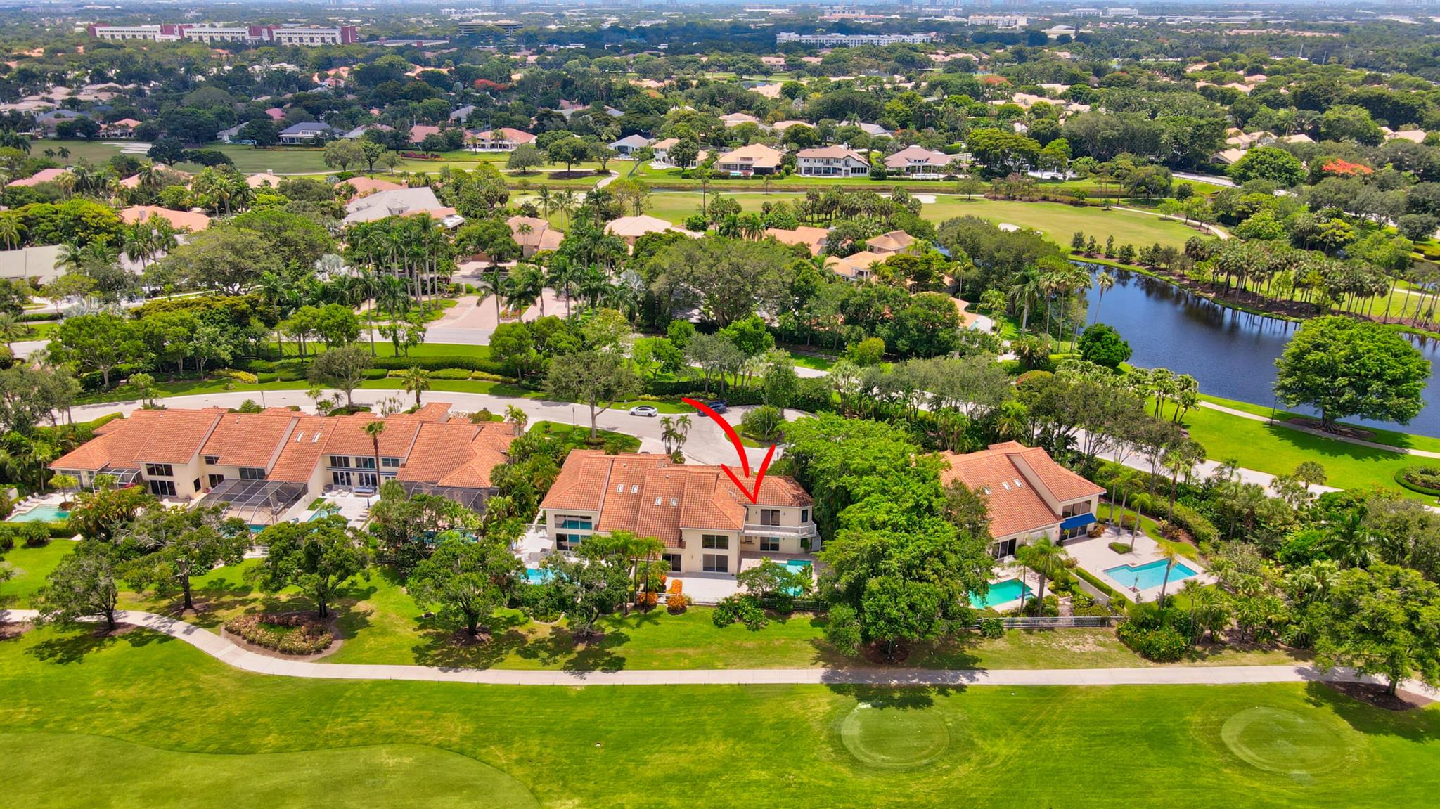 Located at the end of a cul-de-sac in the Cloisters, this huge 6 bedroom 7 bath townhome is situated on a spectacular lot overlooking the Broken Sound Club Golf Course. With over 4700 Sqft this home was designed with 4 bedrooms + loft in the main house & attached guest house next door with 2 bedrooms & 2 baths. The main house primary bedroom is on the main level with his & hers separate bathrooms and walk in closet. Your family & friends have their own private quarters upstairs with 2 beds, 2 baths and a huge loft diving the rooms + the guest house next door. Enjoy endless sunsets on the golf course from the west exposure backyard while relaxing in your private pool. This home features a full house generator & protected by hurricane accordion shutters. This property is one of a kind!