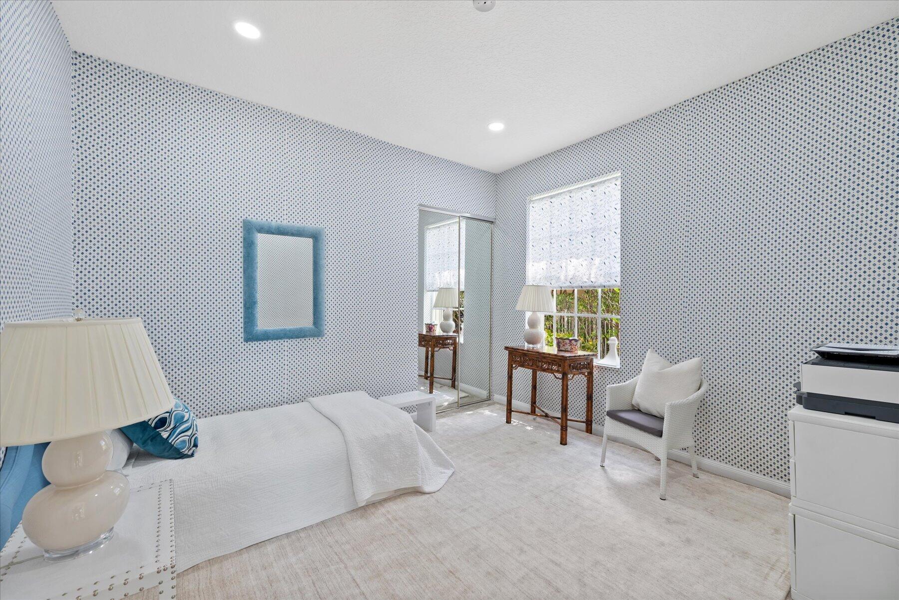 Highly sought-after Flagler Manor home in Breakers West is now available and with a lake view too! Great value--4 BED, 3.5 BATH, 3-CAR GARAGE on .25 acre corner lot with long lake view. New Roof in 2018. Very open and flexible floor plan. Tile floors in Main Living Area and new wood floors in Primary Bedroom. Spacious open patio surrounded by lovely trees or room to add your own pool. Corner lot adjoins landscaped common area for addition privacy. Recently painted exterior and new exterior lighting. Complete accordion shutters for windows/doors.Breakers West is one of West Palm Beach's premier guard gated club communities & is just 20 mins to downtown WPB's Financial center, Kravis Center, The Square, PBI as well as Palm Beach, Wellington equestrian amenities and great schools.