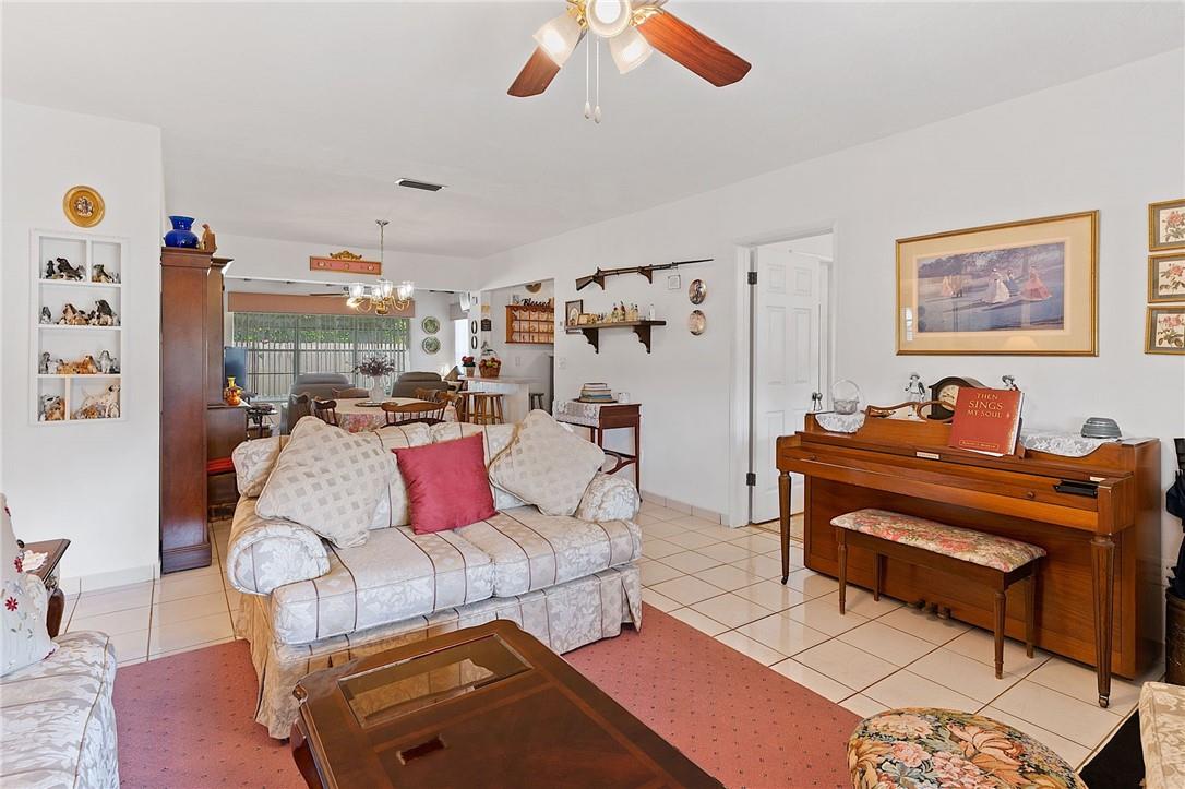 Welcome your buyers to this impeccably maintained home in west Hollywood. Pride of ownership is evident as soon as you pull up to the home. Lush landscaping abounds in both the front and back yard. As you step into the home the pride of ownership is evident. This home boasts of a new roof and new AC. Look up and notice the beautiful custom hardwood ceiling and beams in the family room. This home has tile floors throughout the living area and wood floors in the primary suite. Both bathrooms have been recently remodeled. Nice sized laundry room with a newer washer & dryer, and a screened back patio are both attractive bonuses to this lovely home. The backyard is fenced for your pets as well. This home is priced to sell and will not last. Hurry and bring your buyers before it is too late.