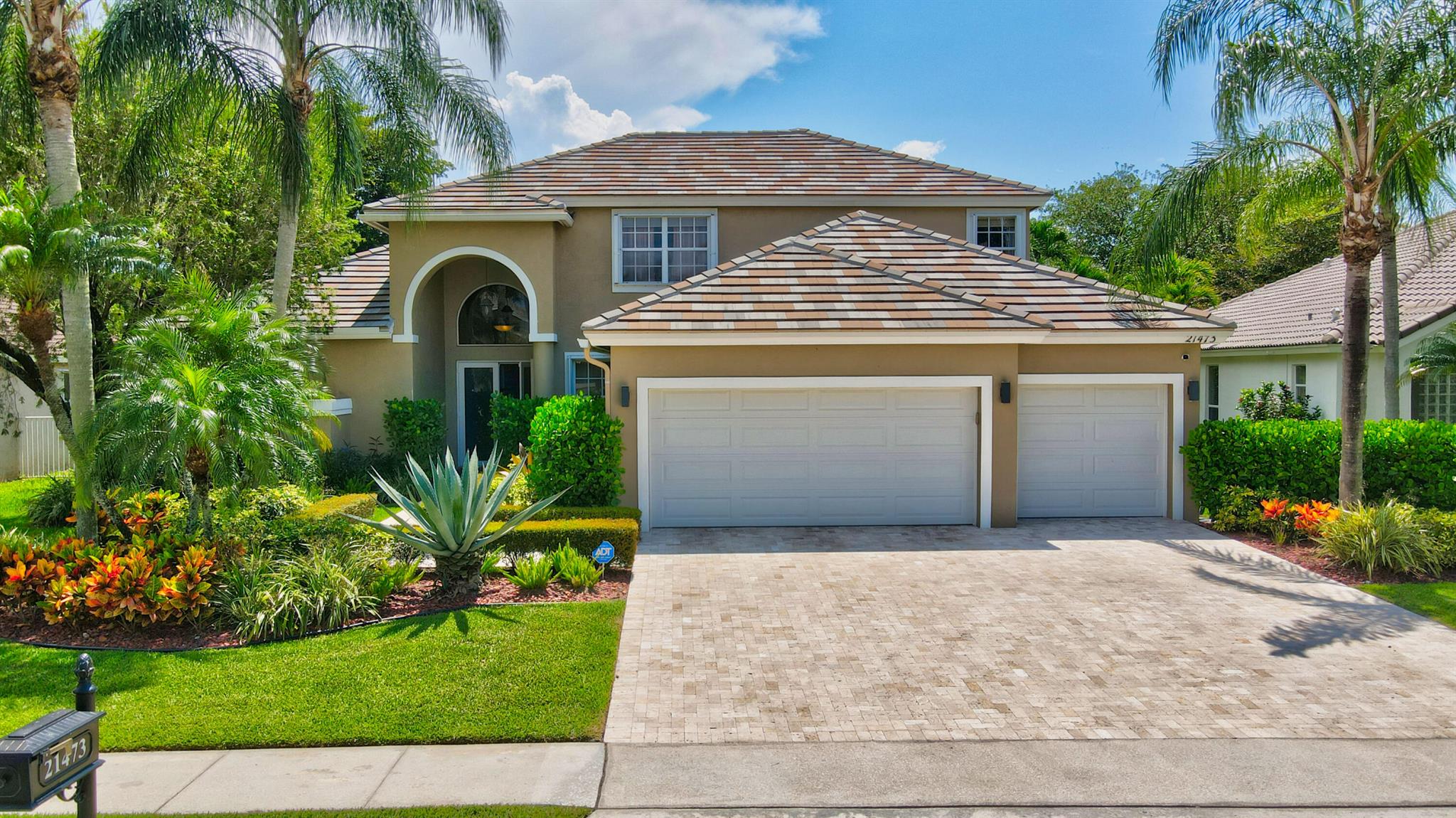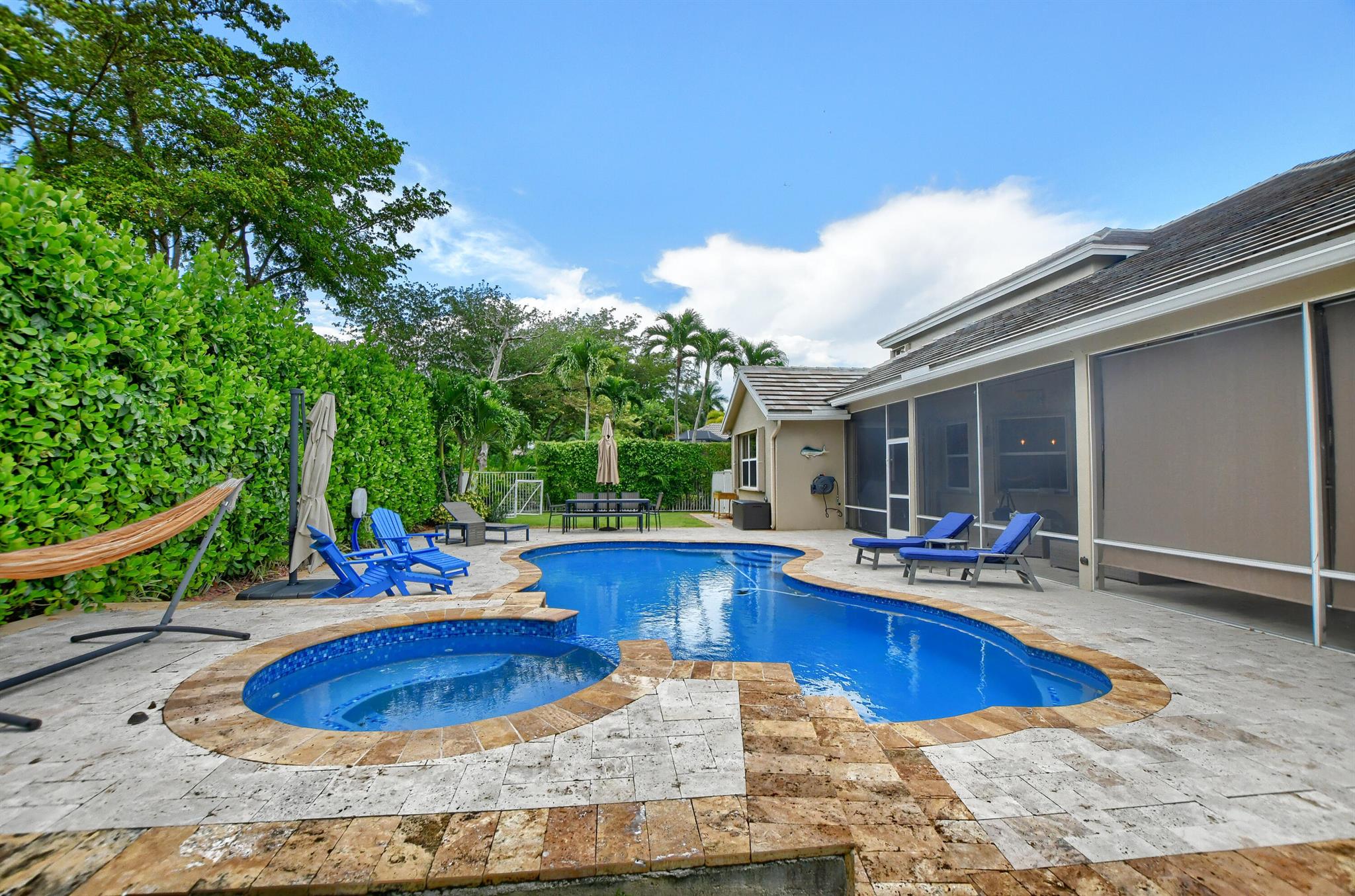Welcome to this gorgeous move-in ready, upgraded home in the highly coveted community of Boca Falls. New roof in 2019 and complete storm protection (combo high impact/accordion shutters). Your oasis awaits with over 3,100 liv sf, 5 beds, 3 baths, 3 car garage, oversized lot, large screened in patio and private resort-style pool and spa. Salt chlorinated pool with gas heater (100 gal propane tank). High end kitchen appliances including a separate built in drink refrigerator. Primary bedroom and 2nd bedroom on the first floor with 3 bedrooms upstairs. This home has two HVACs, one is a new Bosch and the other is just a few years old. The oversized garage has epoxy flooring and is always nice and cool with a it's own mini split AC and insulated door. Lush landscaping throughout the property.