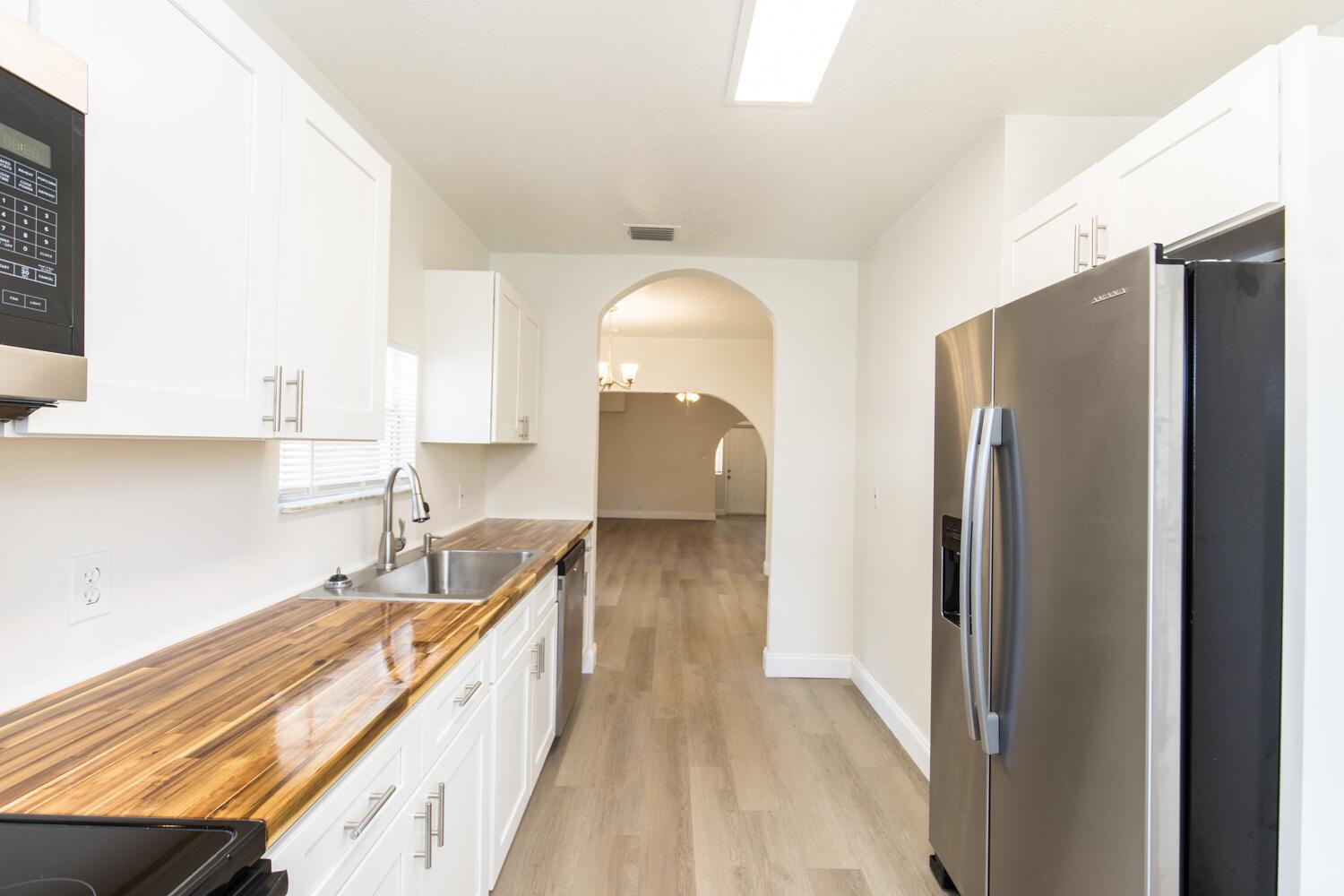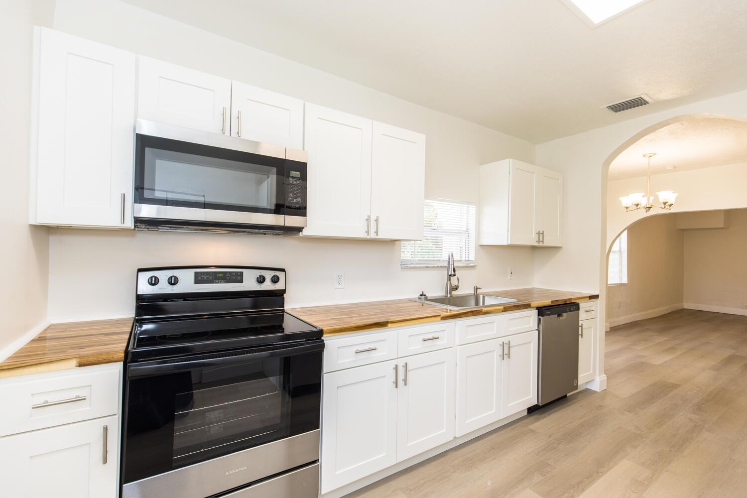 Totally remodeled 3/2 with new kitchen cabinets, butcher block countertops and stainless steel appliances. Remodeled bathrooms, flooring, light fixtures & ceiling fans. Brand new AC, electrical wiring & Electric panel. New Paint inside & out. Detached 20' x 24' aluminum office, guest house, hobby room or workshop. New roof in 2023. 10' x 10' wood deck in the backyard. New landscaping . Plenty of parking for boats, trailers etc with two driveways.