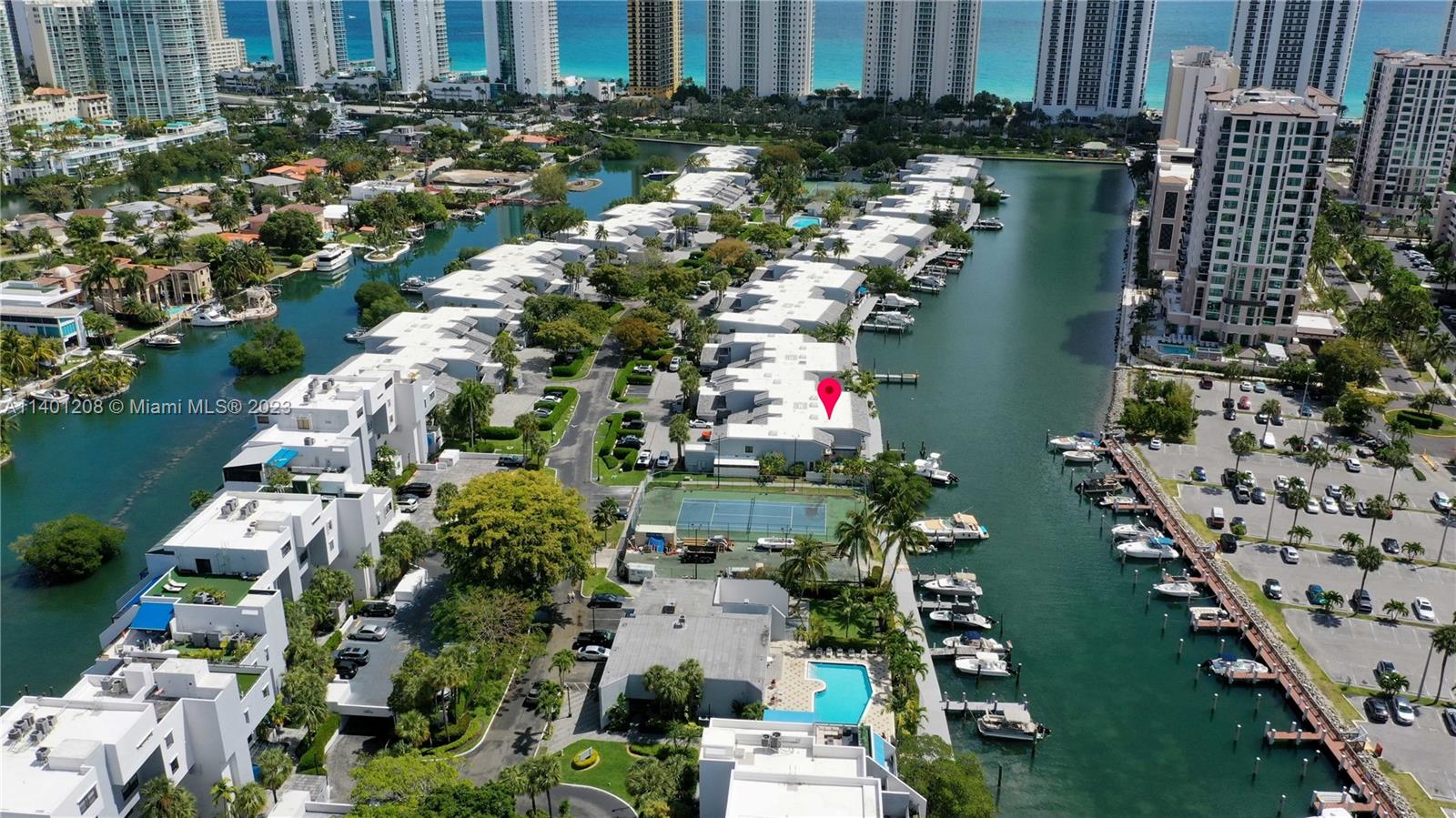 AMAZING WATERFRONT PROPERTY ON THE EXCLUSIVE ISLAND OF POINCIANA, LOCATED IN THE FAMOUS CITY OF SUNNY ISLES BEACH, AKA THE FLORIDA RIVIERA, SURROUNDED BY LUXURIOUS MILLION DOLLARS WATERFRONT PROPERTIES, THIS BEAUTIFUL TOWNHOME HAS 3 BEDROOMS, 2.5 BATHROOMS, AND 1 CAR GARAGE. THE PROPERTY HAS ITALIAN-STYLE BATHROOMS WITH PORCELAIN FLOORS THROUGHOUT, HURRICANE SHUTTERS, AND MORE GREAT WATER VIEWS FROM UNIT, NO FIXED BRIDGES, AND OCEAN ACCESS IS ONLY MINUTES AWAY. WALK ACROSS THE STREET TO THE BEAUTIFUL BEACH. PRIVATE ISLAND WITH 24HRS SECURITY, TWO POOLS, AND 4 TENNIS COURTS. WITHIN MINUTES TO FAMOUS RESTAURANTS, BAL HARBOUR SHOPS AND AVENTURA MALL.