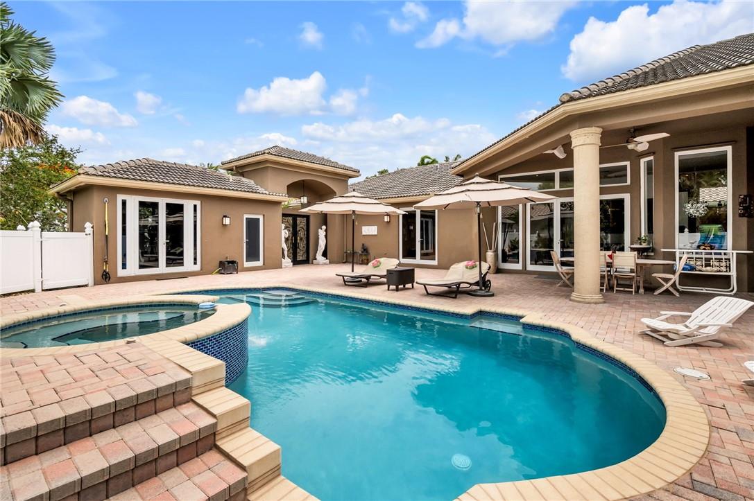 WANT A TRULY MOVE IN HOME? PICTURES SHOW WHY. TRULY A 5/3 W/ONE A GUEST SUITE W/KITCHENETTE/FULL BATH. REALLY BEAUTIFUL/HUGE 54X42 POOL/SPA/PAVER PATIO W/NIGHT LIGHTING & ROOFED AREA. CUSTOM REMODELED KITCHEN W/QUARTZ COUNTERS,VIKING FRIG/DISHWASHER,CUSTOM EUROPEAN CABINETS+42" CABINETS+11 PULL OUT DEEP DRAWERS,140 BOTTLE WINE FRIG,BIG WALKIN PANTRY,3 SEAT COUNTER OPEN TO FAMILY ROOM/BREAKFAST AREA. ALL GREAT VIEW OF POOL/PATIO. DINING ROOM 2 STEPS FROM KITCHEN & LIVING ROOM-BOTH WIDE VIEW VERY PRIVATE BIG BACK YARD. MASTER W/HARDWOOD FLOORS/UPGRADED BATH/2 DOOR VIEW OF POOL&PATIO/2 WALKINS W/MANY SHELVES. ALL HOME IMPACT/ACCORDIONS WINDOWS/DOORS. 24X24 MARBLE FLOORS. ALL KNOCK DOWN WALLS/CEILINGS. LAMINATE BEDROOMS. 4TH BDRM MARBLE FLOOR. ASK YOUR AGENT FOR 4 PAGE EXTRA INFO FULL DETAILS.
