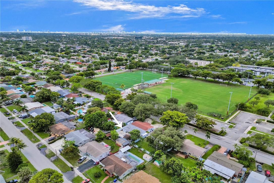 Welcome to this move in ready gem in Hollywood! This 4 bedroom, 3 bath home features many valuable upgrades such as full impact windows & doors, tankless Water Heater (2022), Newer Roof (2017) and Accessory building. The kitchen features granite countertops and stainless steel appliances, 2 pantries w/plenty of storage . Terrazzo floors, recessed lighting, separate laundry room w/Newer Samsung Washer & Dryer, 2 storage rooms, newer aluminum fence, mango tree and large circular driveway. Located directly across from the community center that features an amphitheater, skate park, playground, sports fields, and plenty of parking. NO HOA. This is an incredible opportunity at this price - do not miss it!