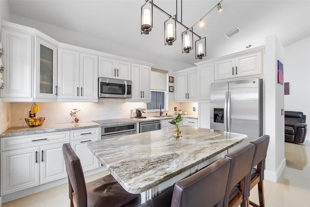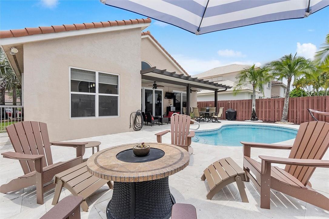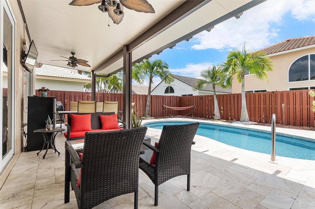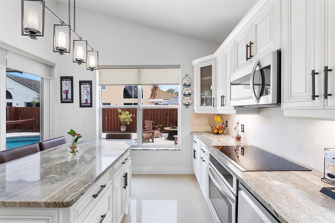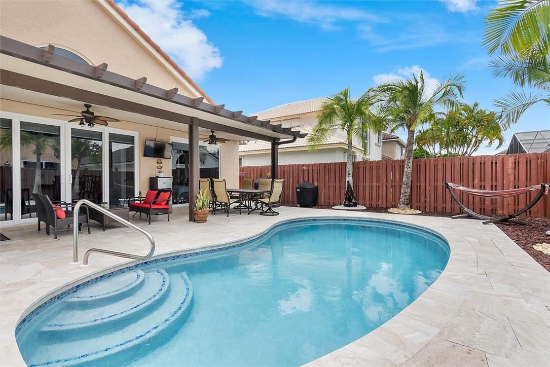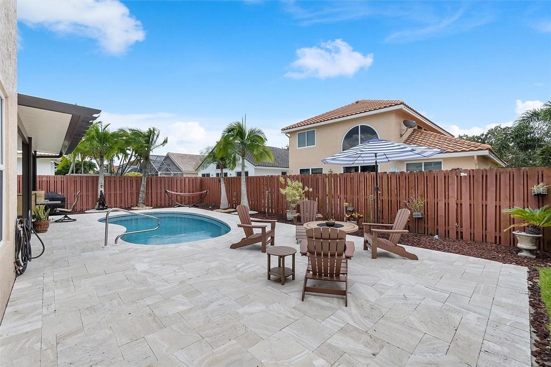 Turnkey home with over 100K in upgrades… The home showcases a fully remodeled kitchen and bathrooms. The kitchen with upgraded appliances, ample counter space, and stylish cabinetry. The bathrooms’ tasteful finishes create a spa-like atmosphere, including a Roman tub and separate shower in the master bathroom. The stunning outdoor patio area underwent renovation in 2021. The covered terrace with gorgeous Travertine patio tile floors adds a touch of sophistication to the outdoor space. The centerpiece is the freeform pool making this backyard the perfect spot for hosting unforgettable gatherings. Some impressive features make this home a standout choice. A newer roof, a paved driveway, solar pool heater, high impact windows, hurricane garage door, and New A/C.
