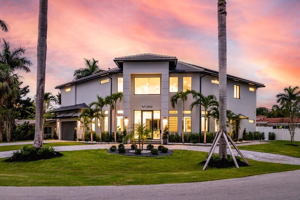 Brand New Construction 5BR/5BA home on a 10,000 SF Corner Lot & less than a mile walk to Fort Lauderdale's A rated Public School, Bayview Elementary. Great location across from waterfront homes. Open and volume floorplan w. 20ft ceilings as you enter, views straight through to the back yard, 2nd story entertainers loft w/wet bar. Gourmet kitchen w. Café Appliances, wine fridge and two-tone cabinetry. Expansive primary suite features private balcony, spa-like shower, and large walk-in closet. Saltwater pool and lush landscaping. Spacious 2 car garage with separate bonus garage for golf cart or storage. Tons of parking with circle drive and garages. Minutes to beaches, shopping and dining. 1 Mile to Galleria Mall, 1.5 Miles to the Ocean, under 2 Miles to Las Olas Night Life and Shopping.