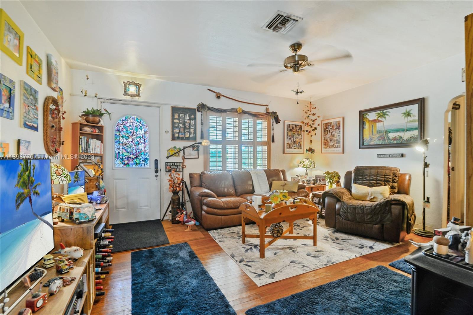 Step back in time to 1940's Victoria Park in this charming gated home on highly desirable Victoria Park Road. Enjoy the original beauty of this 2BR/1BA home with plenty of space to add on an additional bedroom and baths. Original wood floors in living room/bedrooms, Spanish tiles in kitchen and breakfast room with windows opening to outdoor dining area. Featuring a tranquil front porch perfect for outdoor relaxation, a spacious back yard with multiple lounging areas, storage shed and space for a pool. Hurricane windows and doors throughout, garage parking. Featured in Sun Sentinel Newspaper, award for most interesting use of color. Down the the road from Annie Beck Park walking trail, Victoria Park and Holiday Park. Minutes to Sunrise Blvd, Las Olas, and a 15 minute drive to airport.
