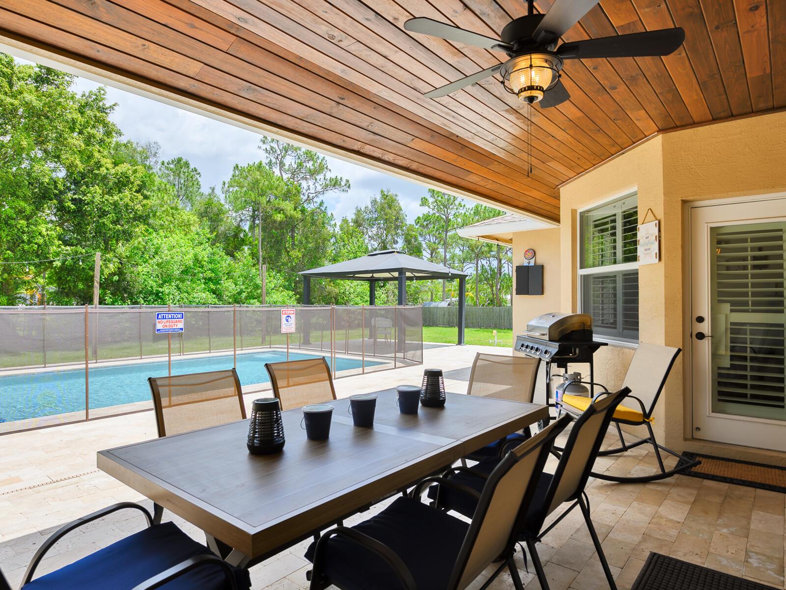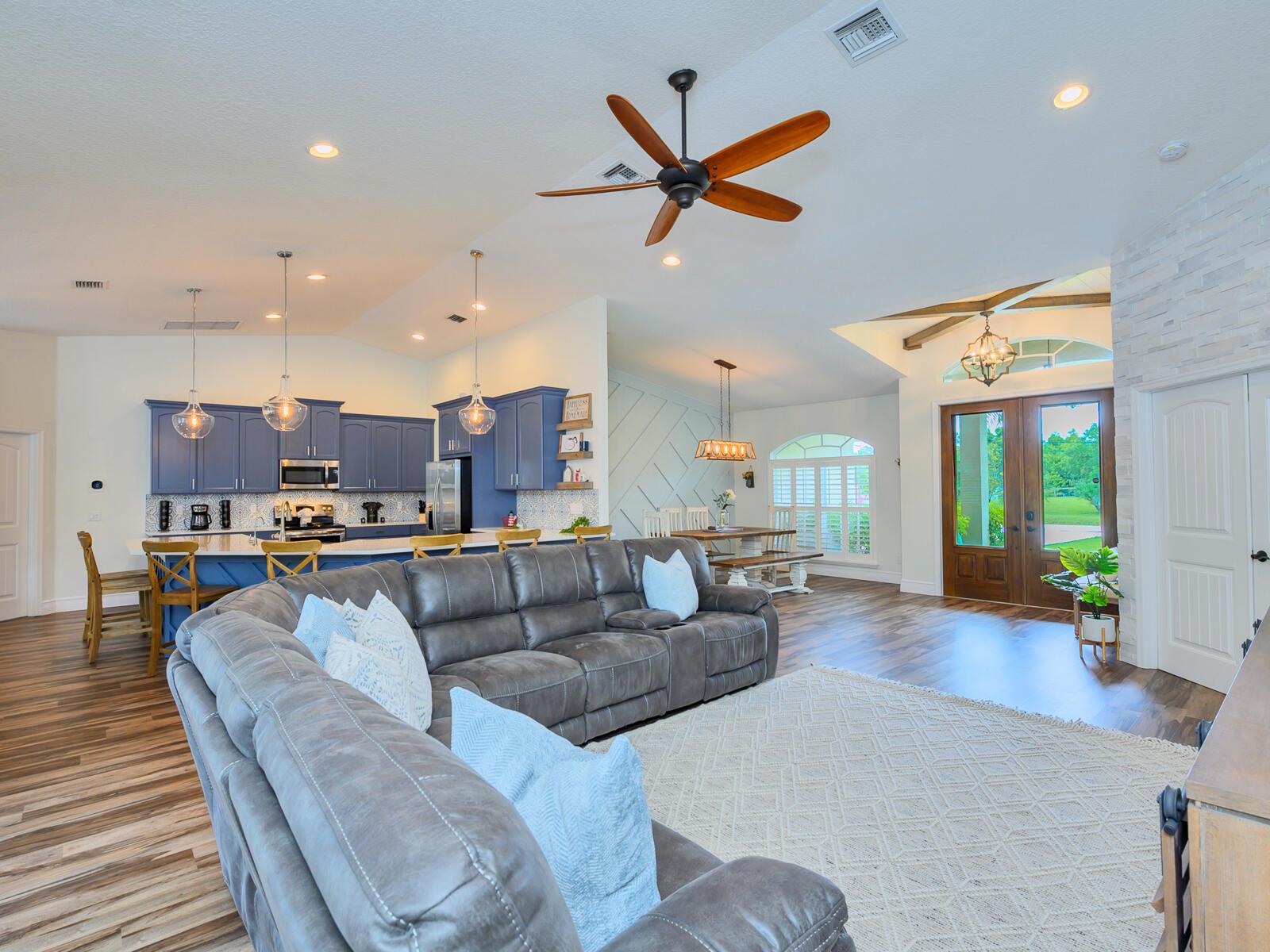 Experience peace and serenity in this truly special Home. Built in 2015, a solid CBS Construction. Security camera system, Impact Windows, Doors and Plantation Blinds throughout. Fully Custom Remodel - Indestructible, Waterproof Wood Vinyl floors, Decorative Wall Designs, Updated Kitchen with custom Quartz countertops, New Stainless-Steel appliances. Aaboasi 24' Wine Cooler. Master Bedroom boasts a Entertainment system with 60' Valuxhome Electric Fireplace. The Master Bathroom is a must see, Imported Onyx countertops, LED lighting, Hansgrohe Gold Fixtures simply breathtaking. Custom built Breakfast Nook adjacent to the kitchen. A Heated pool with a newer pool pump, paved patio, covered lanai & Cabana. Extended Circular driveway, Multiple Car, Boat.