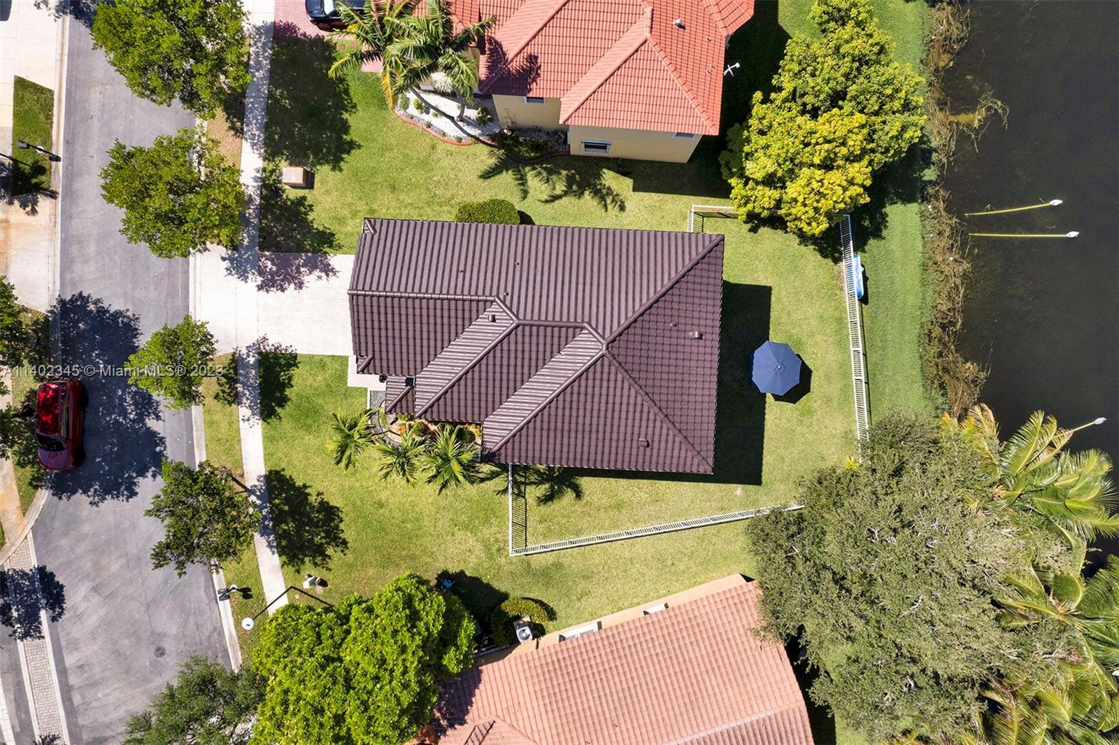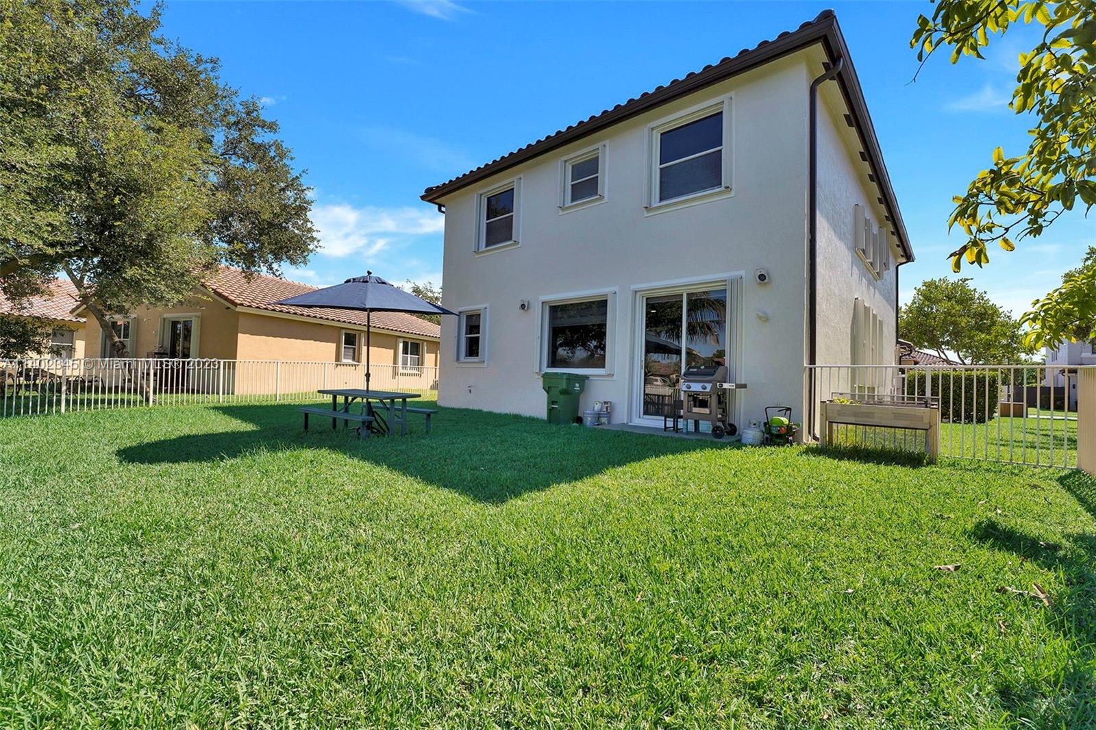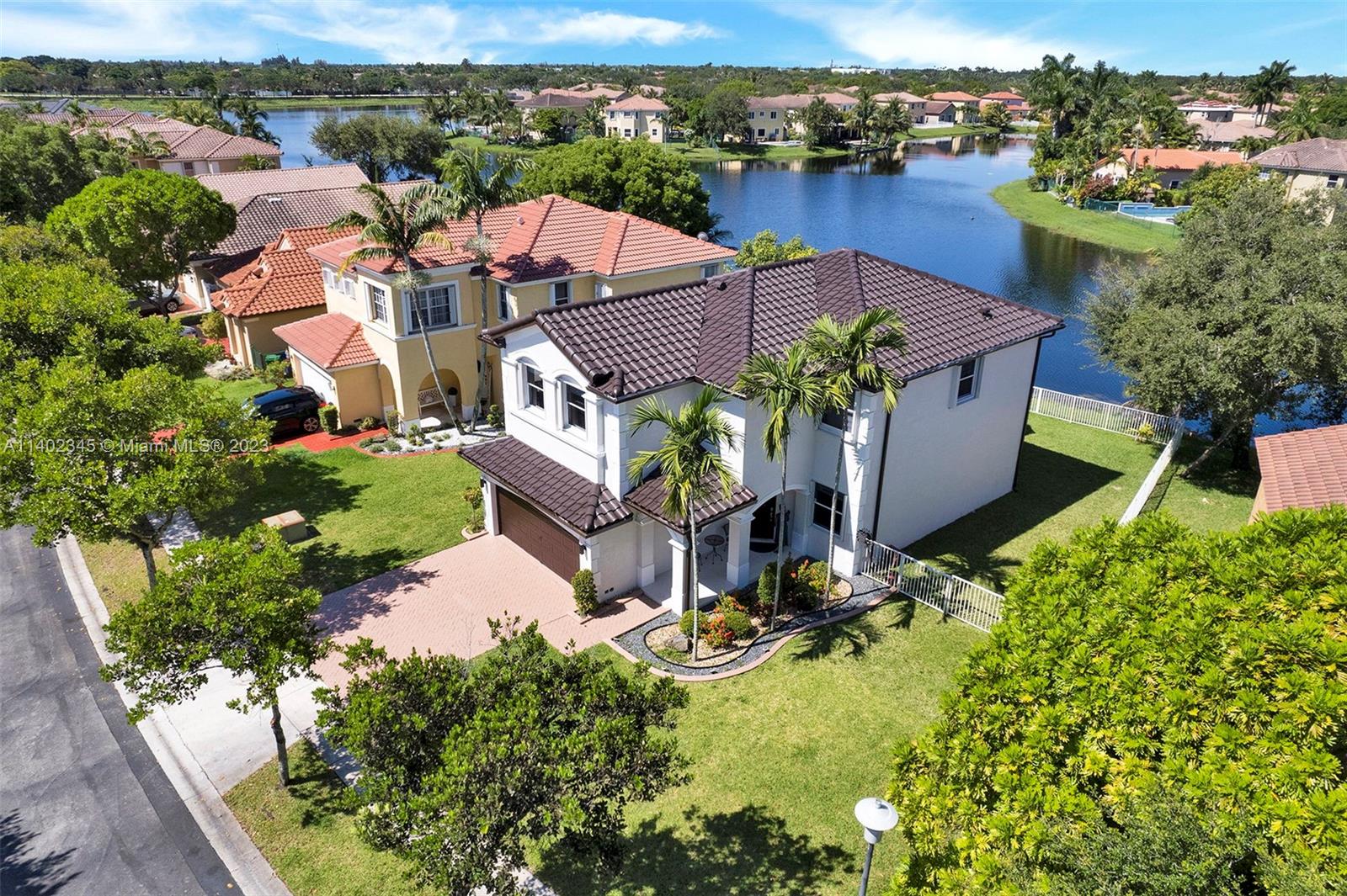 Welcome to the beautiful community of Vizcaya Subdivision Santorini Estates. This nicely upgraded 4 bedroom, 2.5 bath Lakeview home has a 2022 NEWER ROOF and 2 car garage! This remarkable home sits on an oversized lot with more than enough space for a pool. The primary suite has huge walk in closet and primary bath has a roman tub. Wood tile flooring, recessed lighting, quartz kitchen countertop are just a few highlights of the single family home. Great surrounding schools, grocery stores nearby for convenience. Great curb appeal through the community, also has resort style community pool and additional amenities. Newly painted, accordion shutters, bonus room, wood tile flooring, laminate flooring, new chandeliers, recessed lighting, automated zebra blinds, and exterior white metal gate.