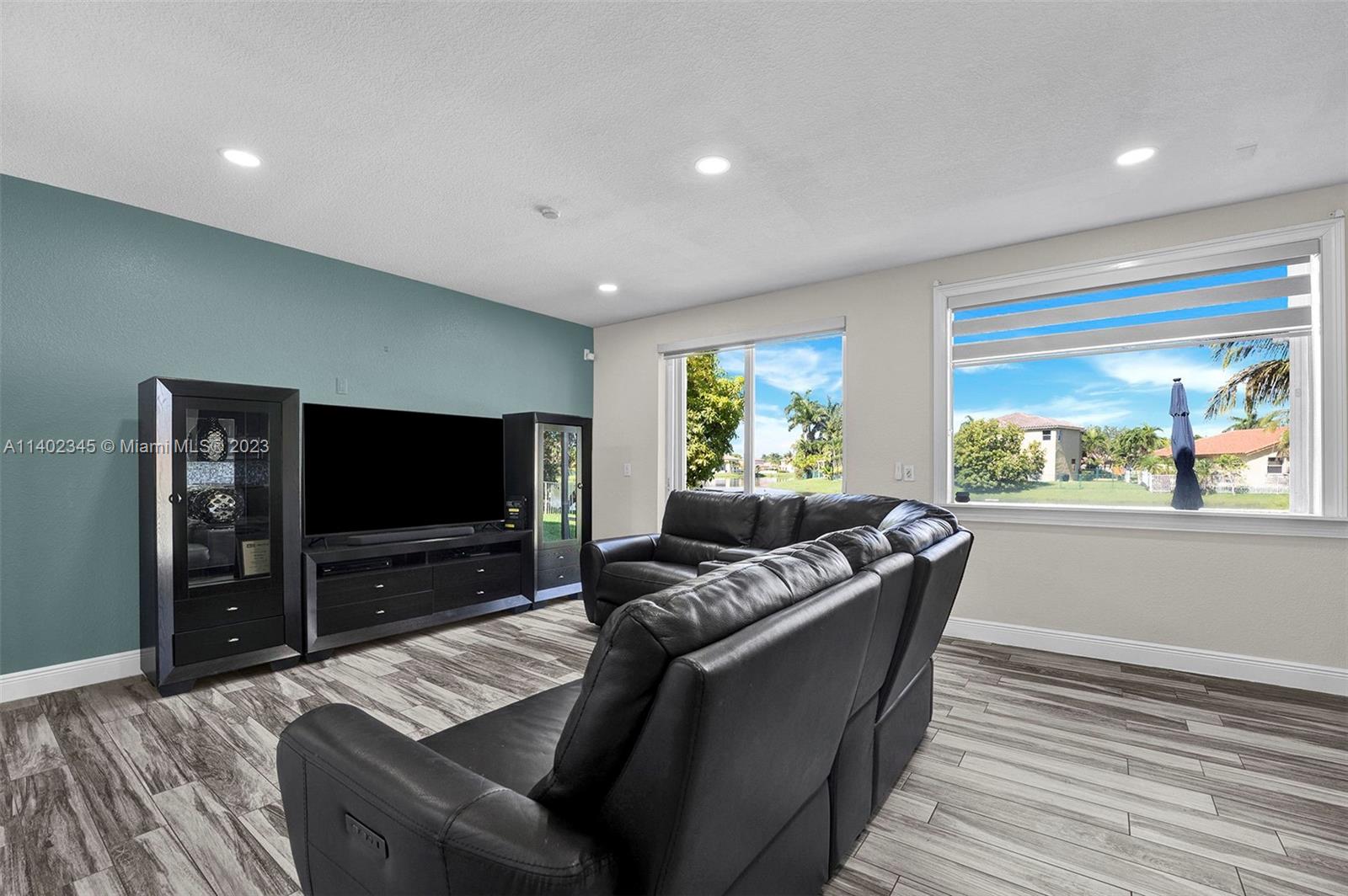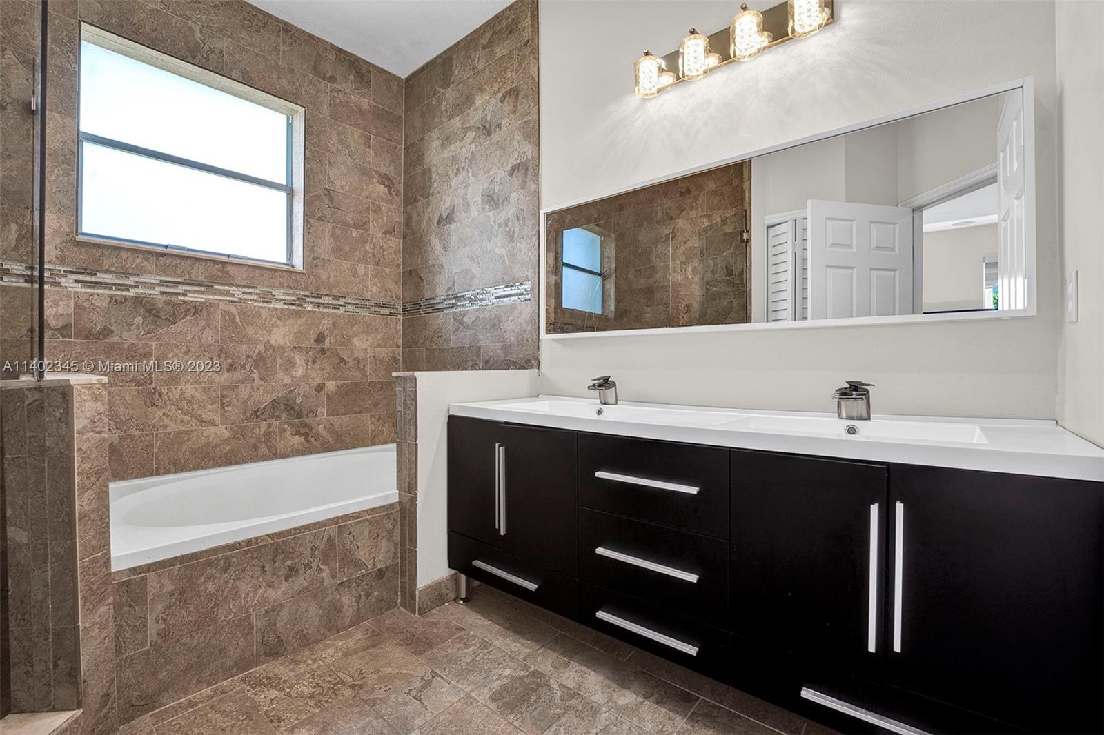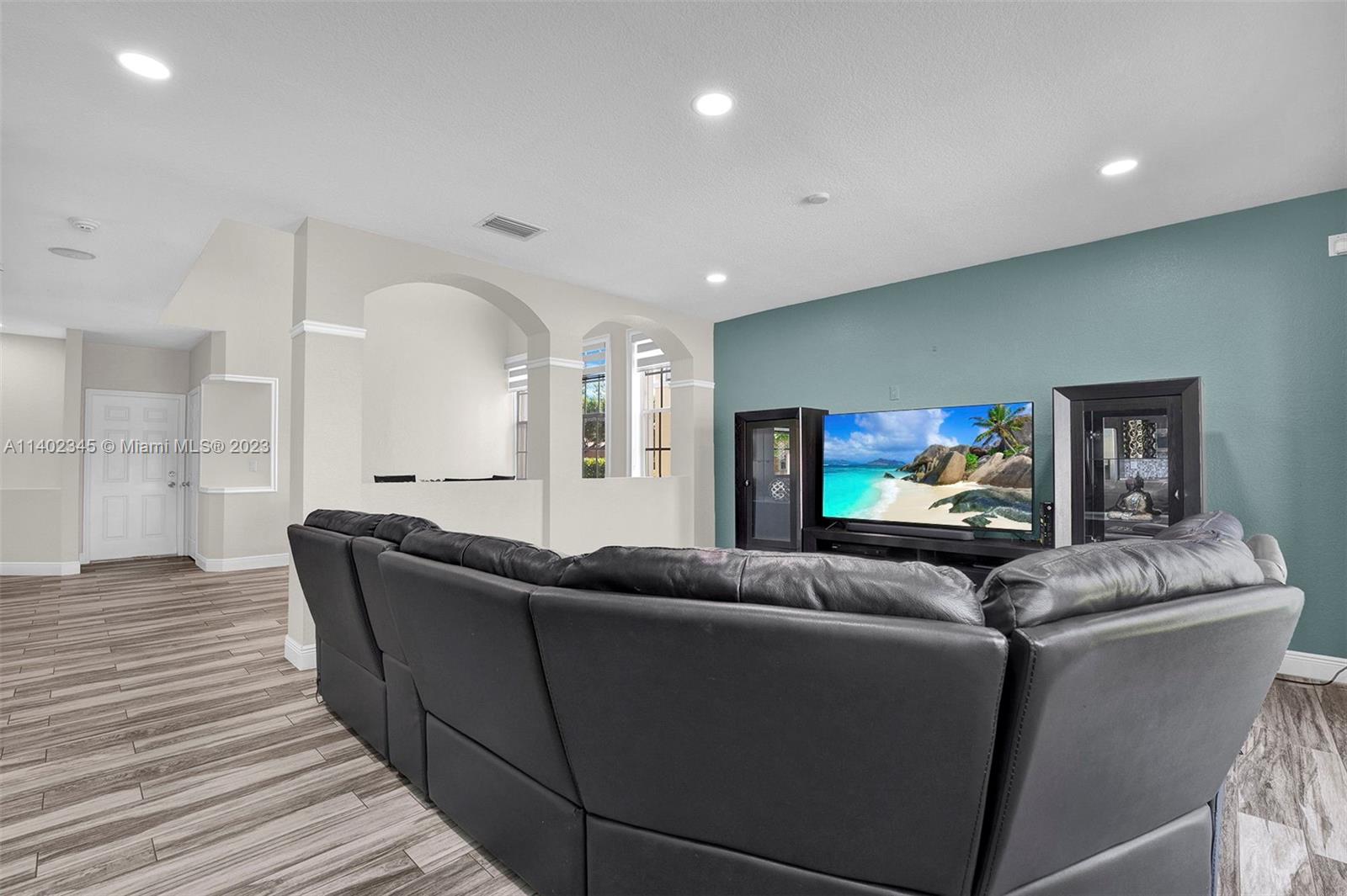 Welcome to the beautiful community of Vizcaya Subdivision Santorini Estates. This nicely upgraded 4 bedroom, 2.5 bath Lakeview home has a 2022 NEWER ROOF and 2 car garage! This remarkable home sits on an oversized lot with more than enough space for a pool. The primary suite has huge walk in closet and primary bath has a roman tub. Wood tile flooring, recessed lighting, quartz kitchen countertop are just a few highlights of the single family home. Great surrounding schools, grocery stores nearby for convenience. Great curb appeal through the community, also has resort style community pool and additional amenities. Newly painted, accordion shutters, bonus room, wood tile flooring, laminate flooring, new chandeliers, recessed lighting, automated zebra blinds, and exterior white metal gate.
