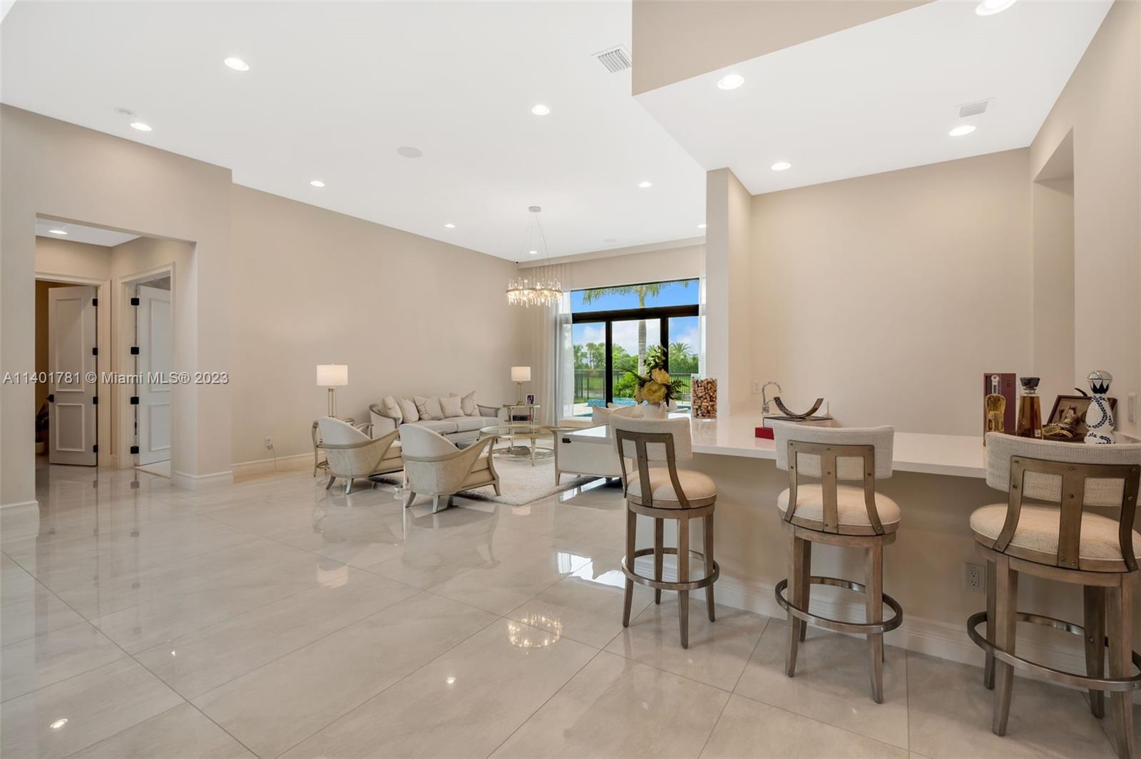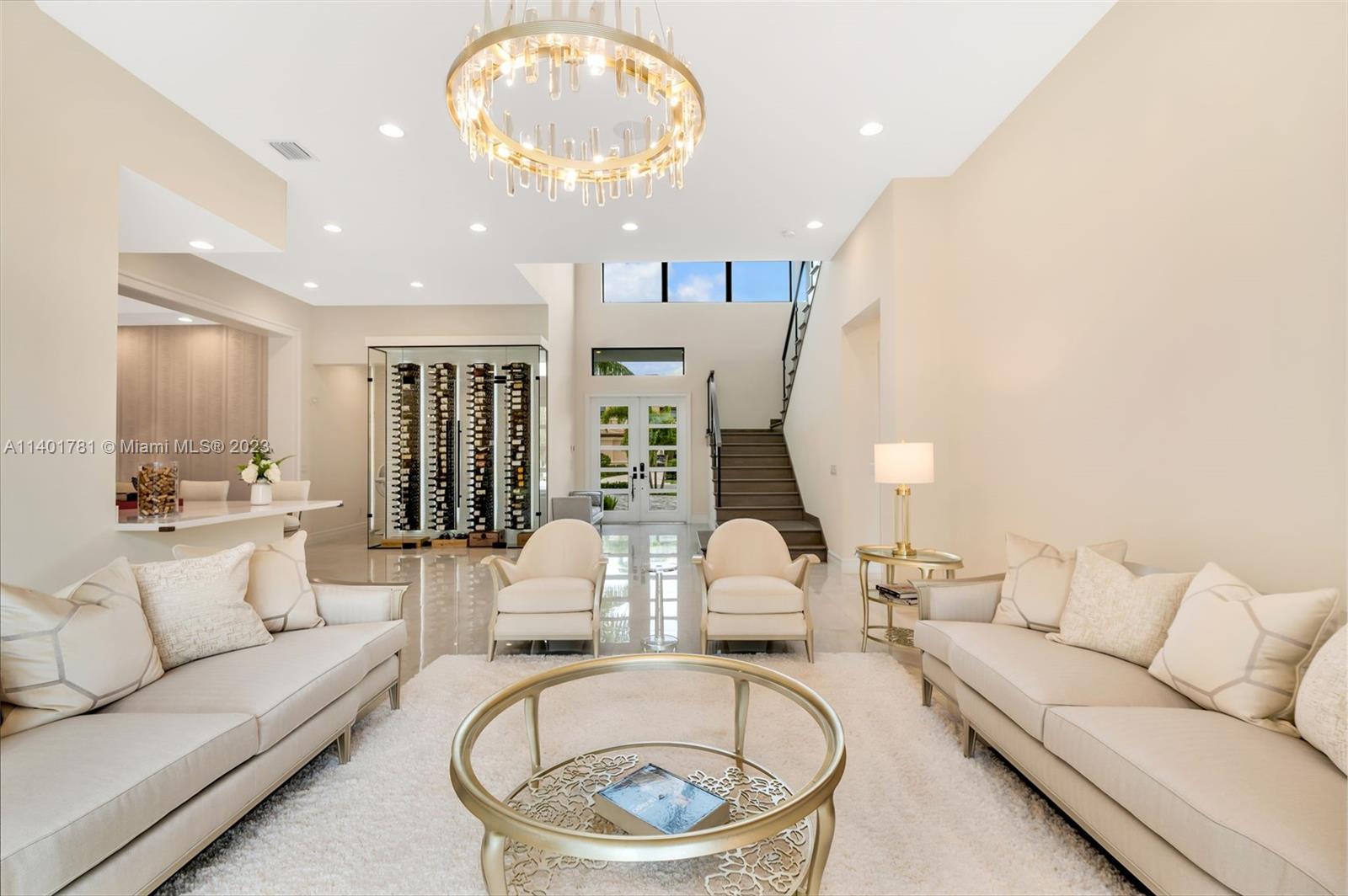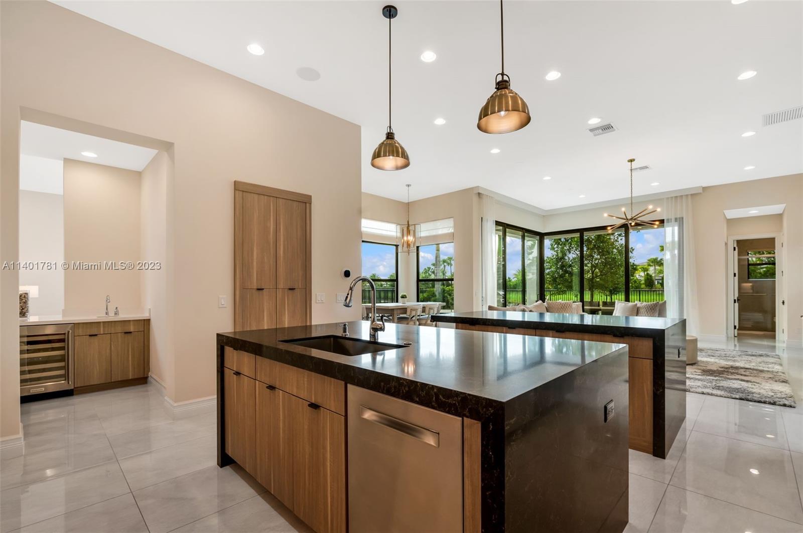 Perfect home in Boca Raton, absolutely charming 6 BR floor plan of the coastal collection and located in the prestigious Boca Bridges community. No expense was spared in finishes and upgrades throughout this home. As you enter, you'll find a double height foyer and a custom 288 glass wine bottle case; formal living and family room with walls of sliding glass doors that opens to the spacious outdoor area, pool & summer kitchen. A formal dining room and wet bar is the perfect combination for family and friends gatherings. The chef's kitchen features Subzero/Wolfe appliances, quarts counter tops and upgraded pantry closet. One bedroom downstairs, office/den and laundry area. Upstairs a media room, loft, 2nd laundry and principal suite with a large covered terrace for a peaceful retreat.