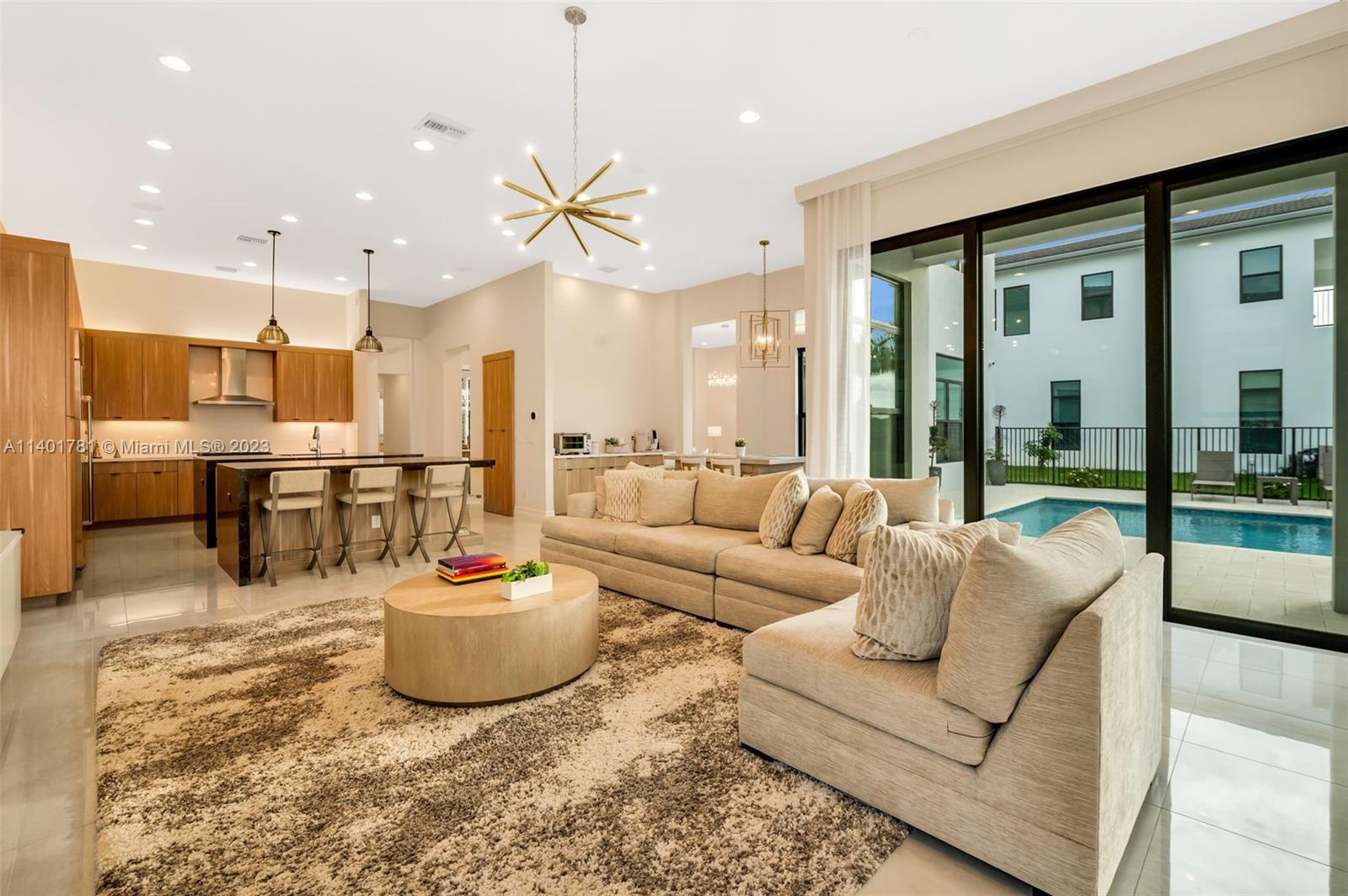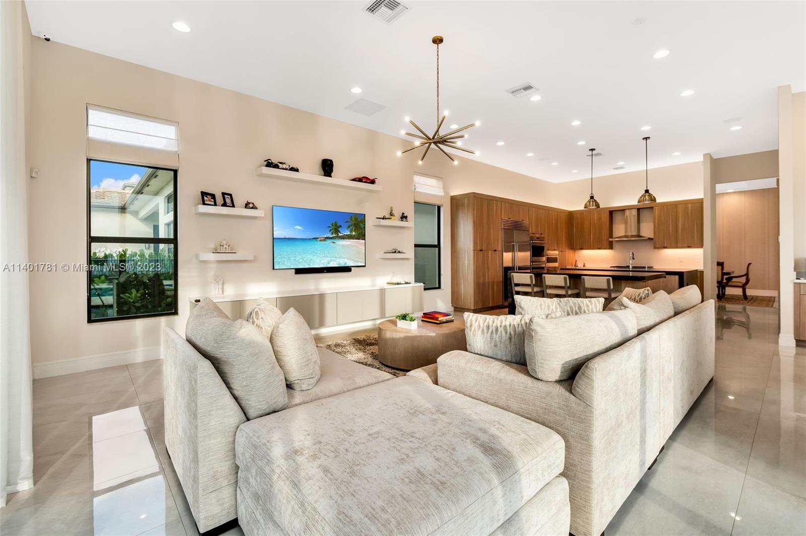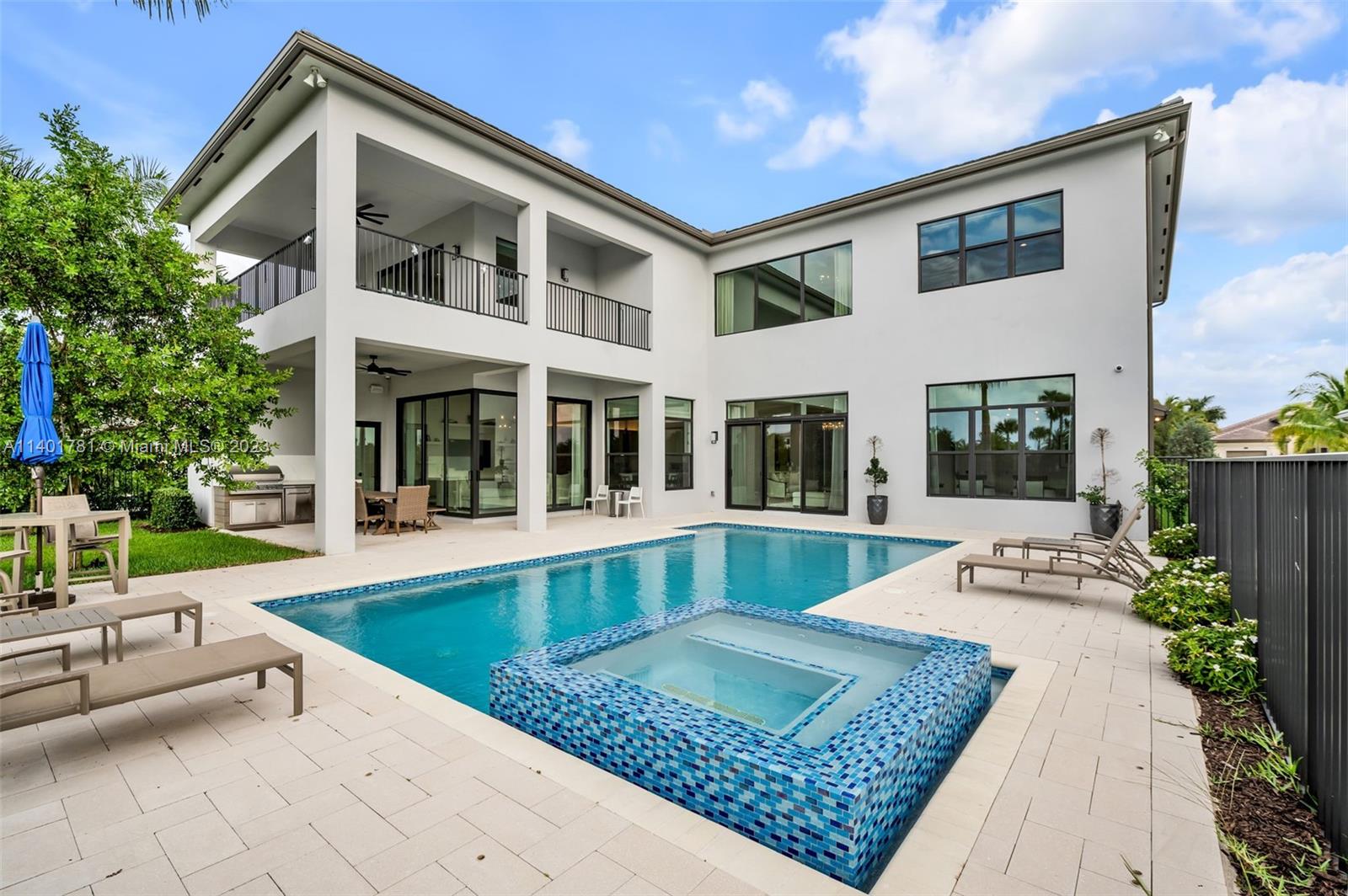 Perfect home in Boca Raton, absolutely charming 6 BR floor plan of the coastal collection and located in the prestigious Boca Bridges community. No expense was spared in finishes and upgrades throughout this home. As you enter, you'll find a double height foyer and a custom 288 glass wine bottle case; formal living and family room with walls of sliding glass doors that opens to the spacious outdoor area, pool & summer kitchen. A formal dining room and wet bar is the perfect combination for family and friends gatherings. The chef's kitchen features Subzero/Wolfe appliances, quarts counter tops and upgraded pantry closet. One bedroom downstairs, office/den and laundry area. Upstairs a media room, loft, 2nd laundry and principal suite with a large covered terrace for a peaceful retreat.
