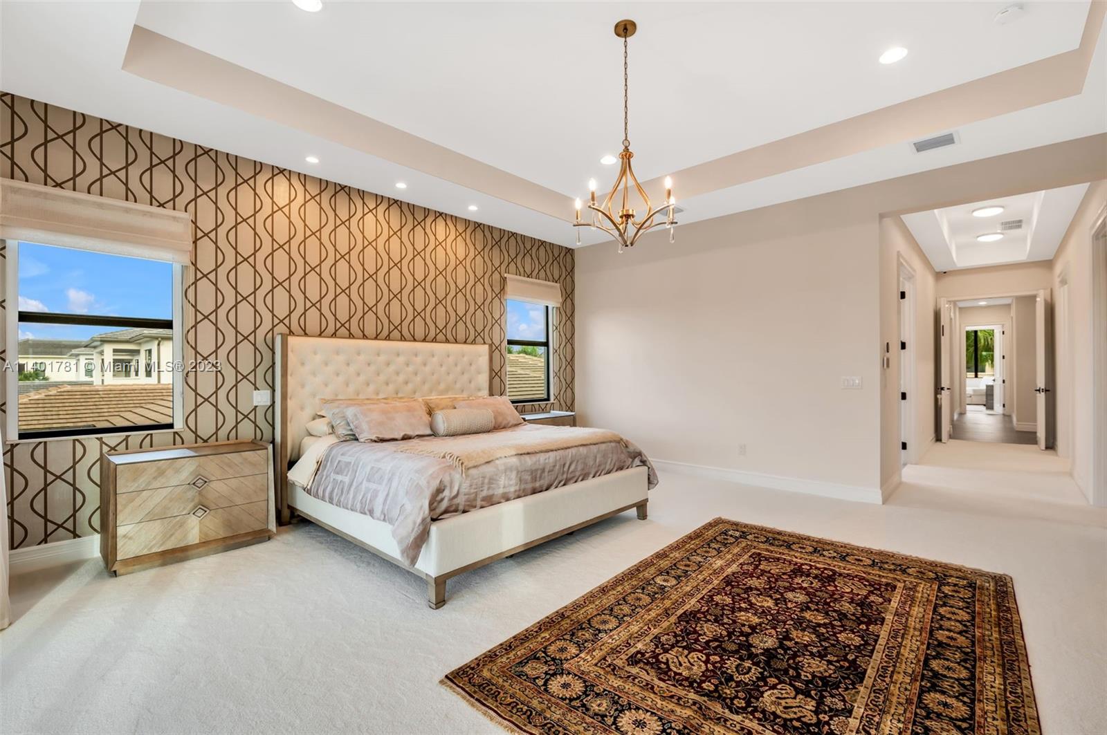 • Interior Feature:WetBar, BuiltinFeatures, BedroomonMainLevel, ClosetCabinetry, DiningArea, SeparateFormalDiningRoom, DualSinks, EntranceFoyer, FirstFloorEntry, HighCeilings, JettedTub, KitchenIsland, SittingAreainPrimary, SeparateShower, UpperLevelPrimary, Bar, WalkInClosets