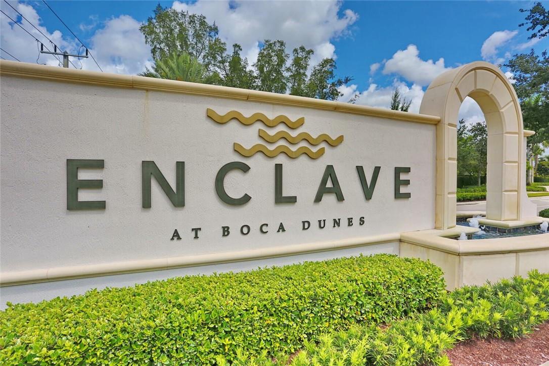 Amazing chance to own a luxury townhome in the desirable gated community of Enclave at Boca Dunes surrounded by executive golf course. No membership required with a low HOA. 2018 CBS construction complete with impact windows and doors. This lake-view beauty features 42’ kitchen cabinets, quartz countertops, stainless steel appliances, and large island with seating. Walking distance to resort-style amenities including clubhouse, pool, spa, fitness center, walking paths and children’s play area. Easy access to 441 and Turnpike.