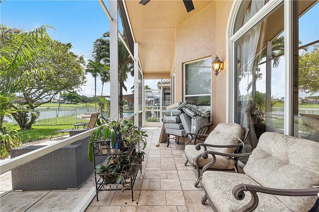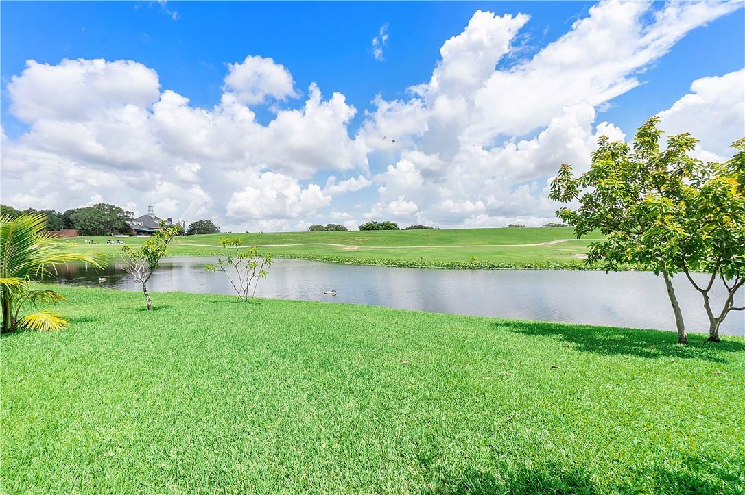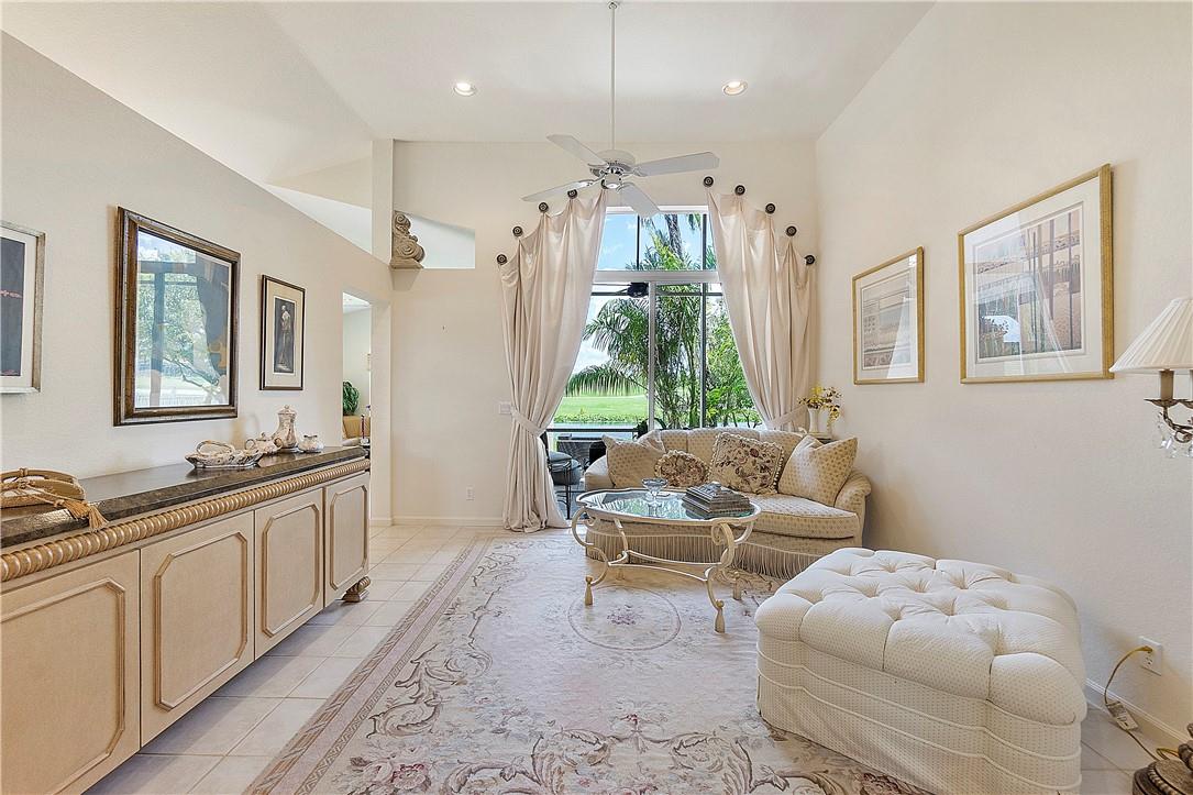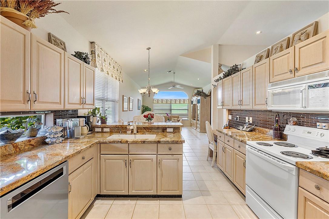 Welcome home in this 3 brs and 2 bath retreat on the lake and golf course. 2019 Roof. Impact Glass Front Door. As you step inside, you'll be greeted by beautiful tile floors throughout the main areas, while the bedrooms boast stylish laminate flooring. The house features a formal dining room and formal living room, perfect for hosting guests and creating lasting memories. A cozy family room provides a relaxing space for everyday activities. Prepare meals with joy in the spacious kitchen, equipped with granite countertops, ample cabinets, and a convenient pantry with pull-outs. The large primary suite is a true retreat, featuring two walk-in closets to accommodate your wardrobe. In the primary bathroom, indulge in luxury with a separate tub and shower, as well as two vanities.
