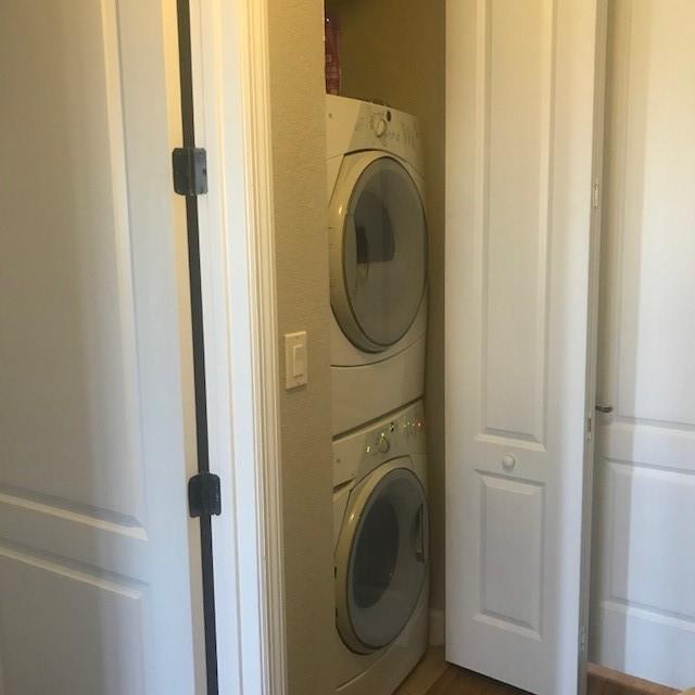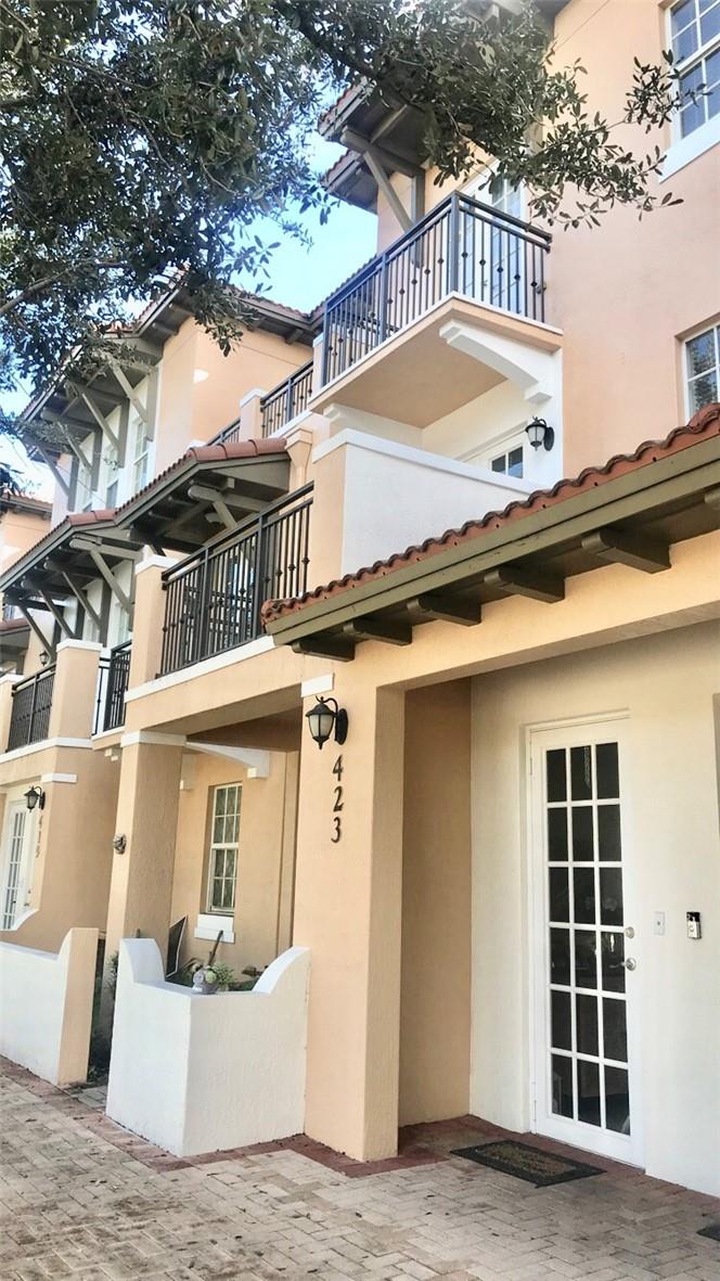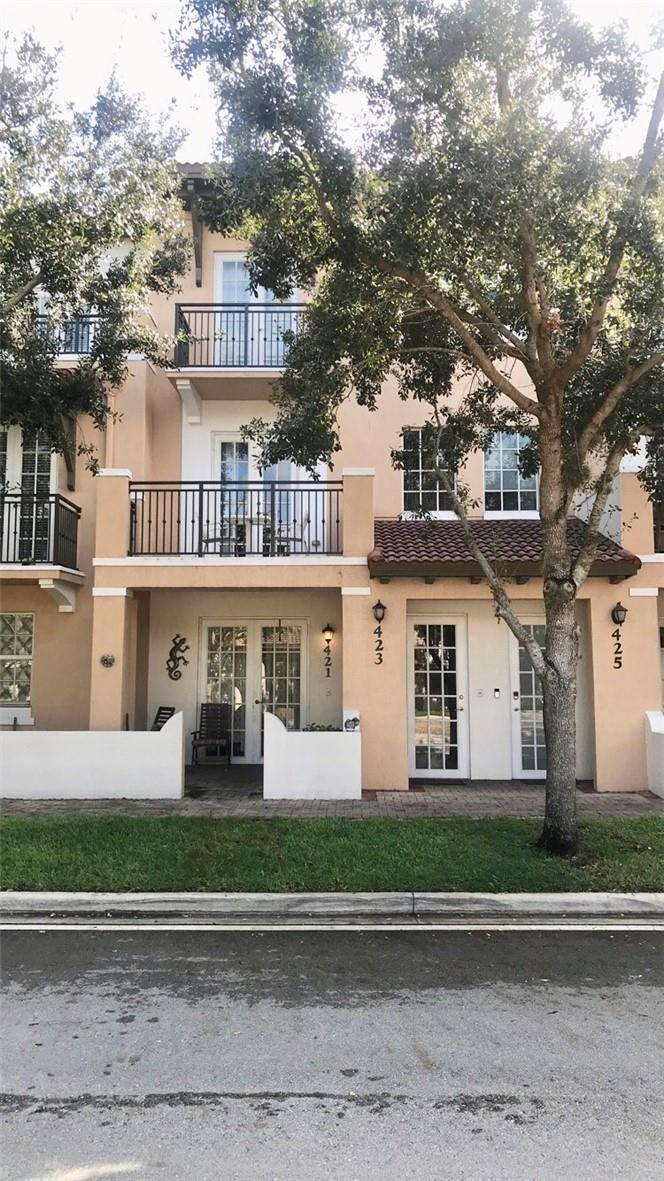 This is the most spacious two bedroom unit at cobblestone. Two primary bedrooms each with its own bathroom and walk-in closet. Laundry is at the top level for convenience and guest bath on the main level with large family room, and separate dining area. The unit has three large balconies and a dedicated parking spot right behind the unit. Tall ceilings and lots of natural light make the space even more inviting. Perfect for a starter home or your first investment. Recently painted and new laminate floors installed. No carpet in home and community is pet friendly. Washer and dryer are less that 2 years old. Community amenities are pool, child play room, fitness center, and recreation room that can be rented. Unit has impact glass for storm protection so no shutters needed for rainy season